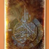 Gyllene Relief-effekt (3D): Den centrala kalligrafin och de omgivande mönstren är skapade med en avancerad relief-teknik. Den upphöjda strukturen ger ett fantastiskt djup och en levande känsla som förstärks när ljuset reflekteras i de metalliska ytorna.