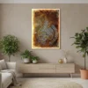 Integrerad LED-aura: Bakom ramen sitter en dold LED-belysning som skapar en mjuk, glödande aura längs tavlans kanter. Denna effekt ger konstverket en svävande känsla mot väggen och fungerar som en stämningsfull ljuskälla under kvällstid.