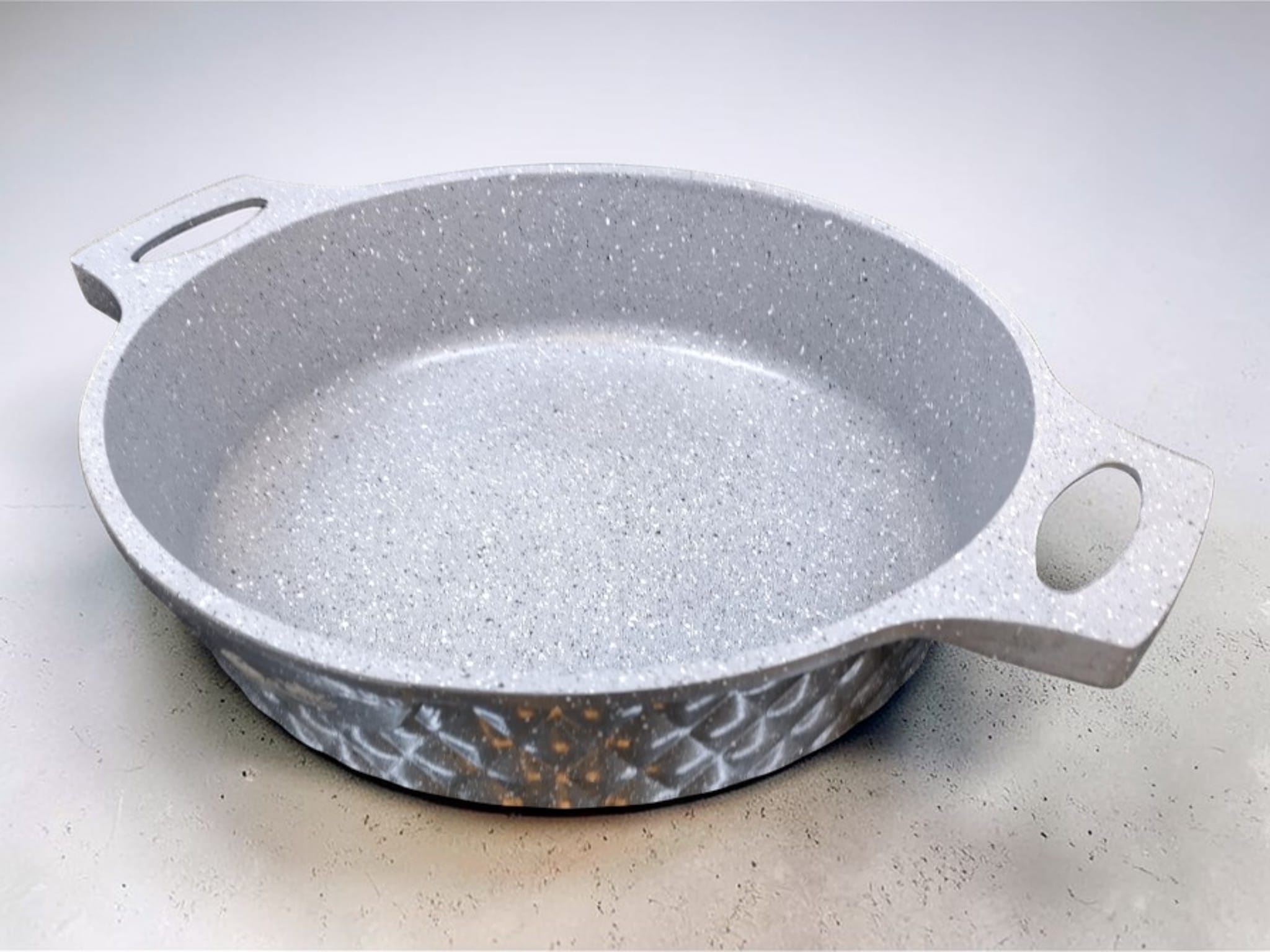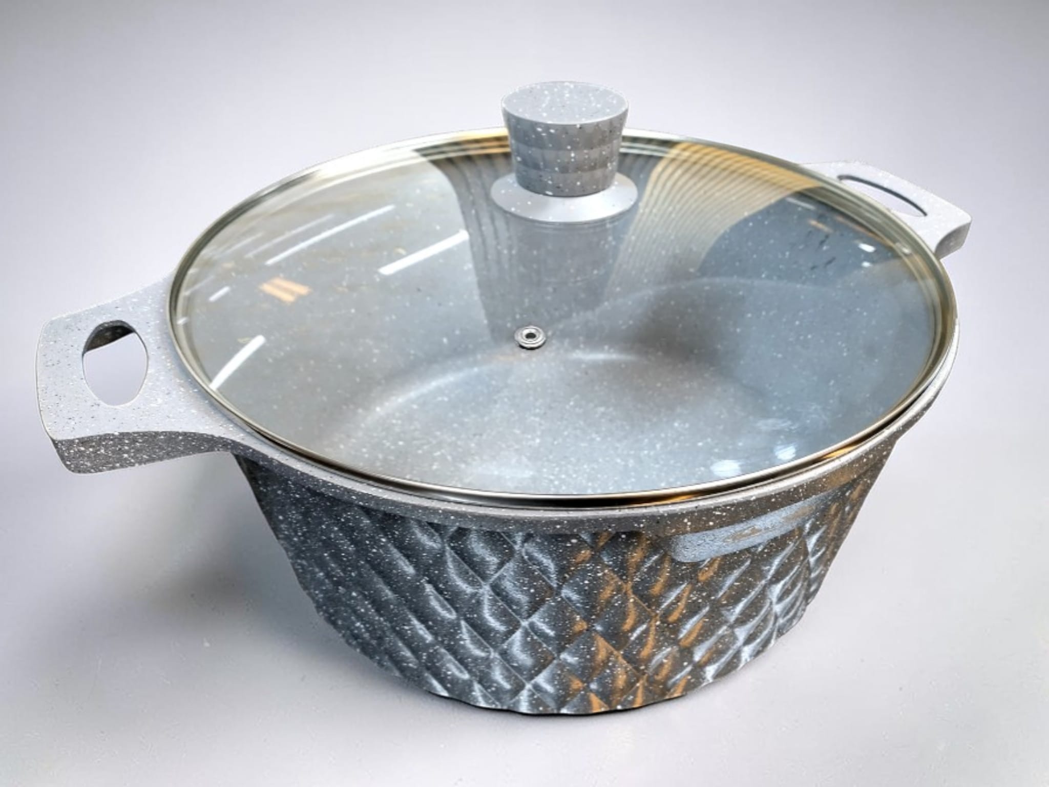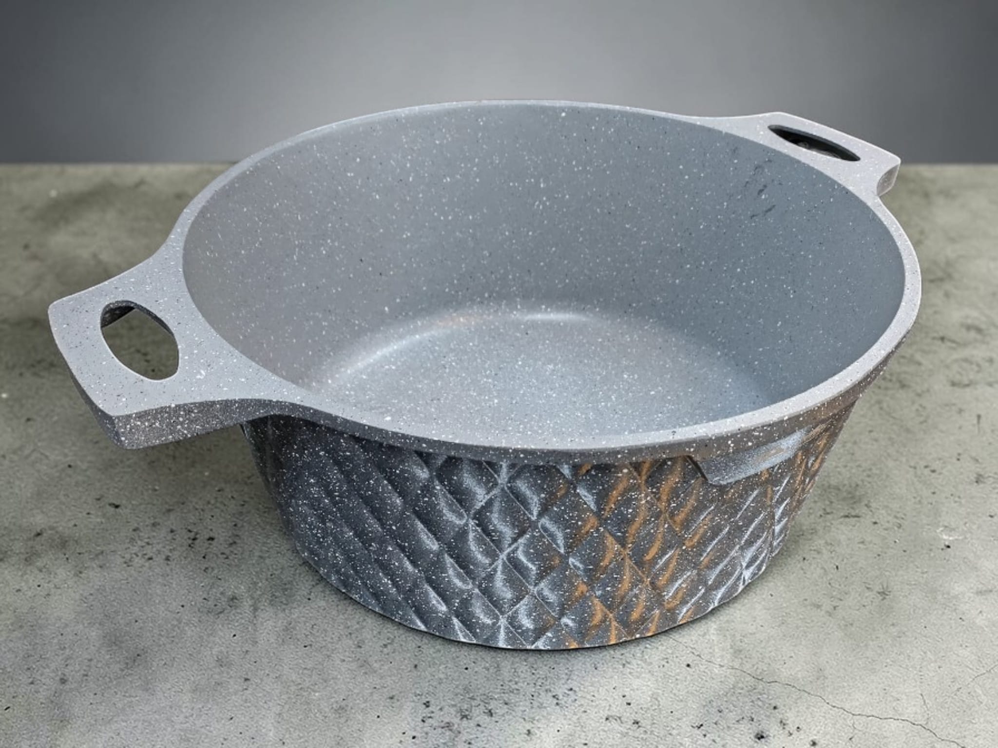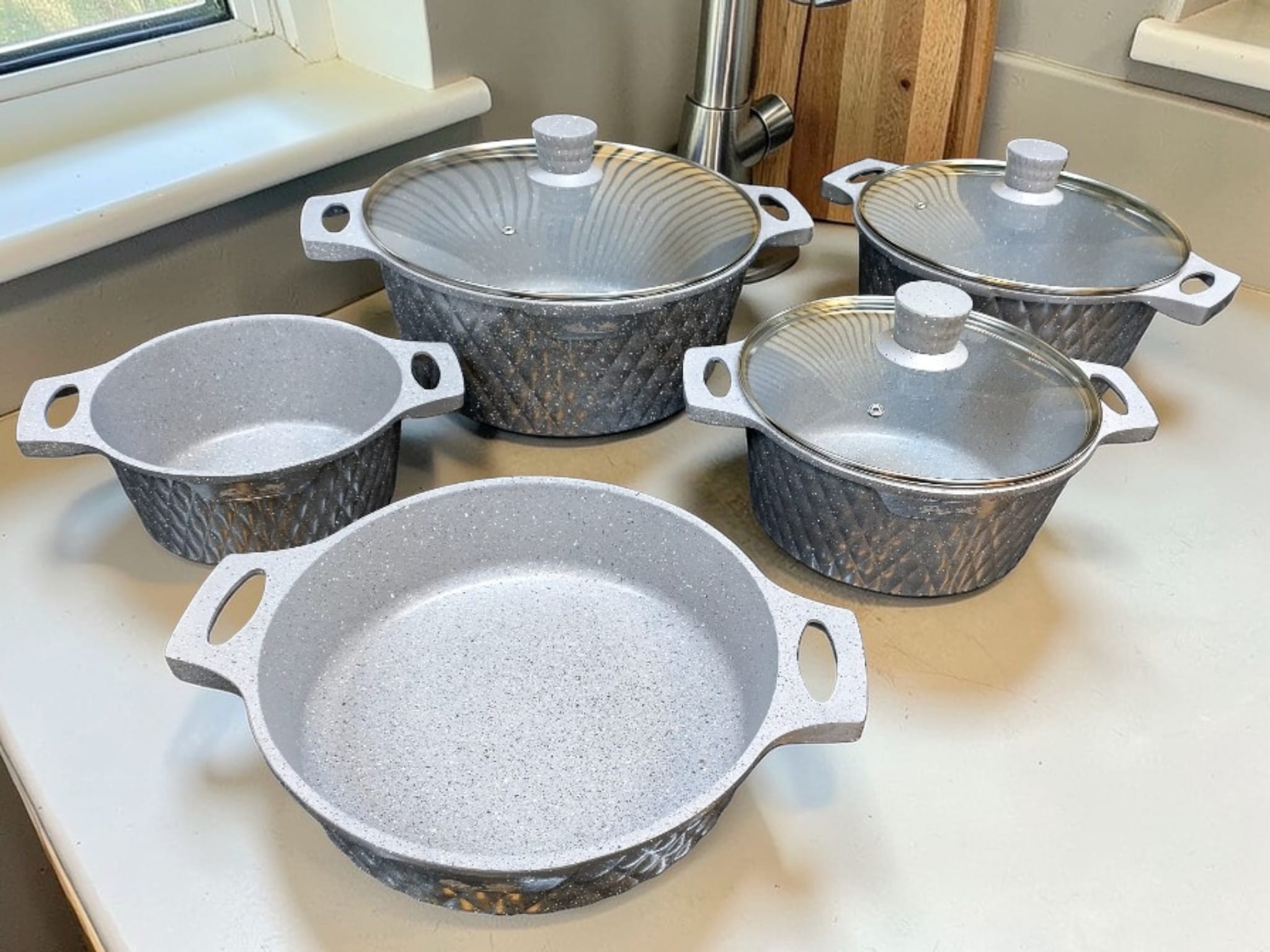 Ett komplett och visuellt imponerande grytset i 10 delar med enastående PFAS-fri granitbeläggning. Setet är tillverkat i kraftig pressgjuten aluminium med en elegant grå diamantfinish och är fullt kompatibelt med alla spistyper, inklusive induktion.