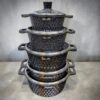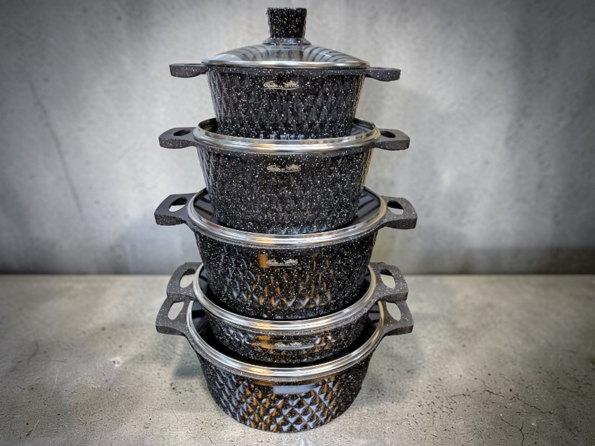 Ge ditt kök en känsla av modern elegans och styrka med Al Sultan i utförandet Svart/Diamant. Detta set är den ultimata kombinationen av form och funktion, där den djupa svarta färgen framhäver den unika diamantmönstrade utsidan. Det är ett set byggt för att prestera på högsta nivå, oavsett om du steker på hög värme eller låter en mustig gryta sjuda i timmar.