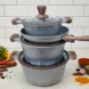 Hälsosam granitbeläggning (PFAS-fri): Den avancerade non-stick-ytan är förstärkt med naturliga mineraler för extra hållbarhet. Den är helt fri från PFOA och PFAS, vilket möjliggör fettsnål matlagning utan att maten fastnar.