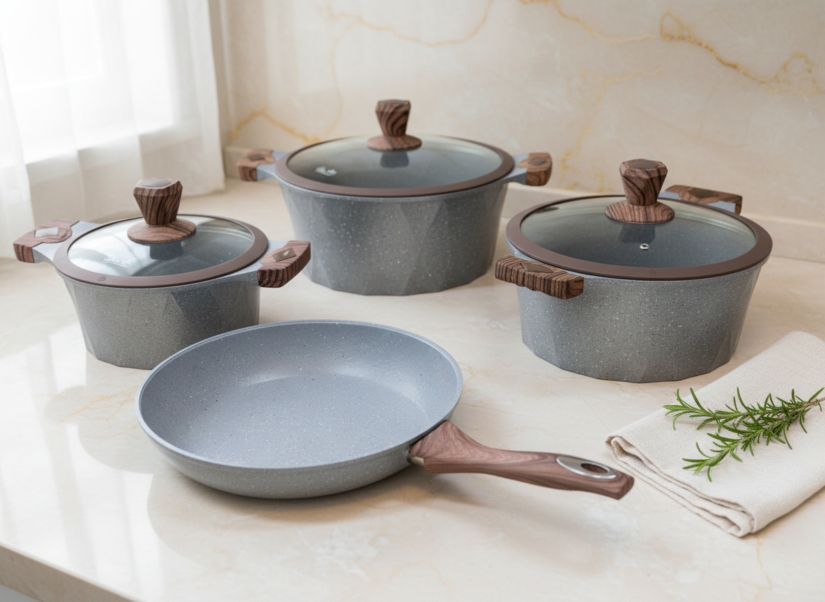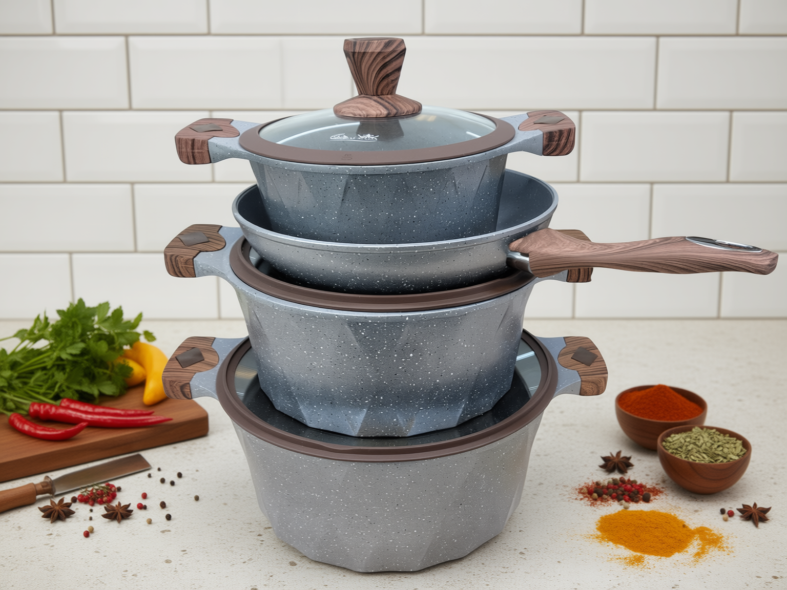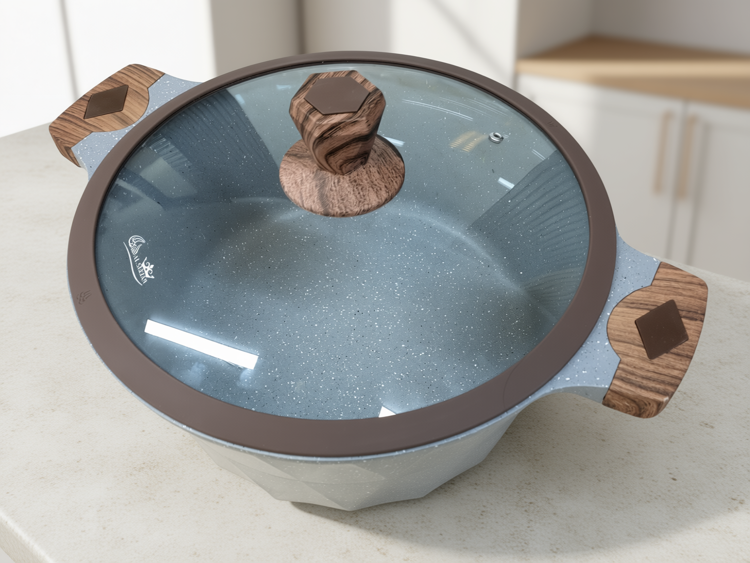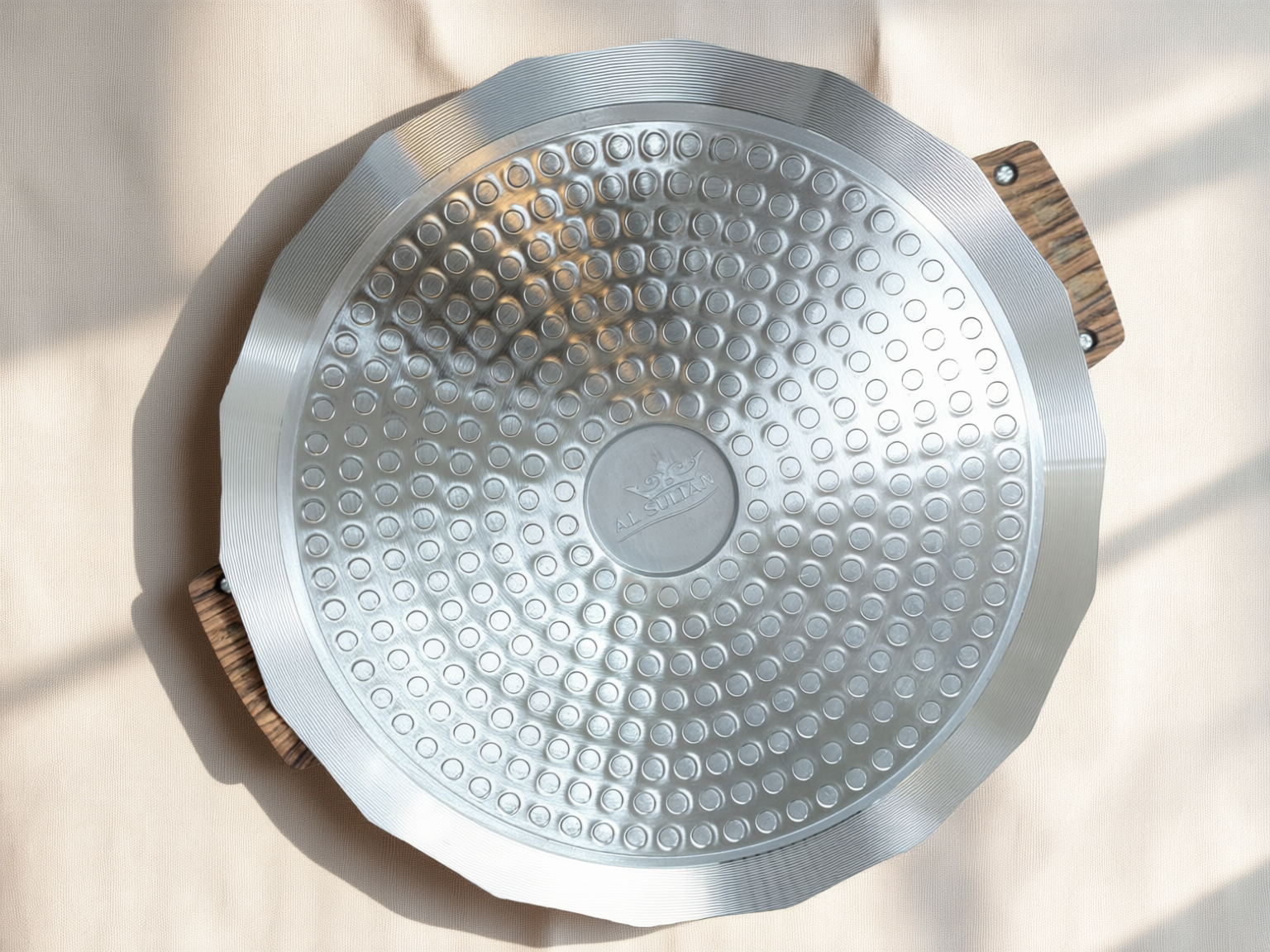 Ge ditt kök en modern och naturnära touch med Al Sultan i utförandet Silver/Trä. Detta set förenar en rå, diamantslipad exteriör med eleganta detaljer i träimitation, vilket skapar en perfekt balans mellan industriell design och hemtrevlig värme. Det är det ultimata valet för dig som vill ha högpresterande kokkärl som ser lika bra ut på spisen som vid serveringen på bordet.