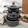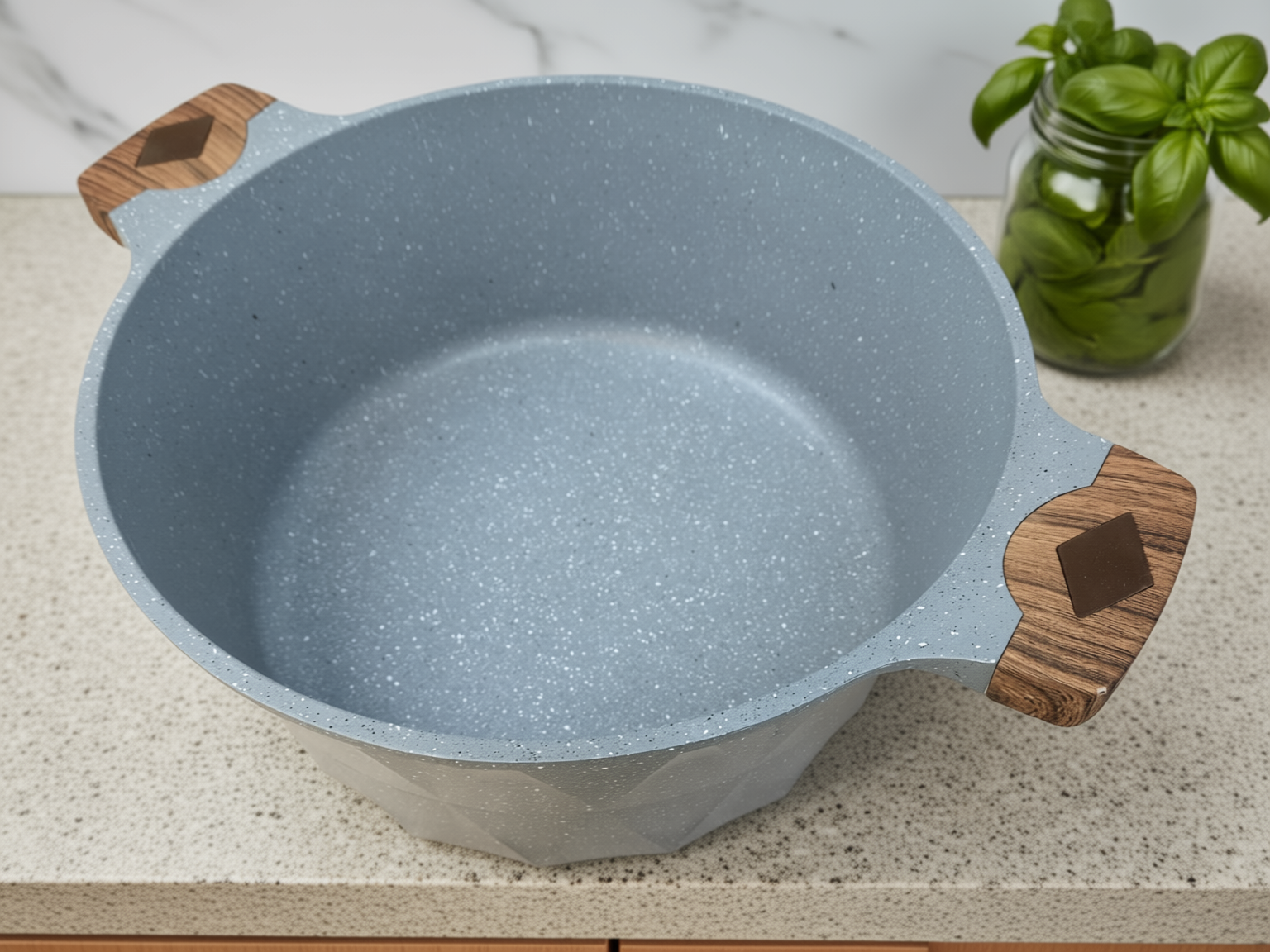 Hälsosam granitbeläggning (PFAS-fri): Den avancerade non-stick-ytan är förstärkt med naturliga mineraler för extra hållbarhet. Den är helt fri från PFOA och PFAS, vilket möjliggör fettsnål matlagning utan att maten fastnar.