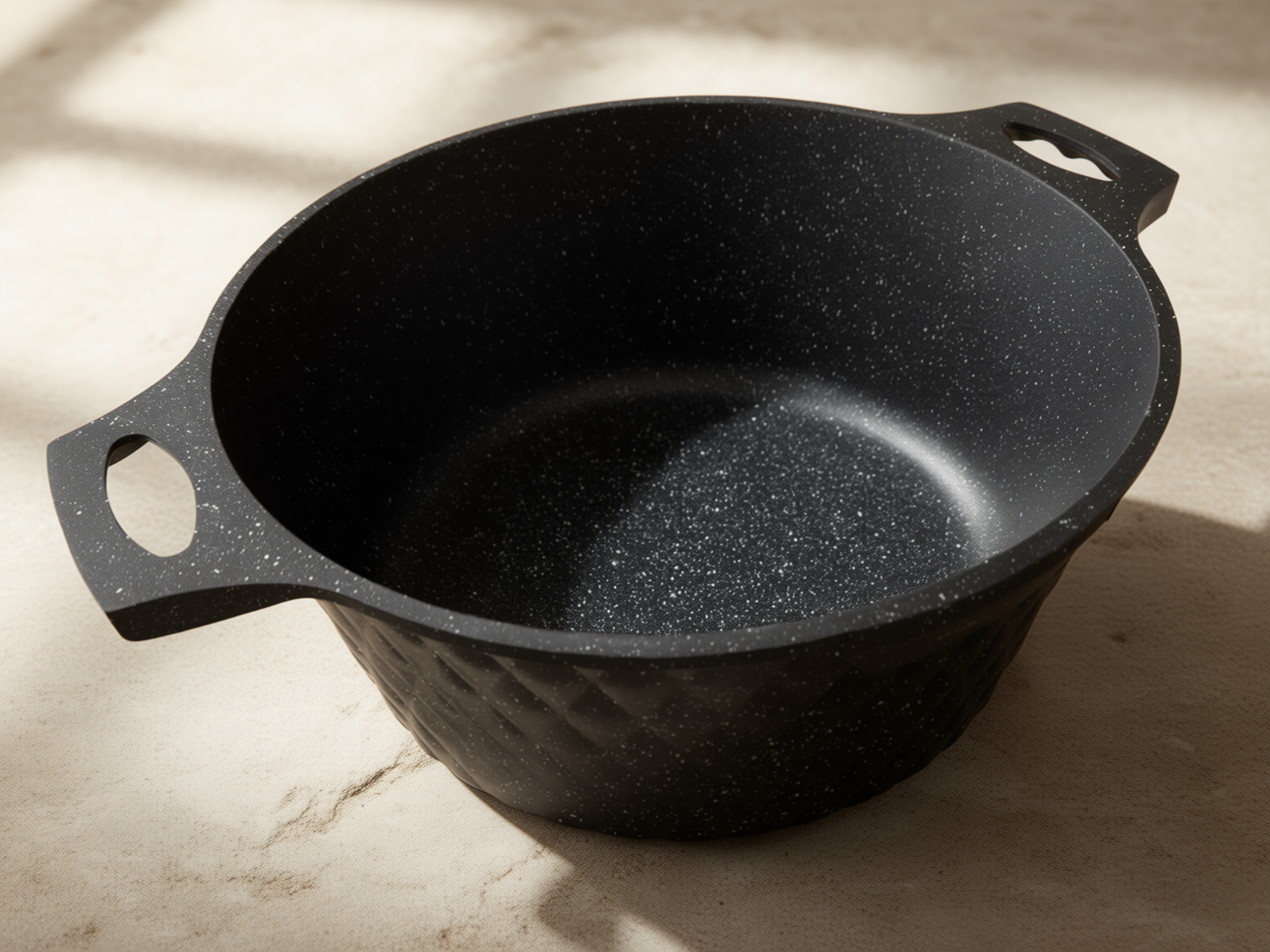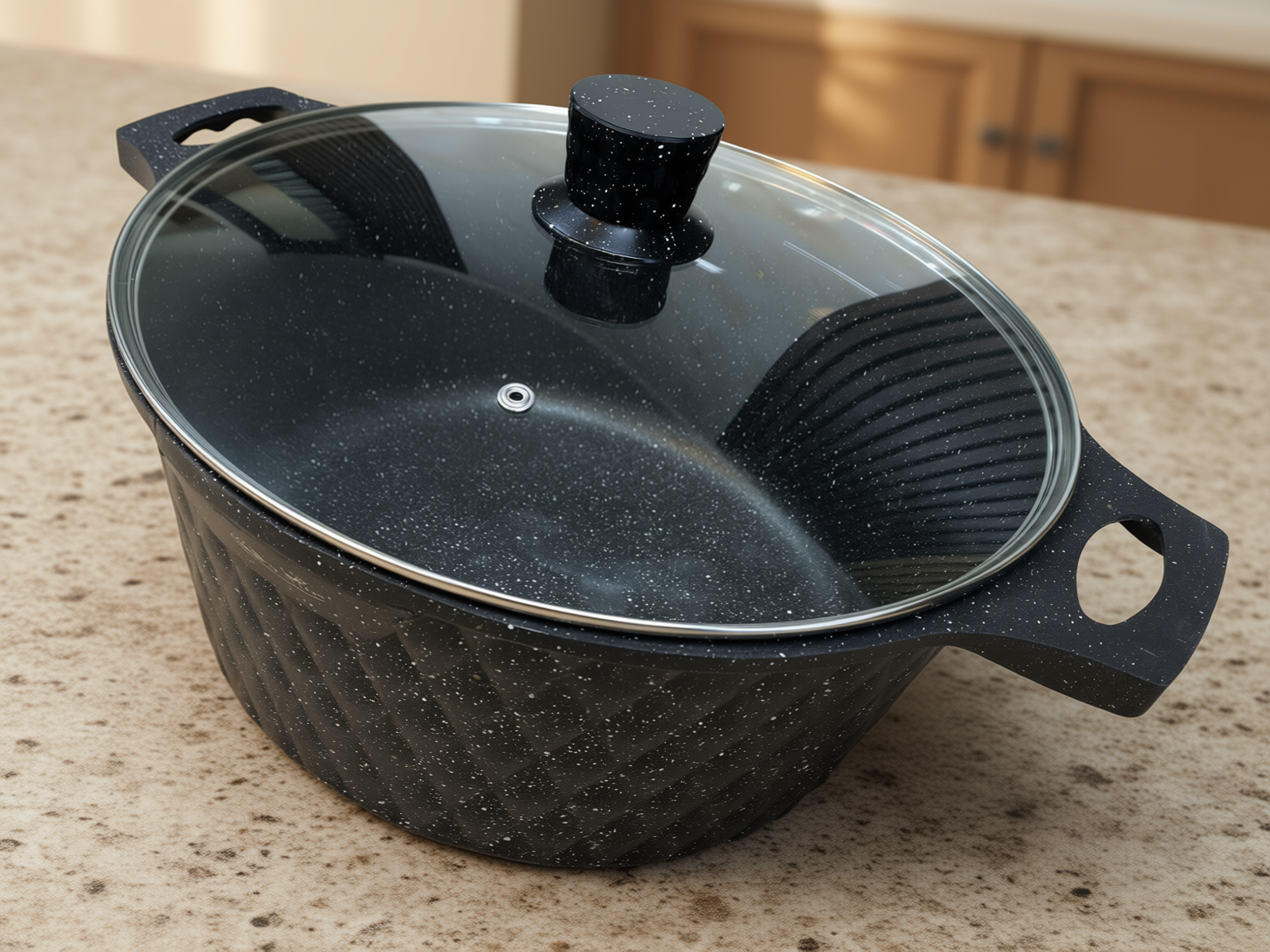 Snygg monokrom Diamond Cut-design: Grytornas yttre fasettslipning möter en matchande svart interiör och handtag. Denna enhetliga färgskala ger ett modernt och exklusivt uttryck som passar perfekt i skandinaviska hem.