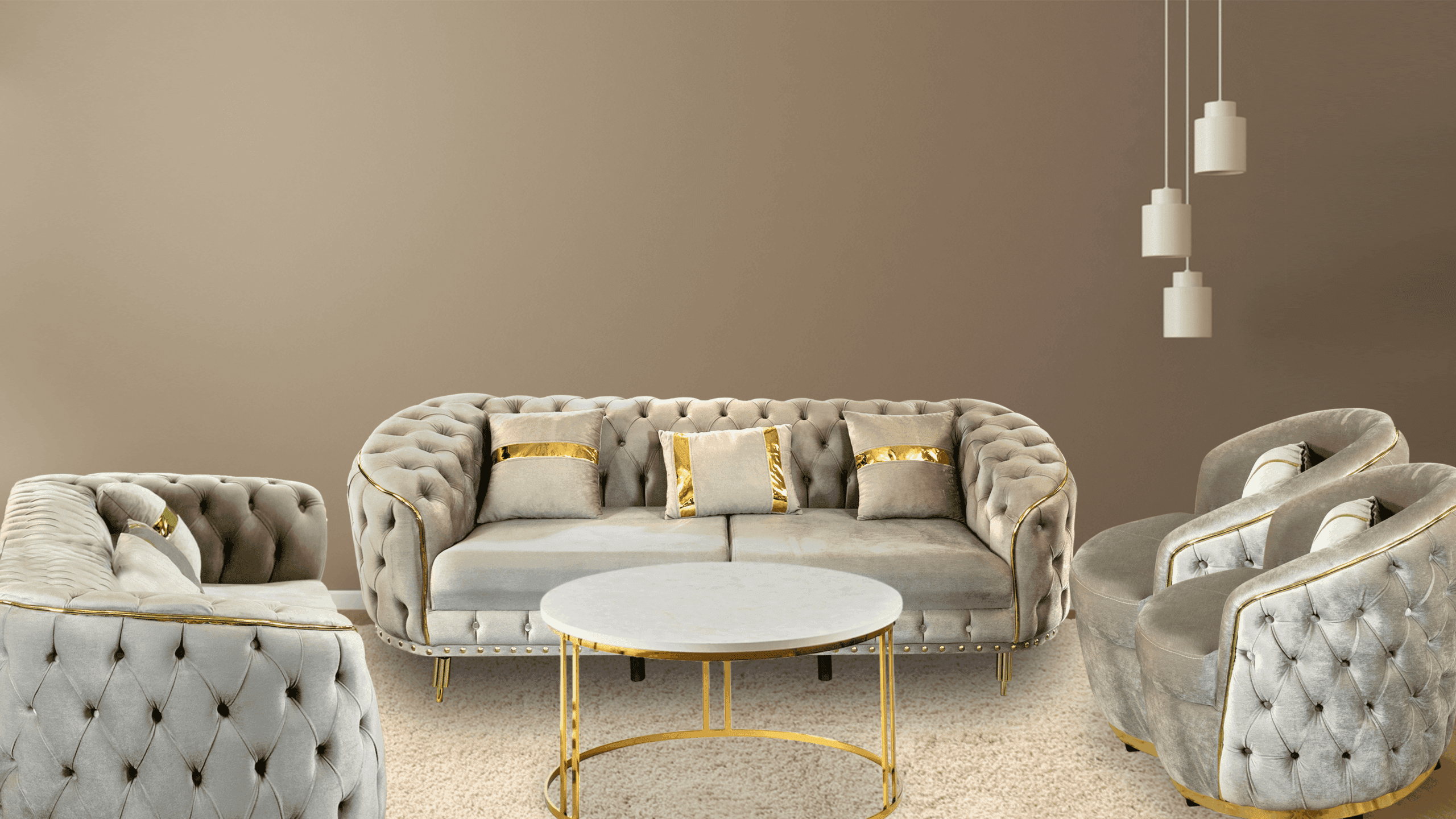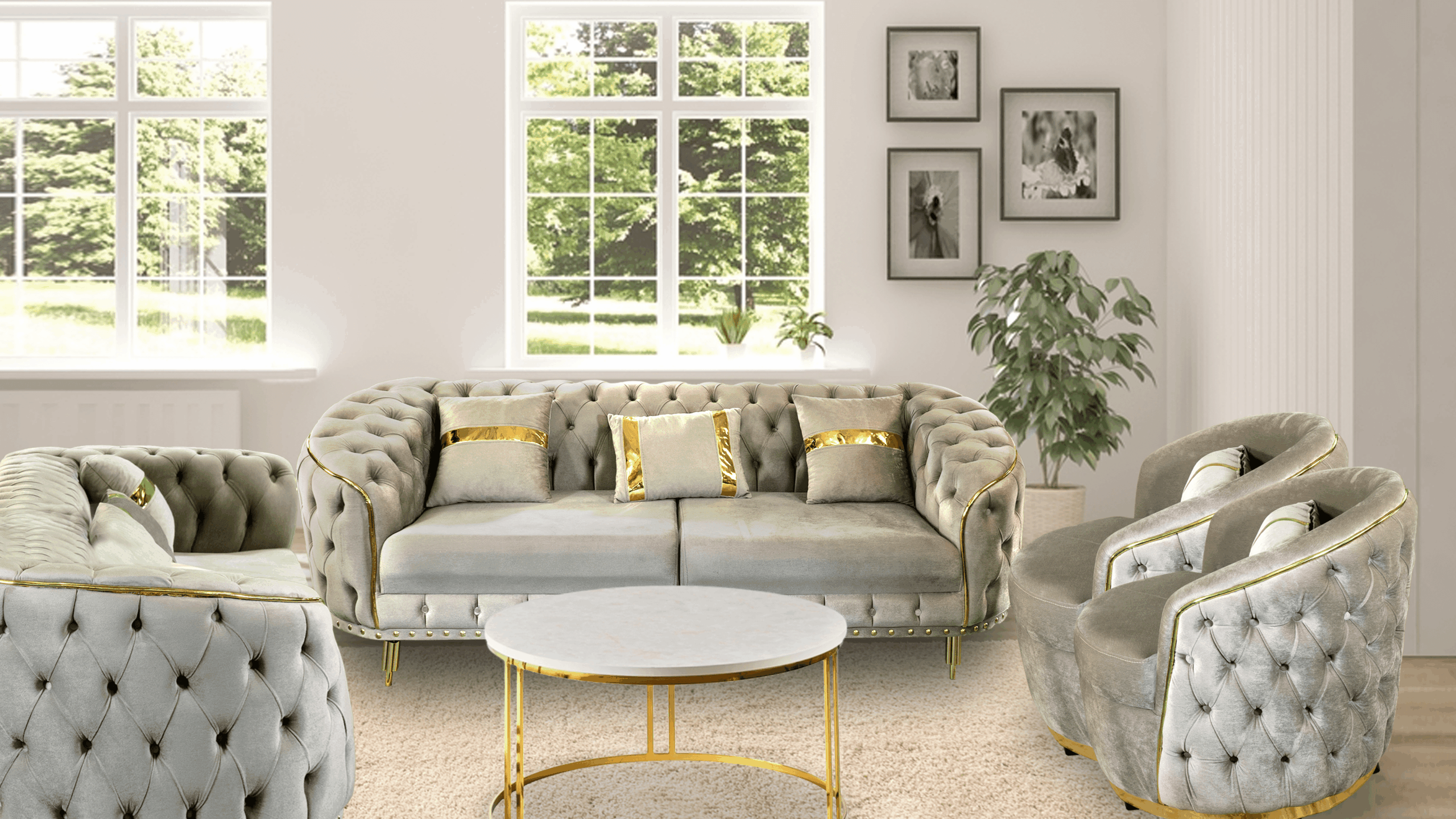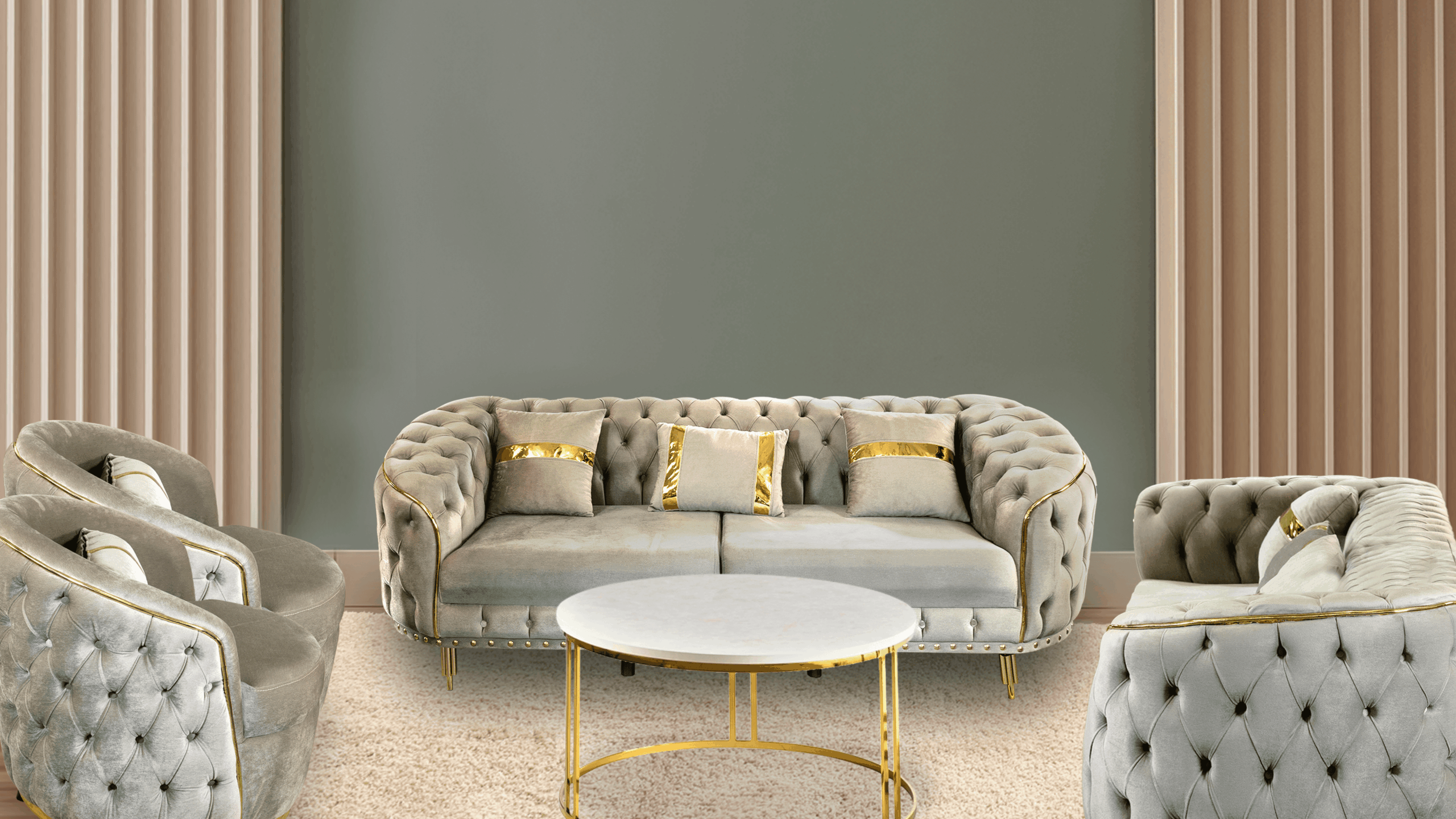 Dessutom ger handsniderat trä en underbar touch till sofforna.