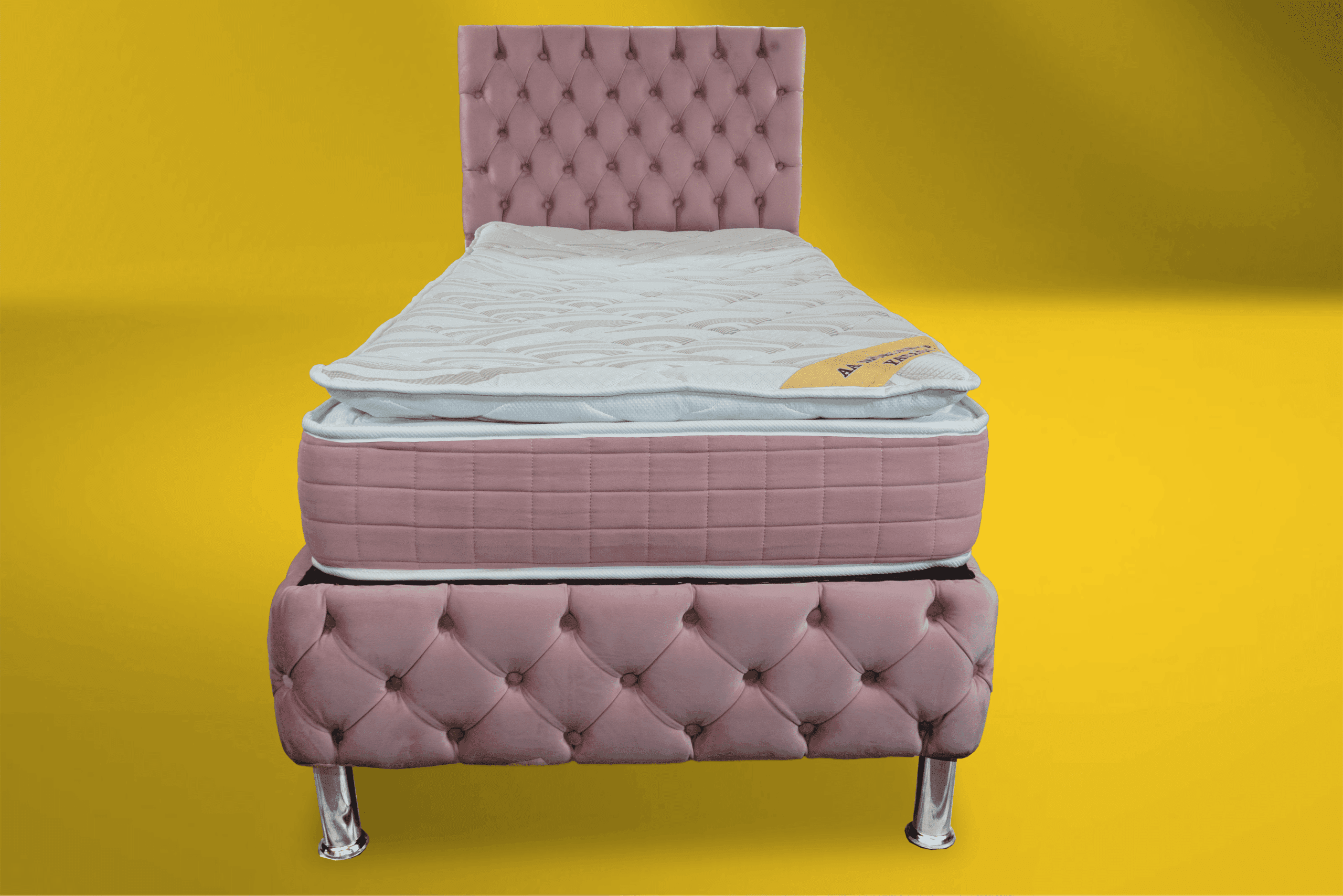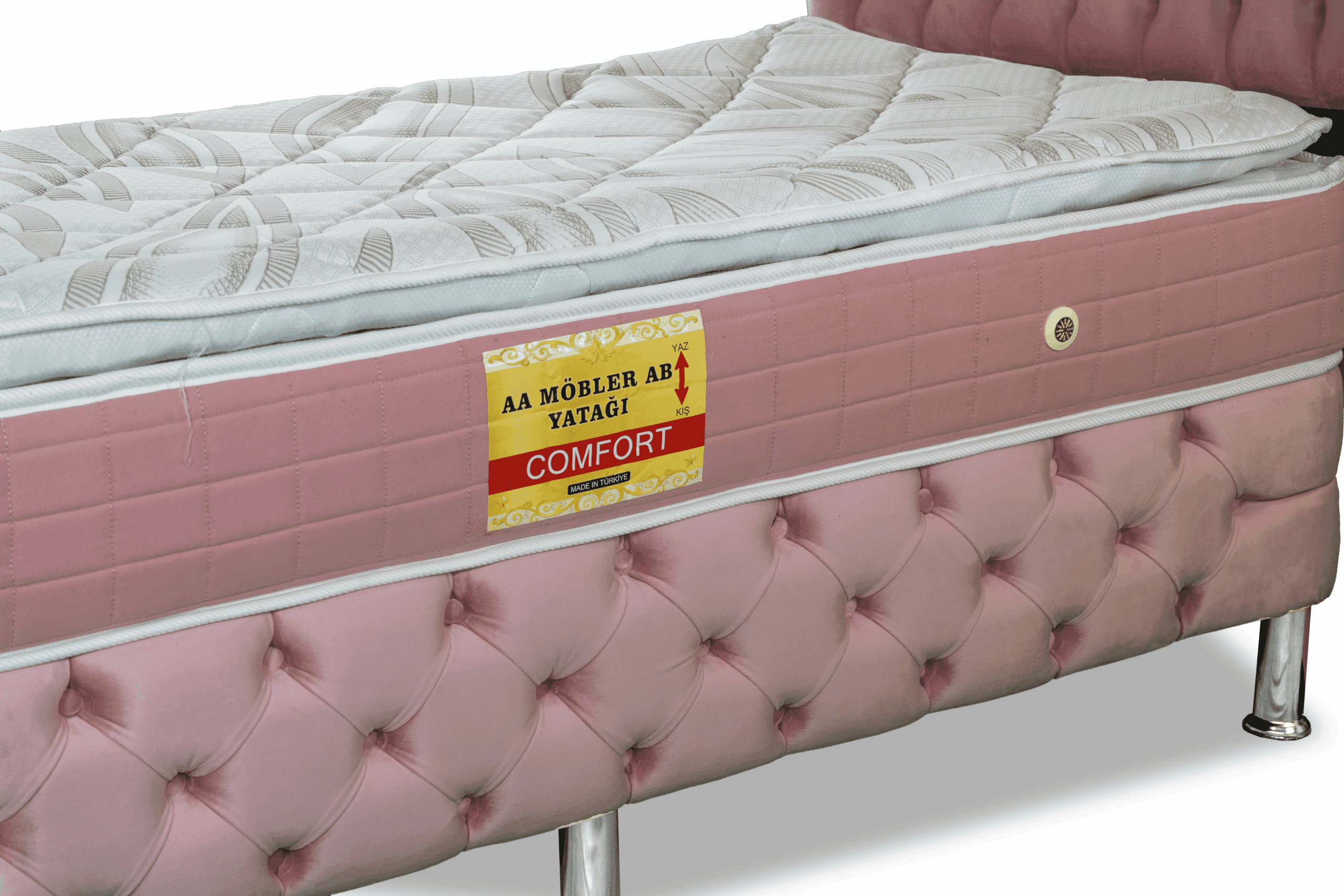 På toppen ligger en 9 cm tjock bäddmadrass i perforerat soft skum som har god andningsförmåga och följsamhet samt ger en härlig ytmjuk känsla! 12 cm ben i metall och pikerad sänggavel ingår. Sov på saken! När du köper en säng ingår vår nöjd kundgaranti där du har möjlighet att byta fasthet på sängen om du inte är nöjd. Alla sängar har dessutom 2 års garanti mot ram- och fjäderbrott.