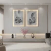 Integrerad LED-aura: Båda tavlorna är utrustade med dold belysning längs kanterna som skapar en mjuk, varm halo-effekt mot väggen. Belysningen binder samman paret och skapar en stämningsfull atmosfär under dygnets mörka timmar.