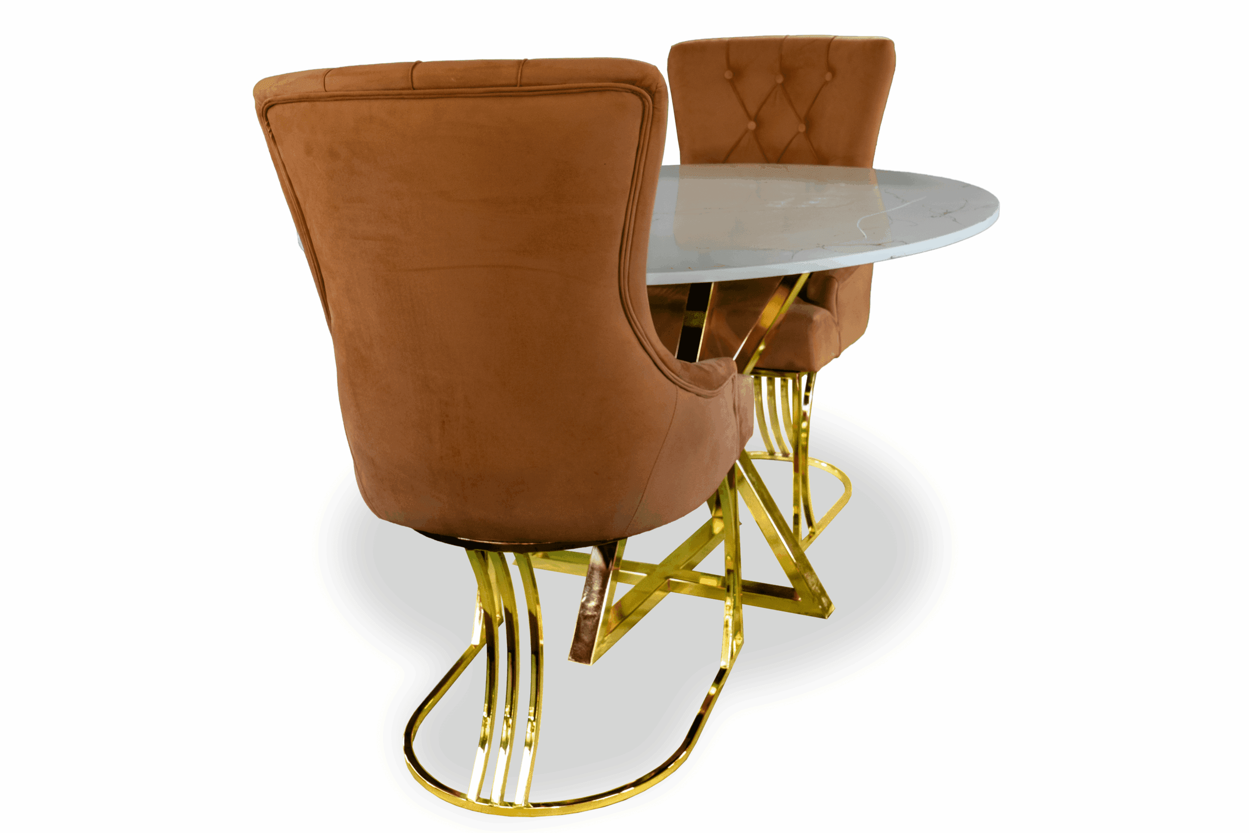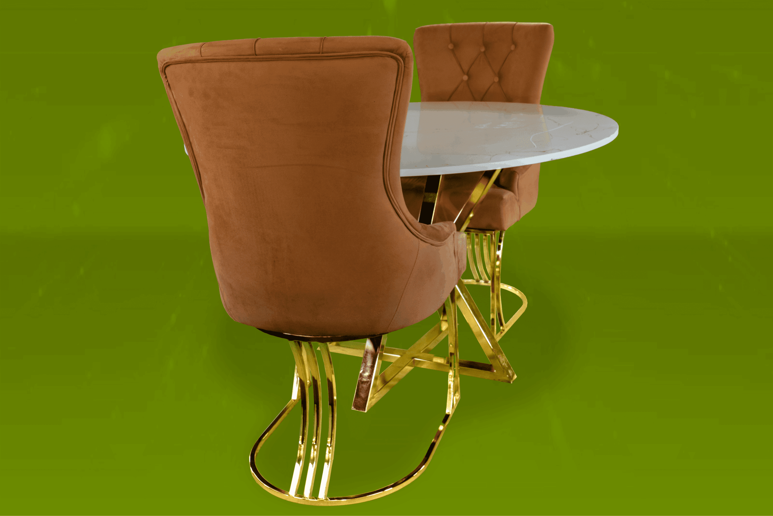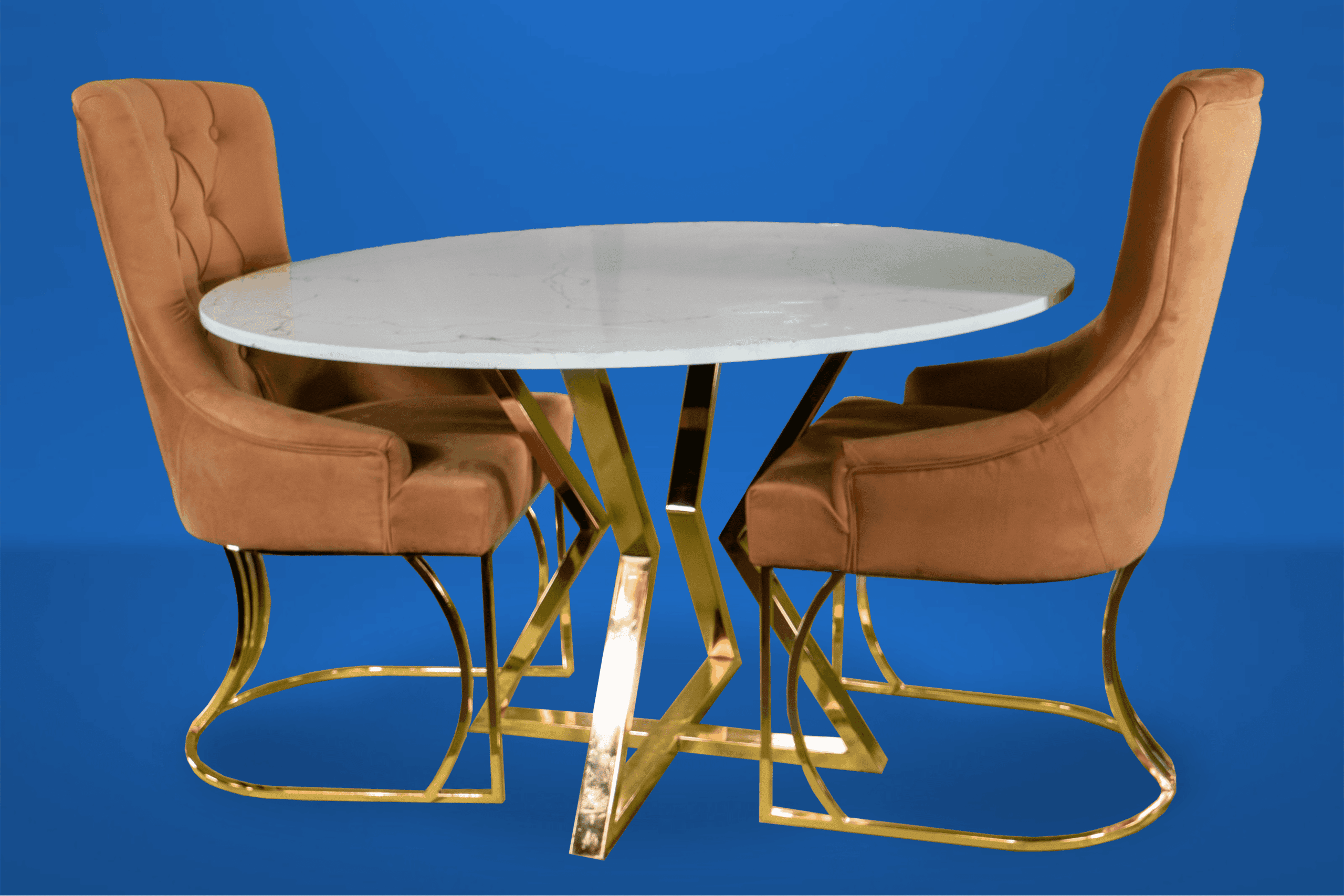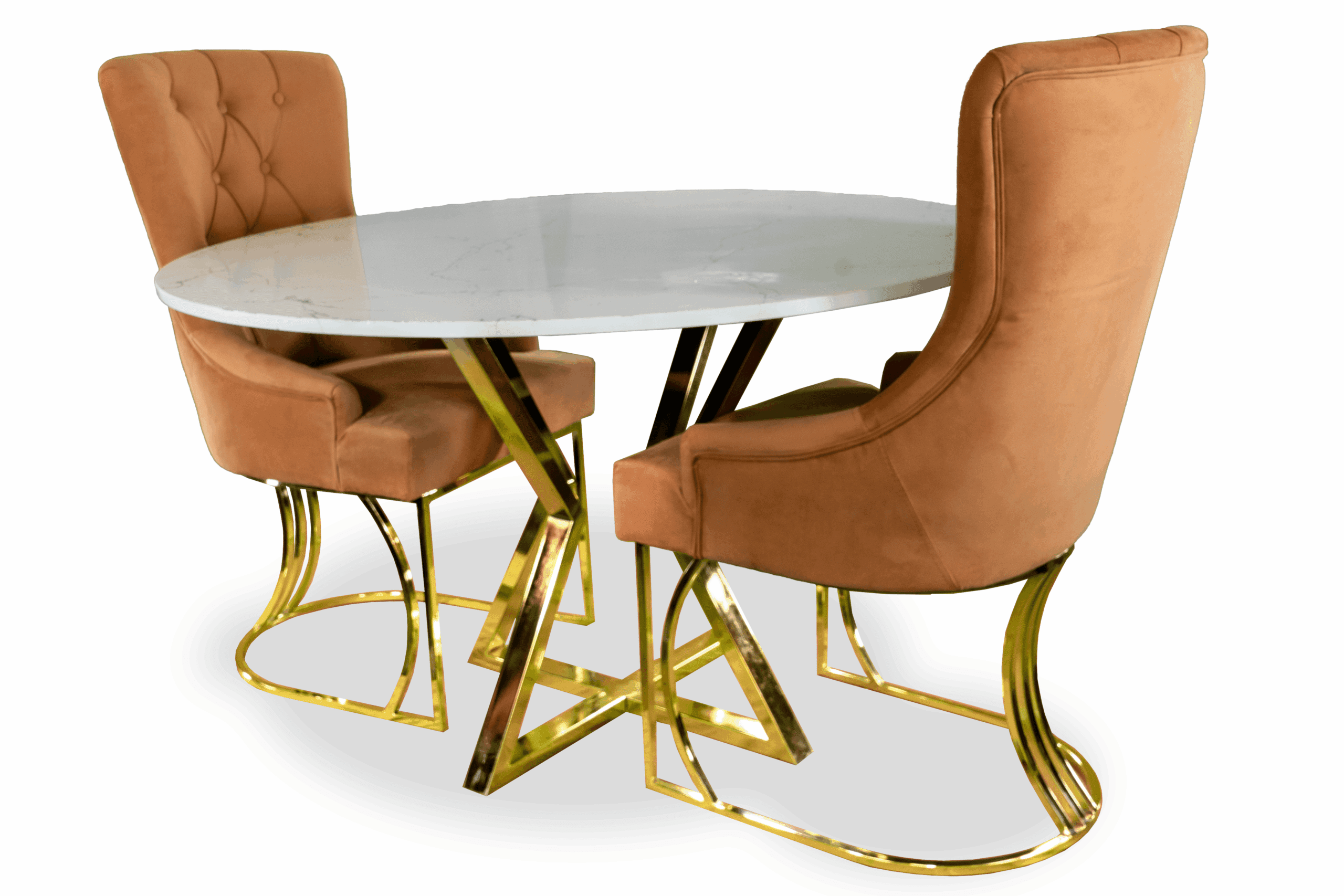 Den marmormönstrade glasskivan är minst lika vacker som äkta natursten, men är mer lättskött och beständig mot smuts och vätskor. Stolar är en klädd stol med vadderad sits och rygg. .och glaset är tillverkat av de finaste glastyperna som är splittringsbeständiga och även reptåliga.