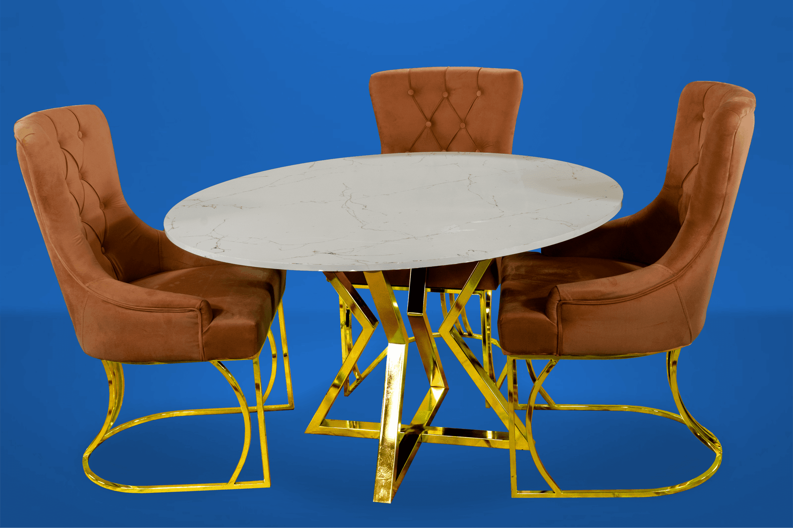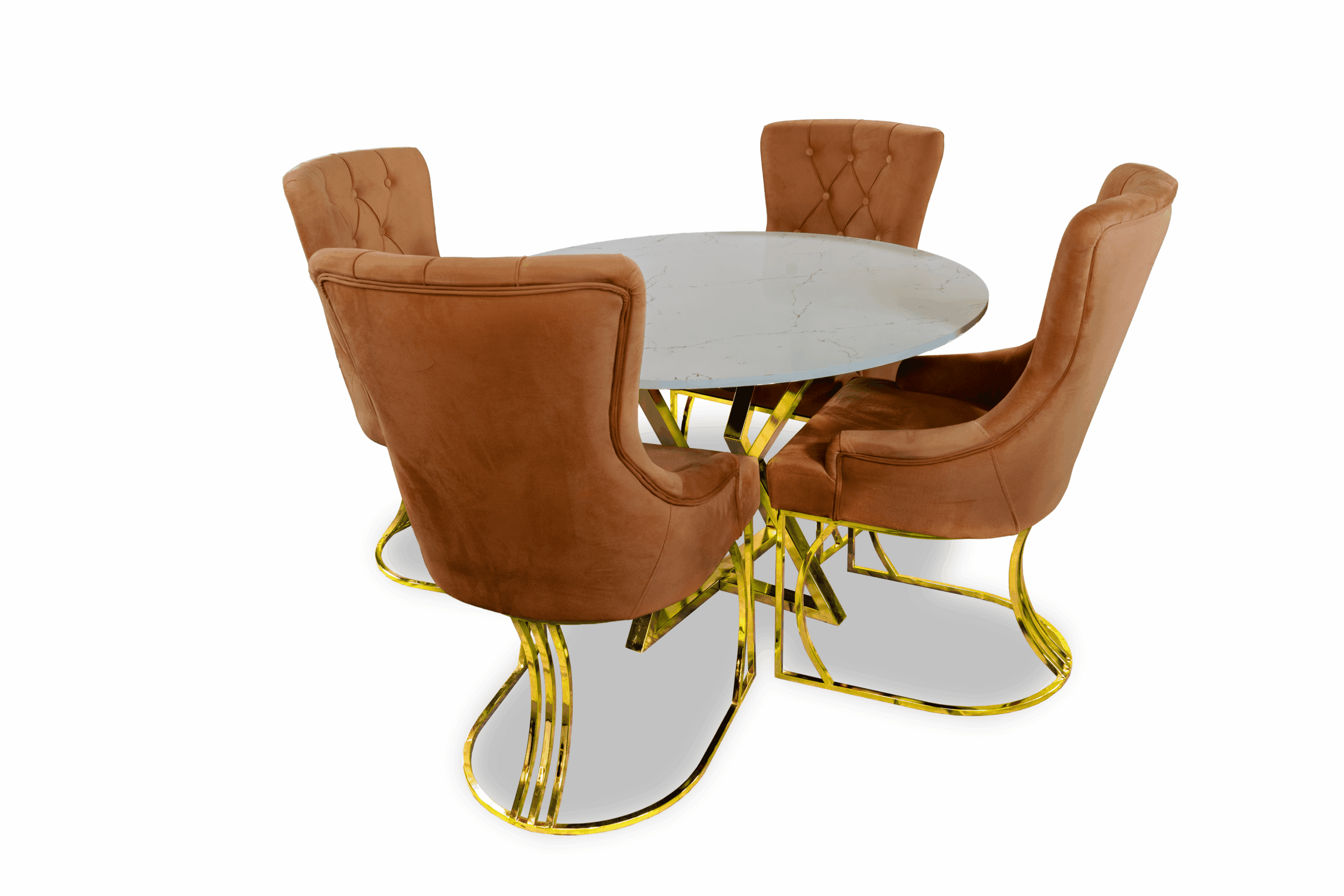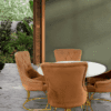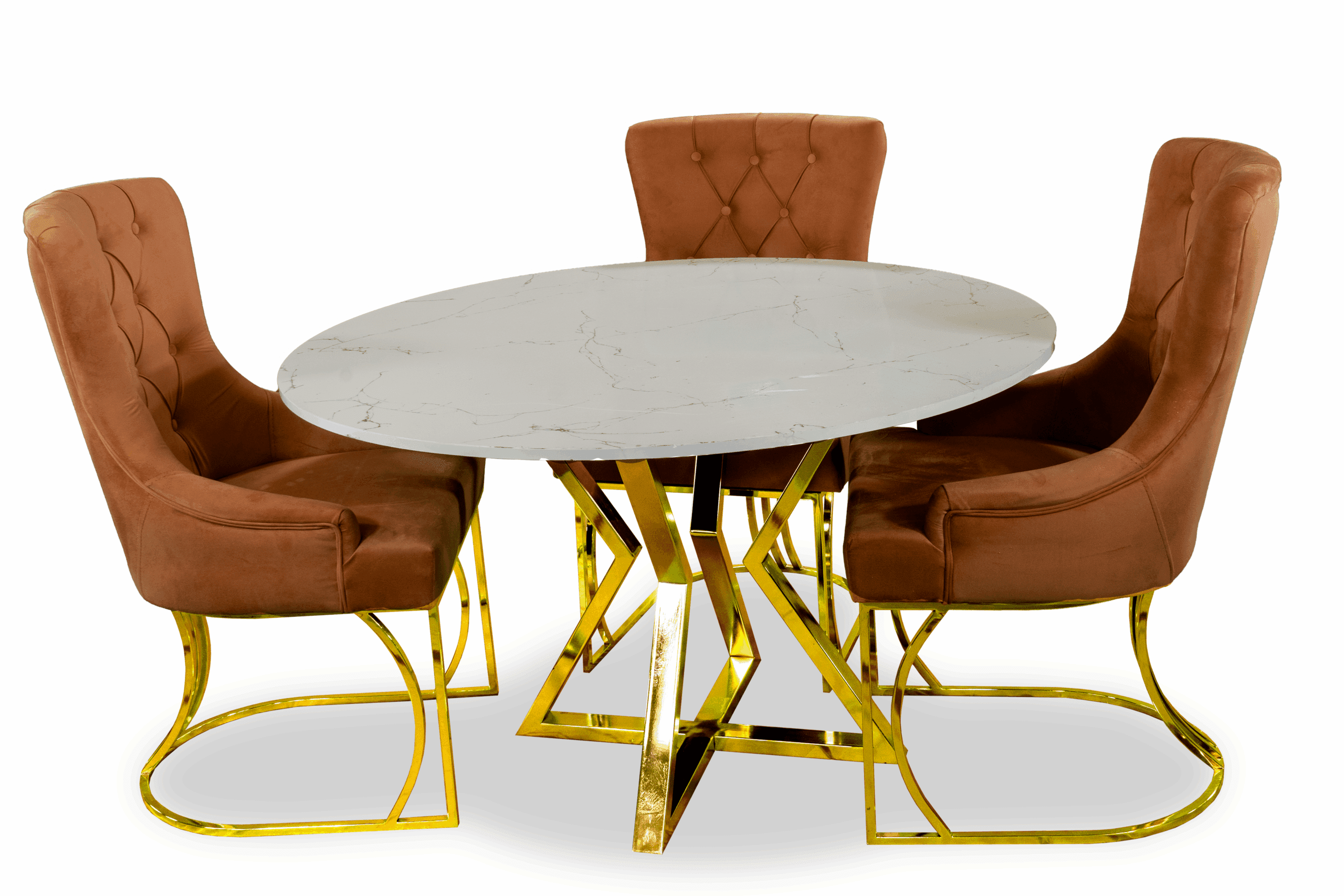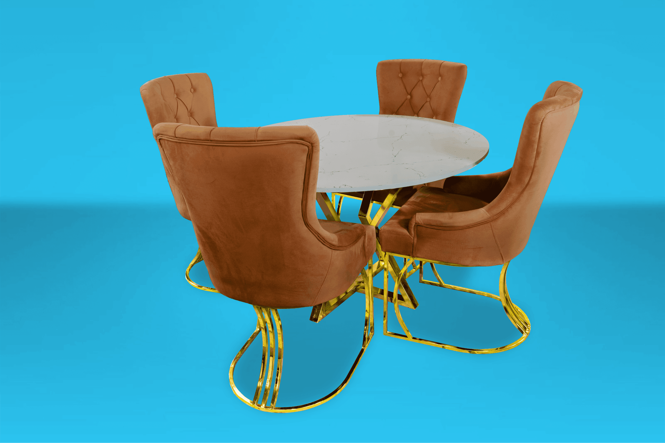 Den marmormönstrade glasskivan är minst lika vacker som äkta natursten, men är mer lättskött och beständig mot smuts och vätskor. Stolar är en klädd stol med vadderad sits och rygg. .och glaset är tillverkat av de finaste glastyperna som är splittringsbeständiga och även reptåliga.