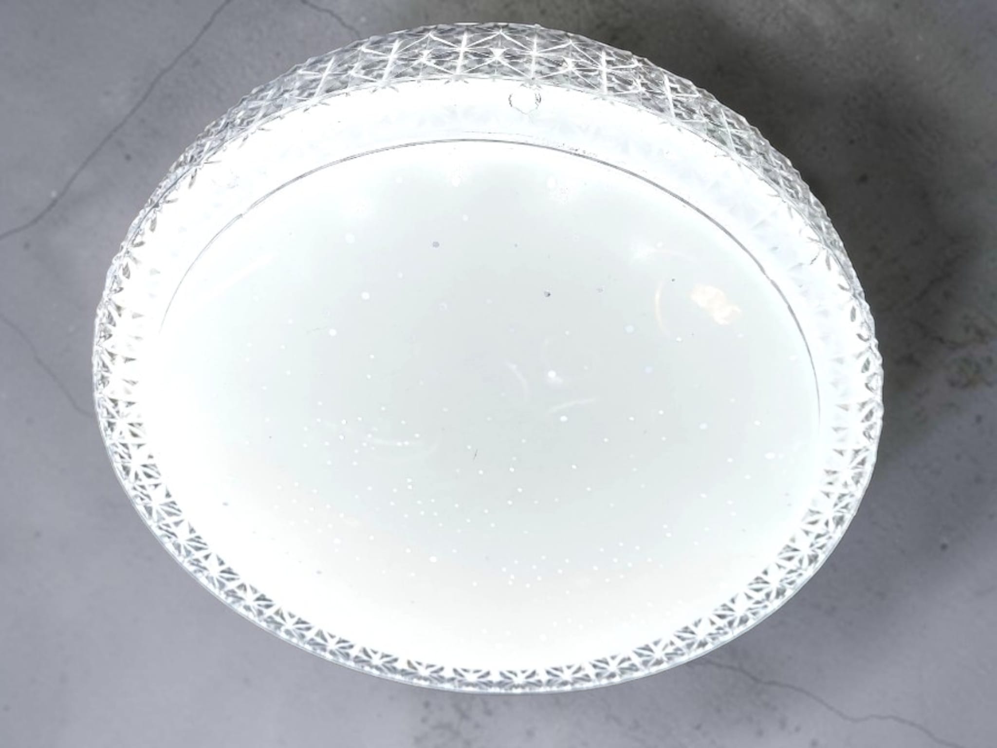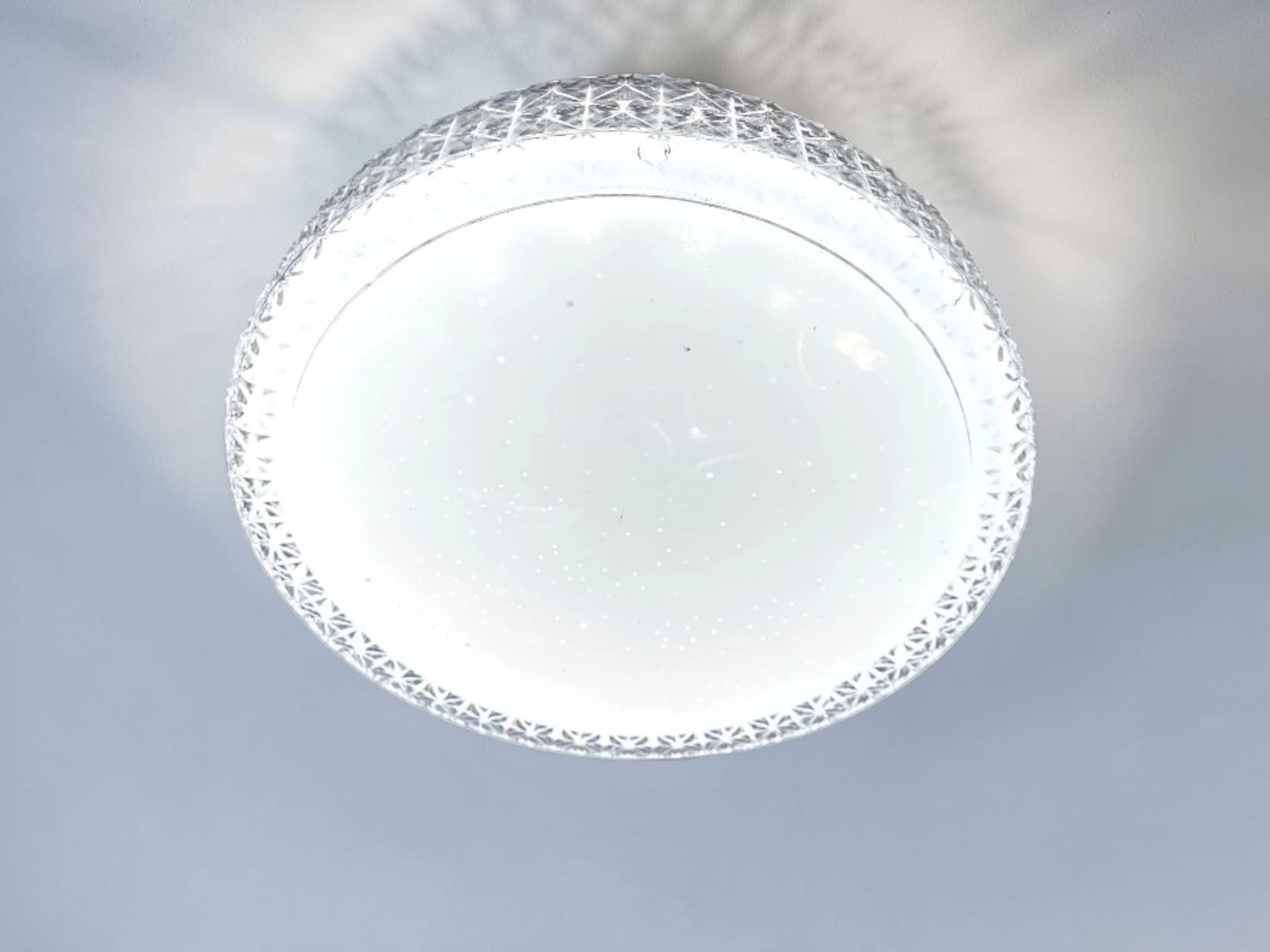 Gnistrande ”Stardust”-diffusor: Den centrala ytan är beströdd med tusentals små ljusbrytande punkter. När lampan tänds skapas en effekt som påminner om en stjärnklar vinternatt.
