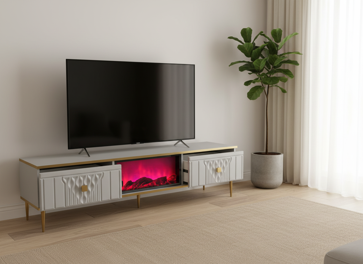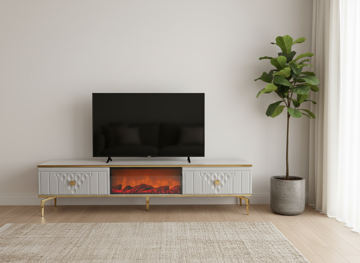 Göteborg TV-bänk Elkamin – Silver