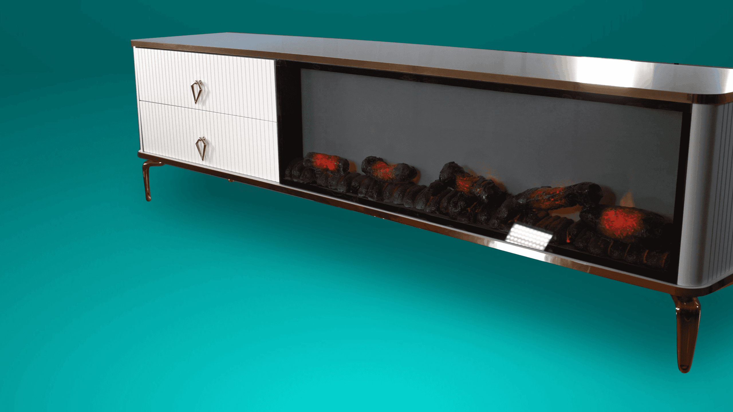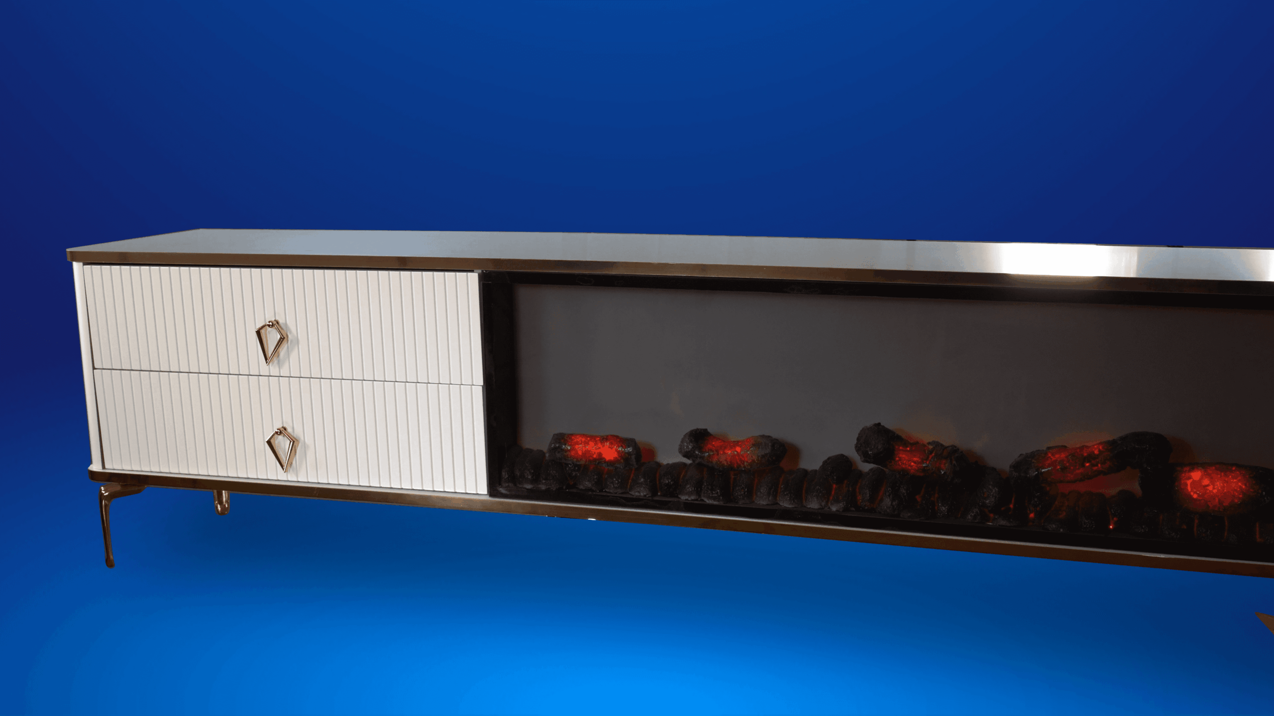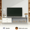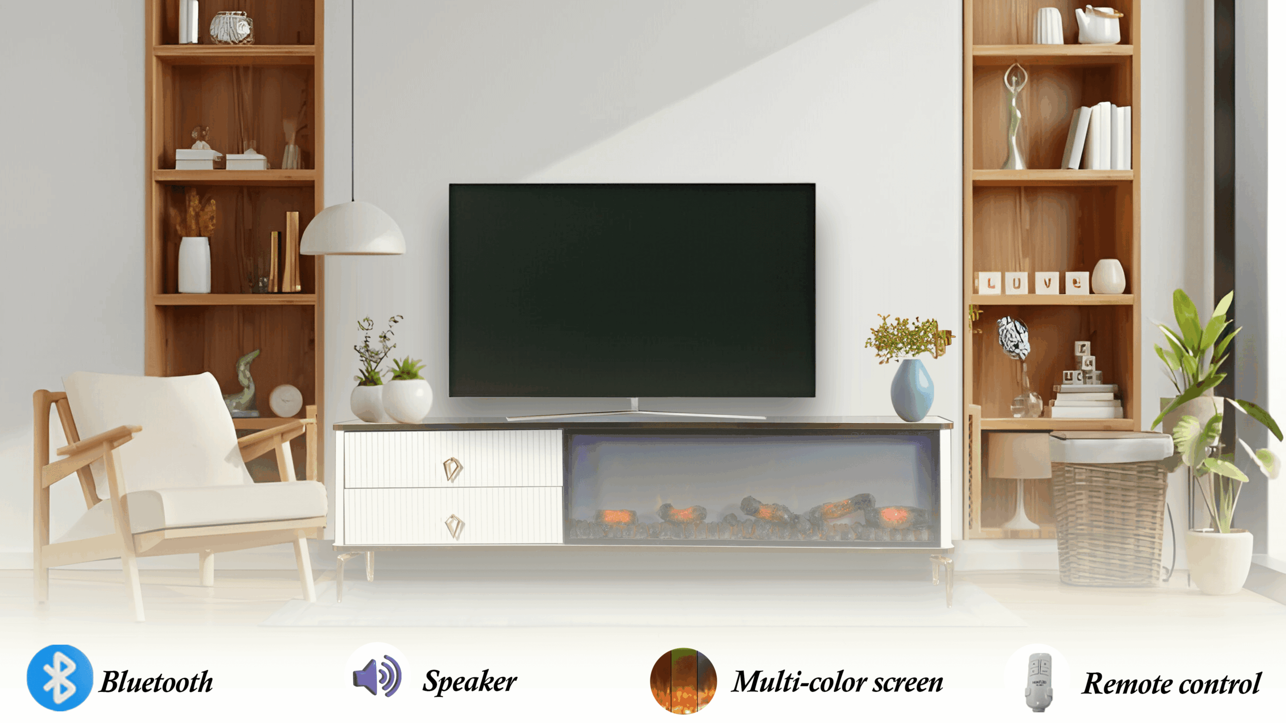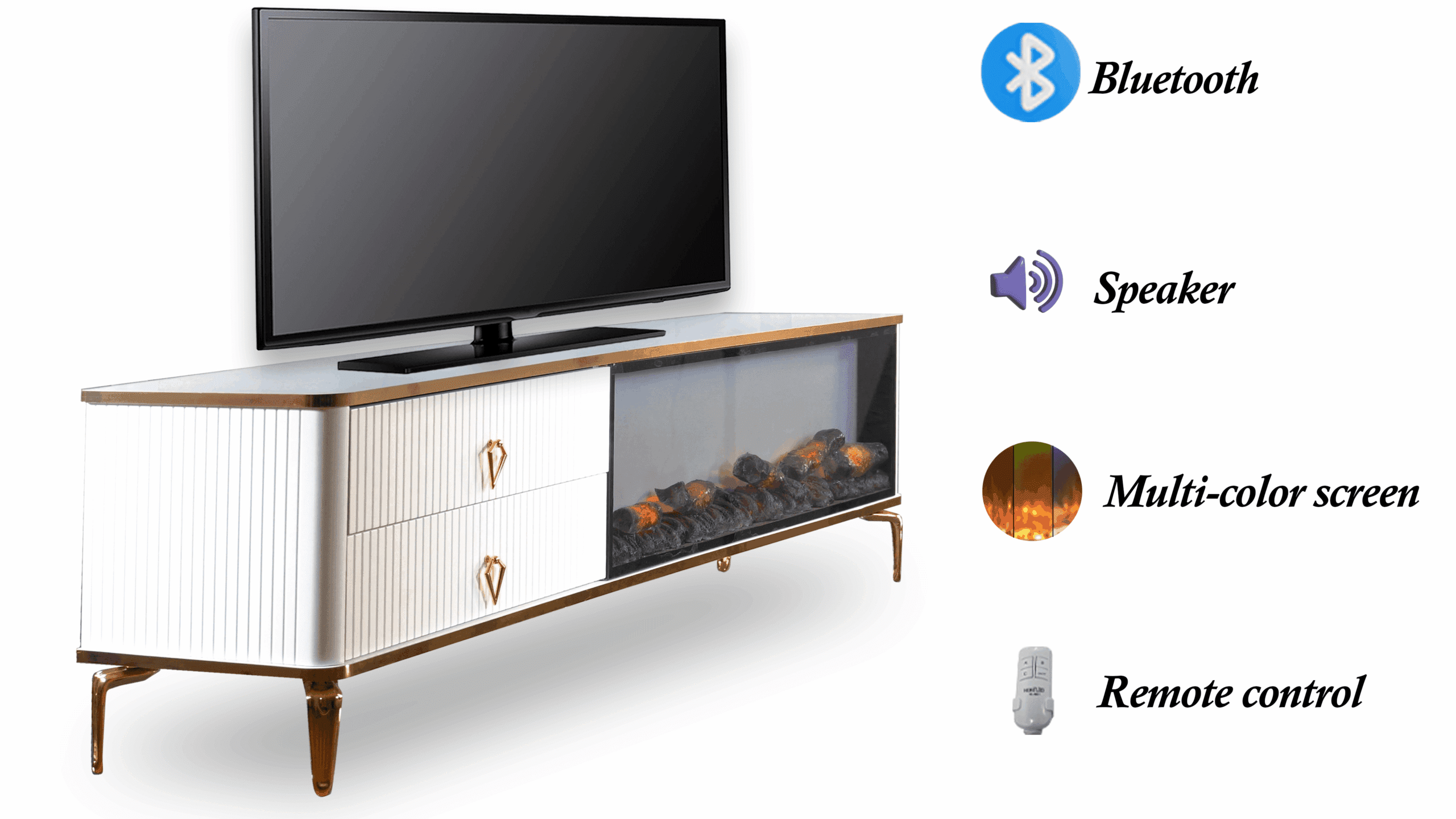 Denna tabell har många funktioner eftersom den har ett Bluetooth-system där du kan skapa en trådlös anslutning mellan bordet och mellan TV: n och även mellan mobilen eftersom bordet erbjuder en unik upplevelse när du ser eld, ved och glöd och burk Hör det brinnande ljudet och titta på det på ett trevligt sätt, så kan du alltid ändra belysningens färg genom styrenheten fäst vid bordet