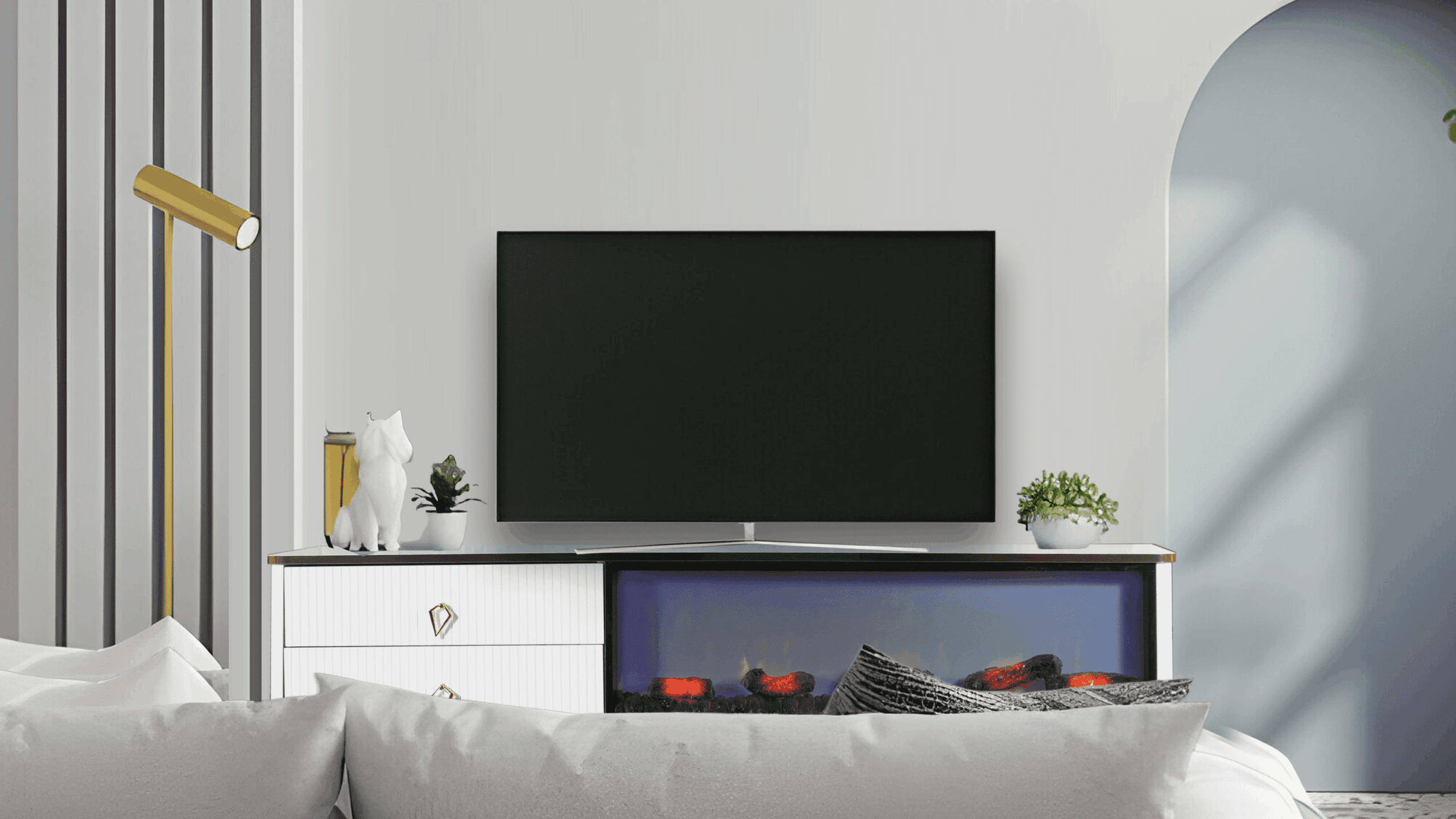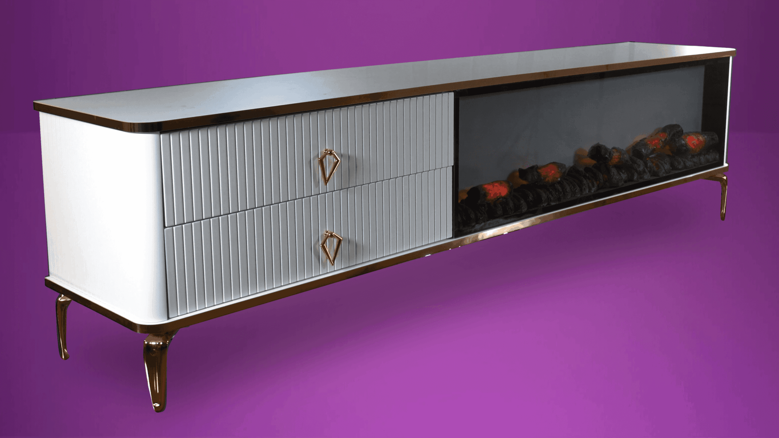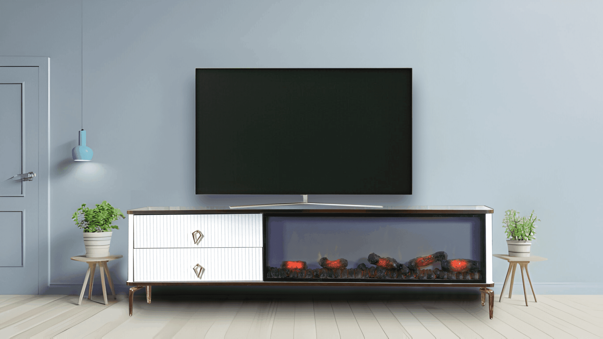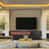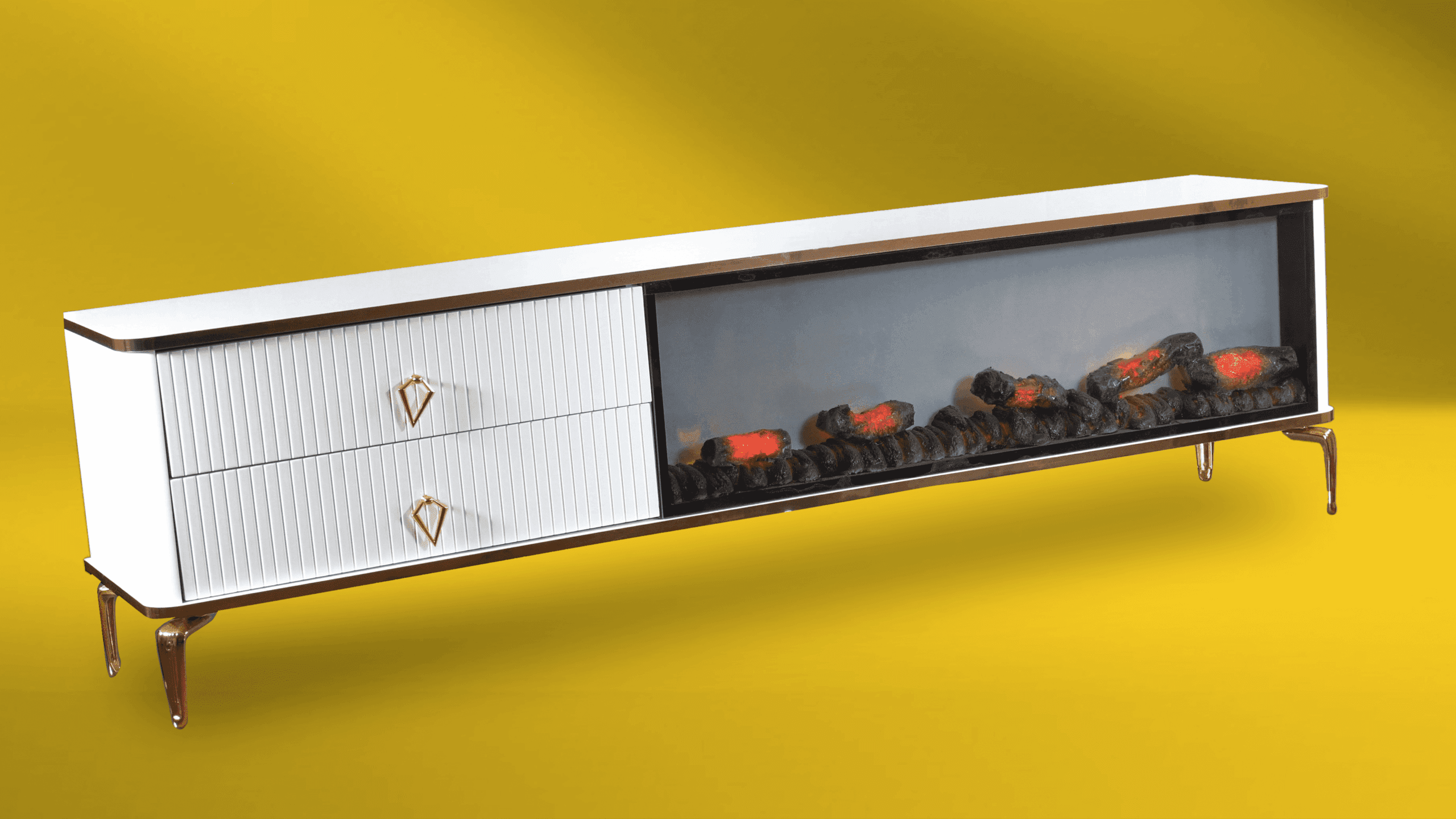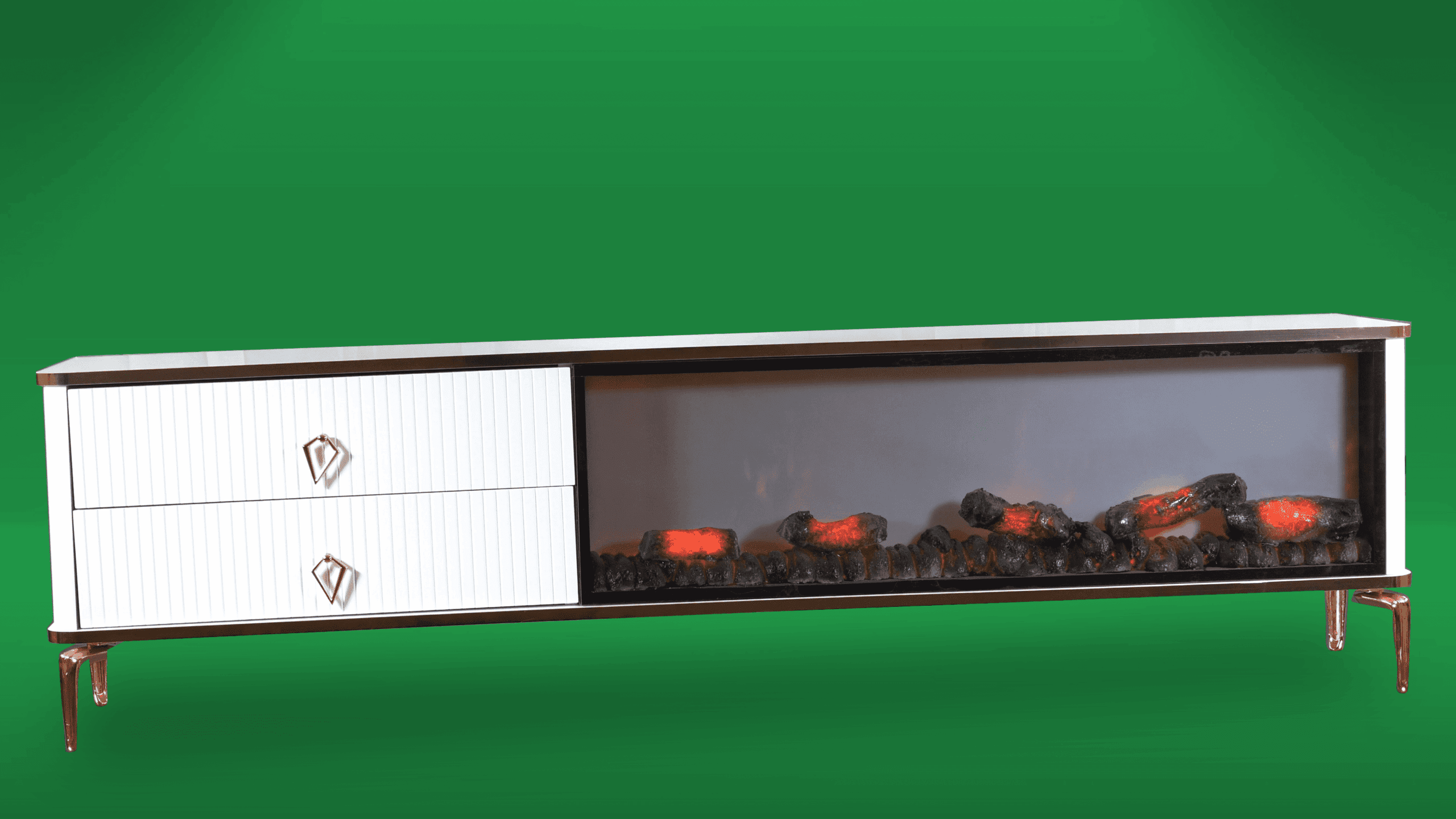 Denna tabell har många funktioner eftersom den har ett Bluetooth-system där du kan skapa en trådlös anslutning mellan bordet och mellan TV: n och även mellan mobilen eftersom bordet erbjuder en unik upplevelse när du ser eld, ved och glöd och burk Hör det brinnande ljudet och titta på det på ett trevligt sätt, så kan du alltid ändra belysningens färg genom styrenheten fäst vid bordet