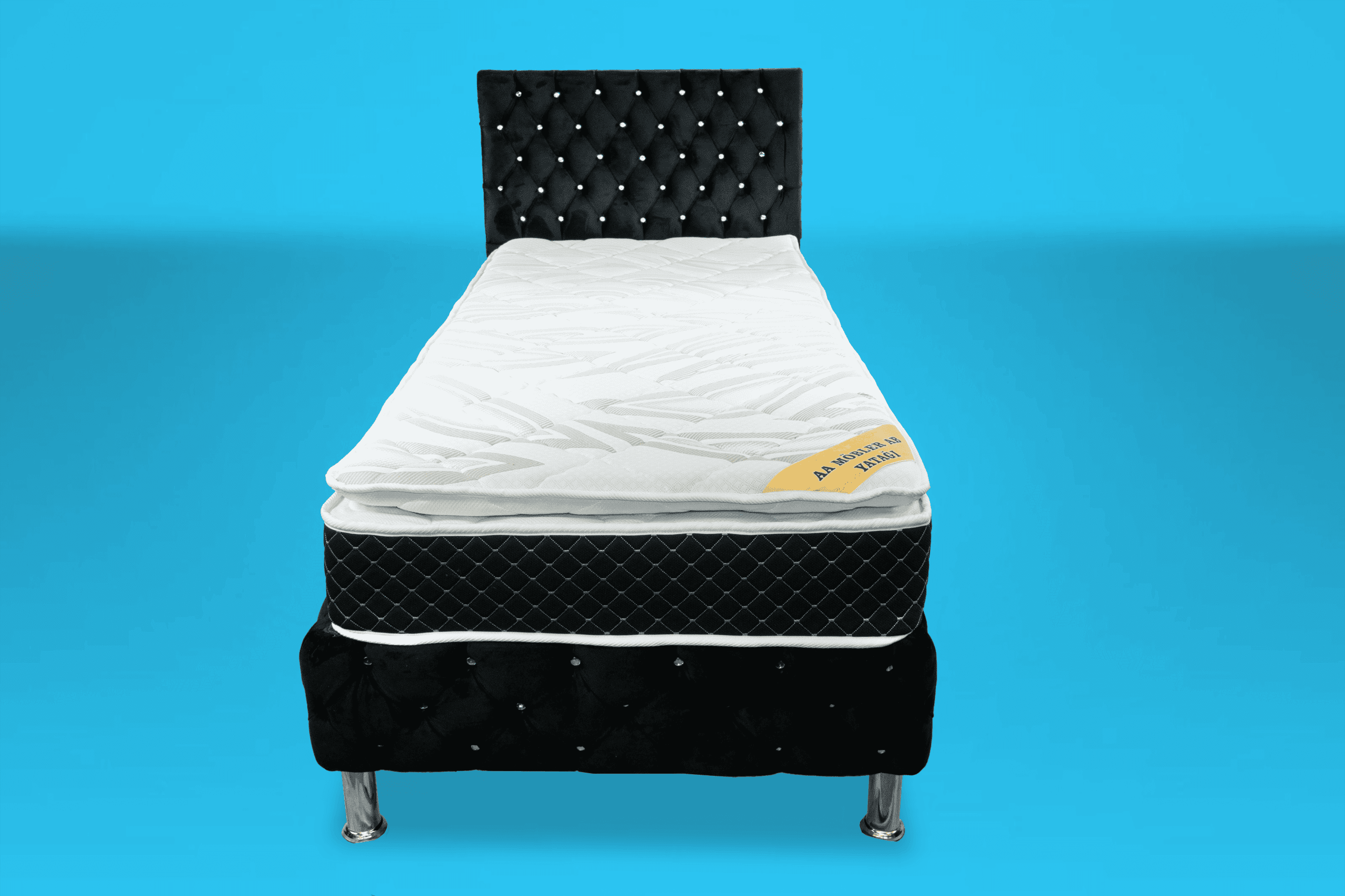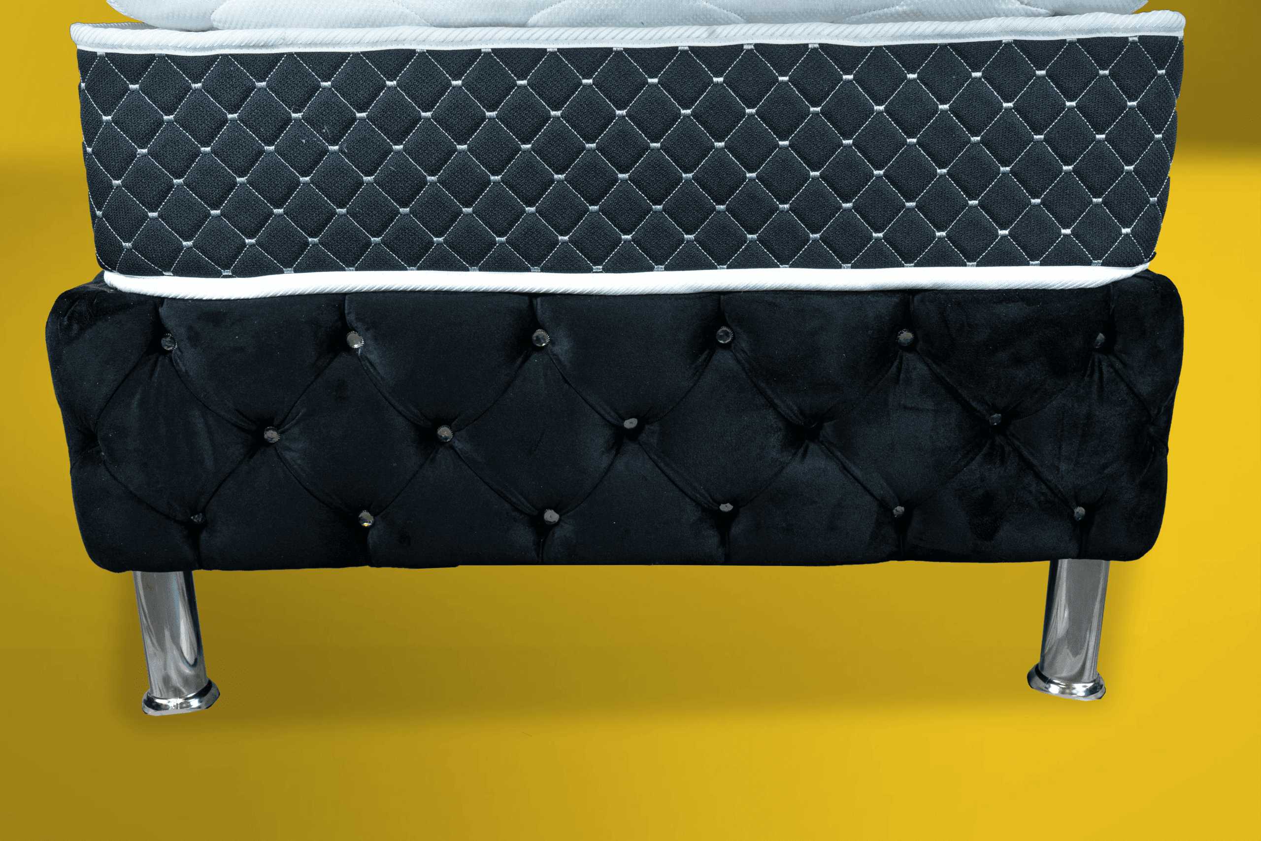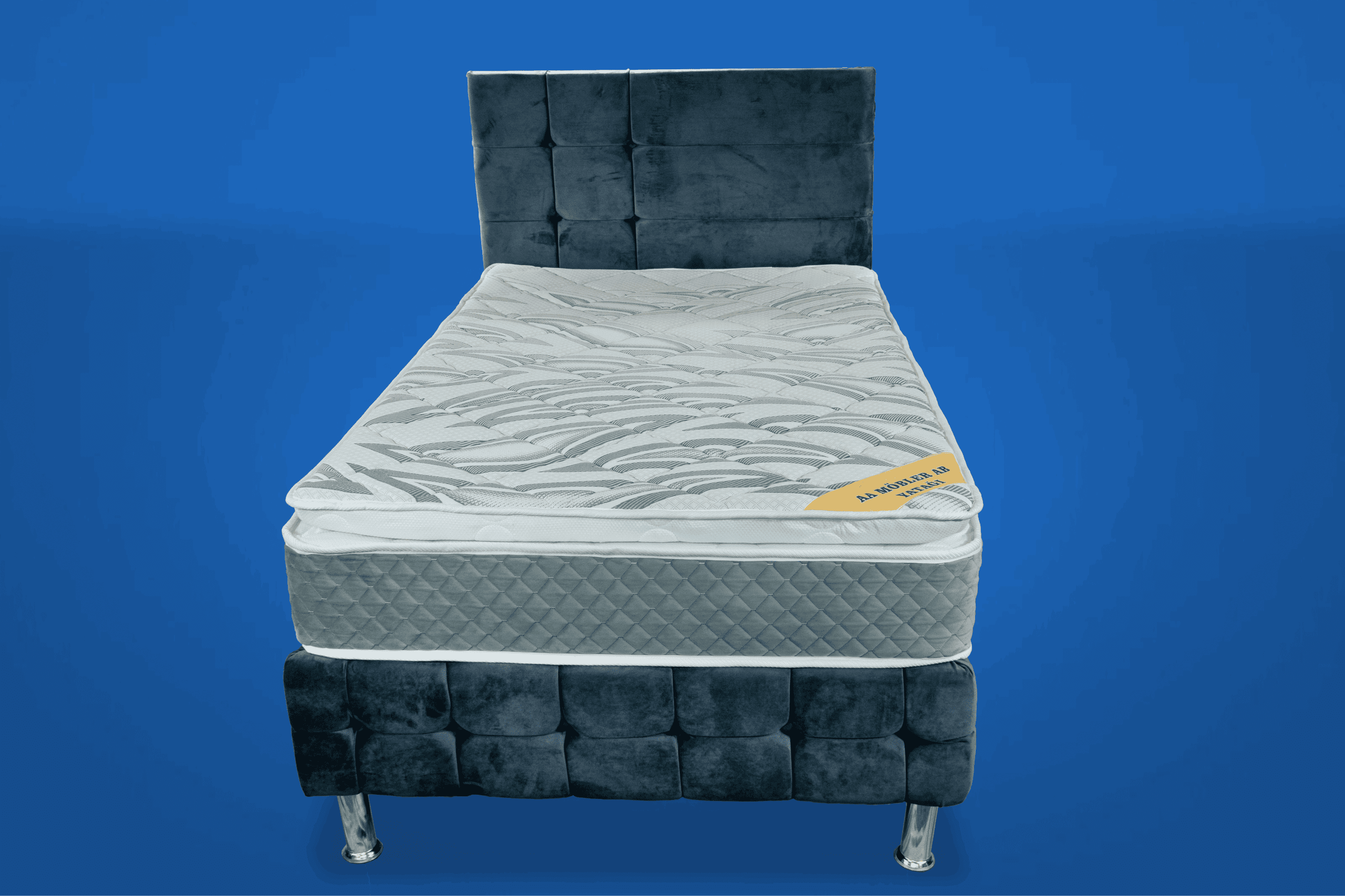 På toppen ligger en 9 cm tjock bäddmadrass i perforerat soft skum som har god andningsförmåga och följsamhet samt ger en härlig ytmjuk känsla! 12 cm ben i metall och pikerad sänggavel ingår. Sov på saken! När du köper en säng ingår vår nöjd kundgaranti där du har möjlighet att byta fasthet på sängen om du inte är nöjd. Alla sängar har dessutom 2 års garanti mot ram- och fjäderbrott.