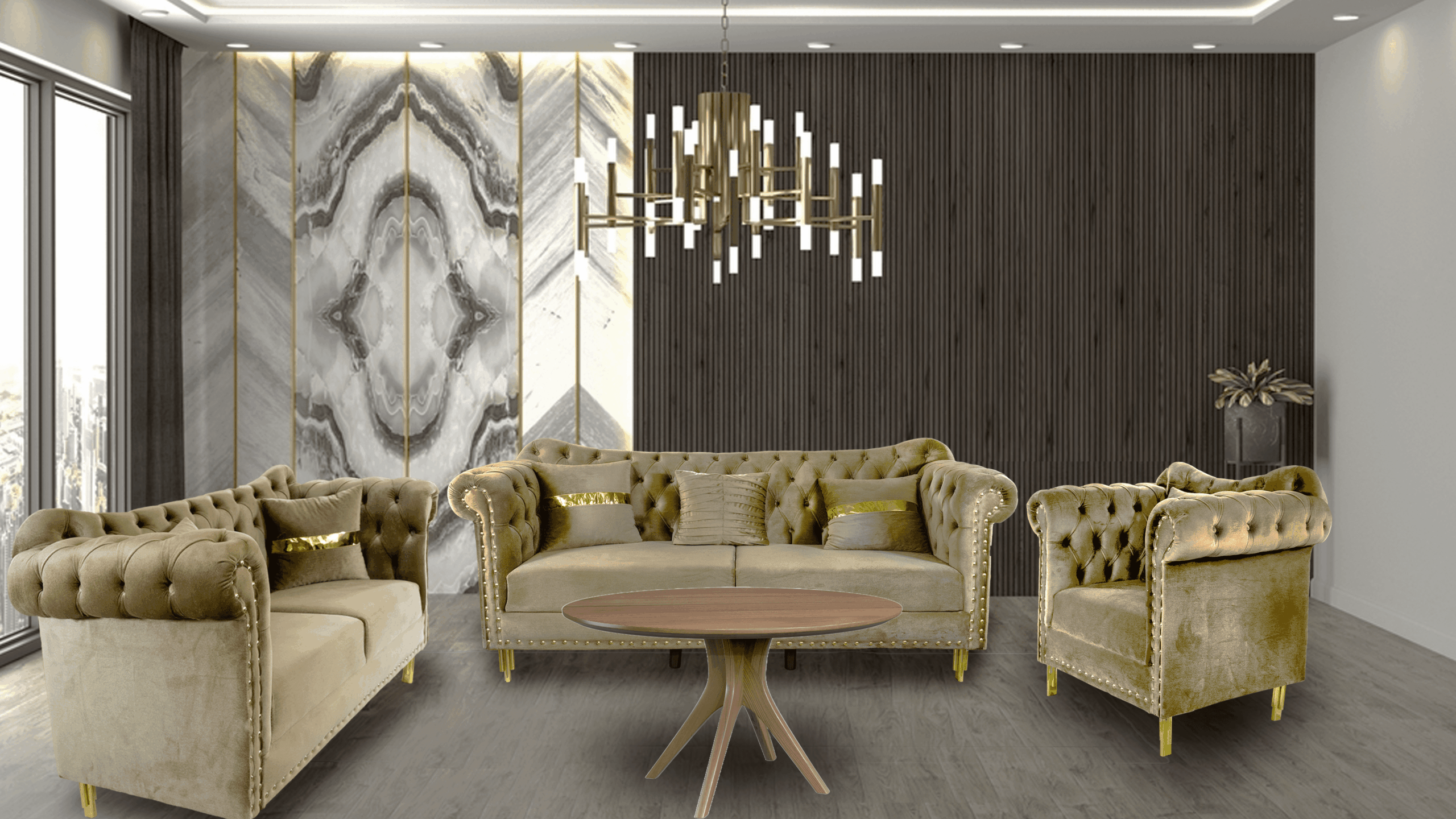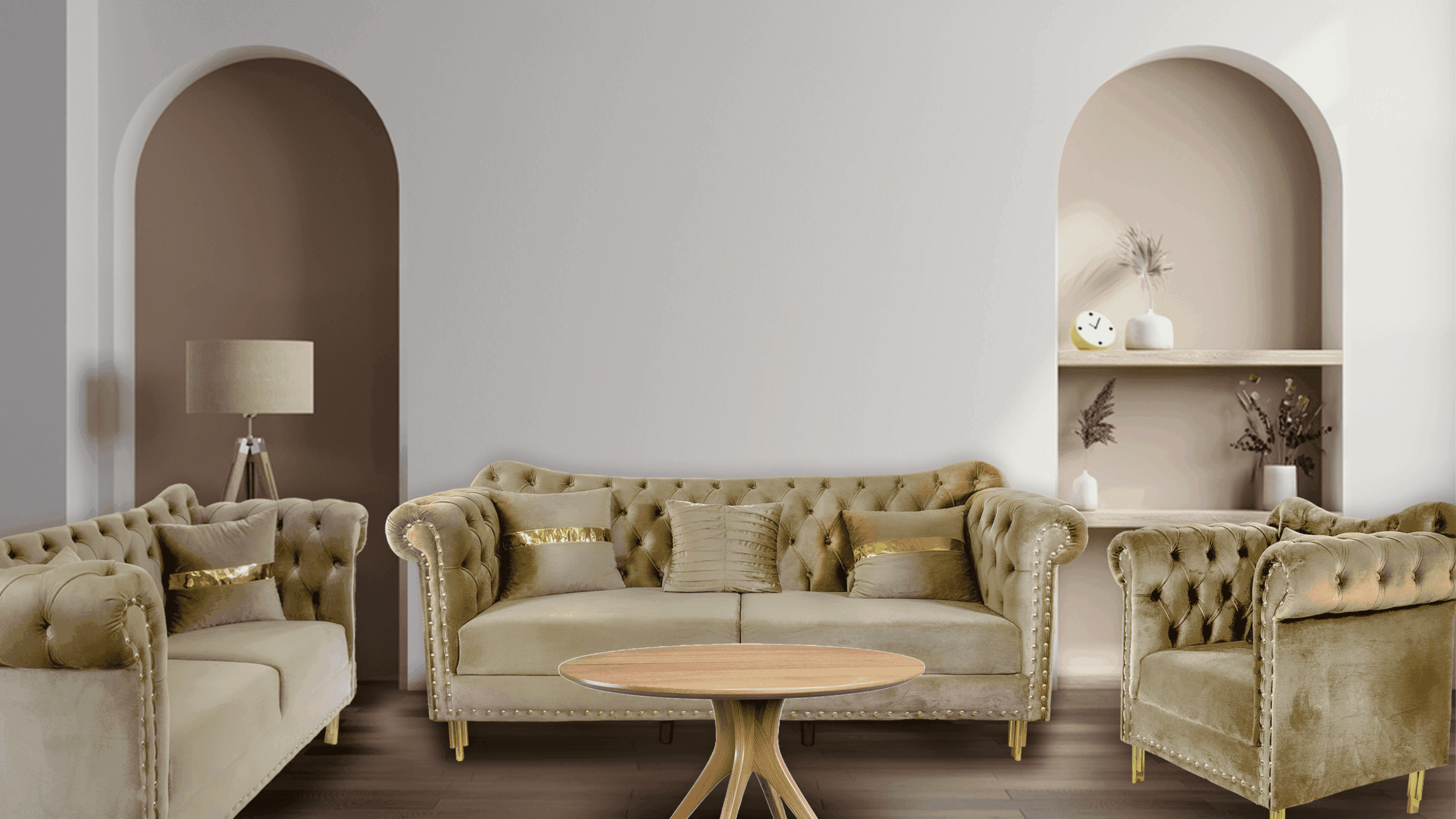 Dessutom ger handsniderat trä en underbar touch till sofforna.