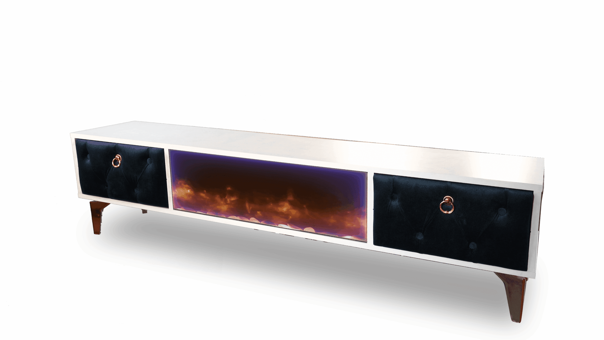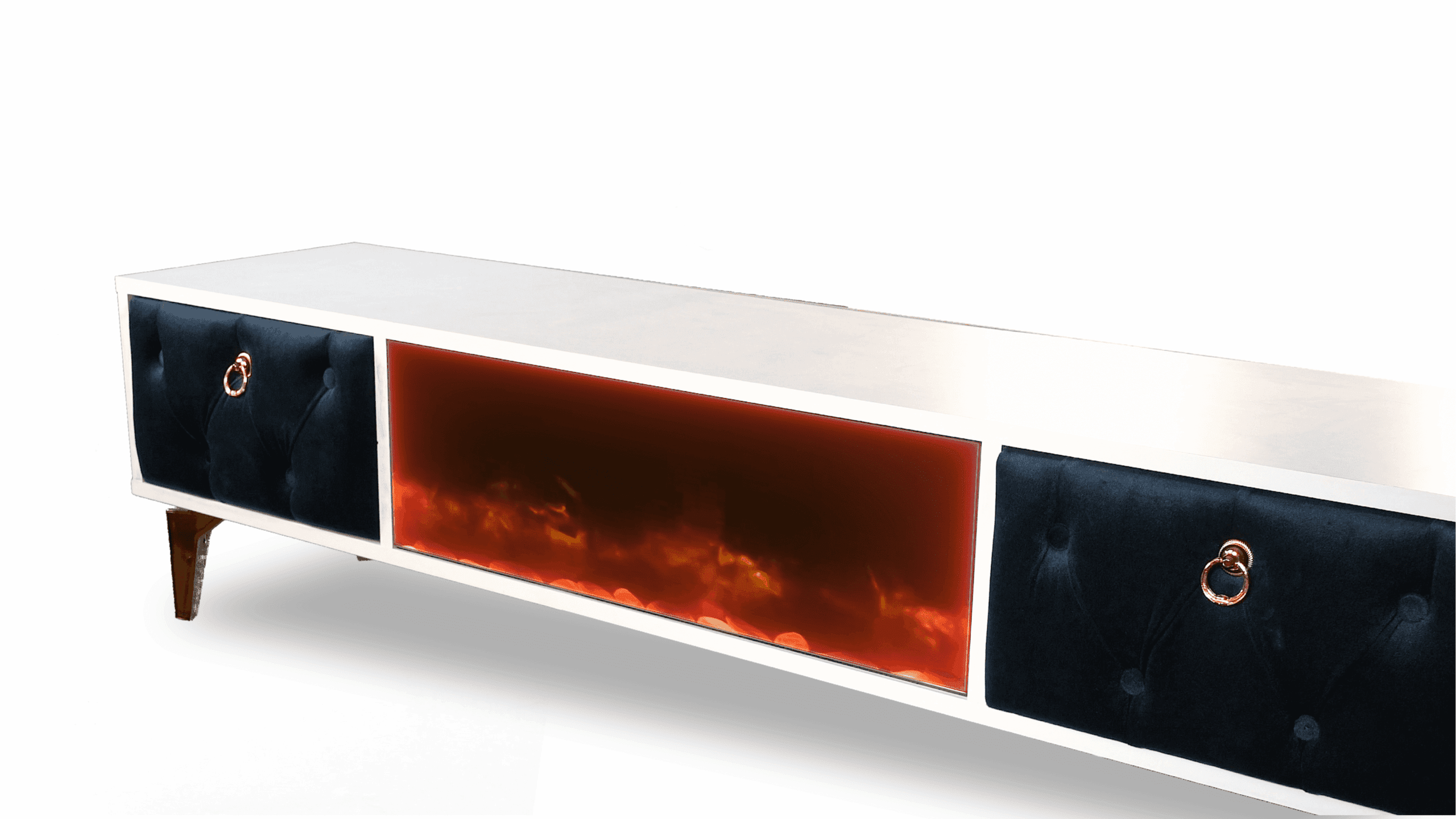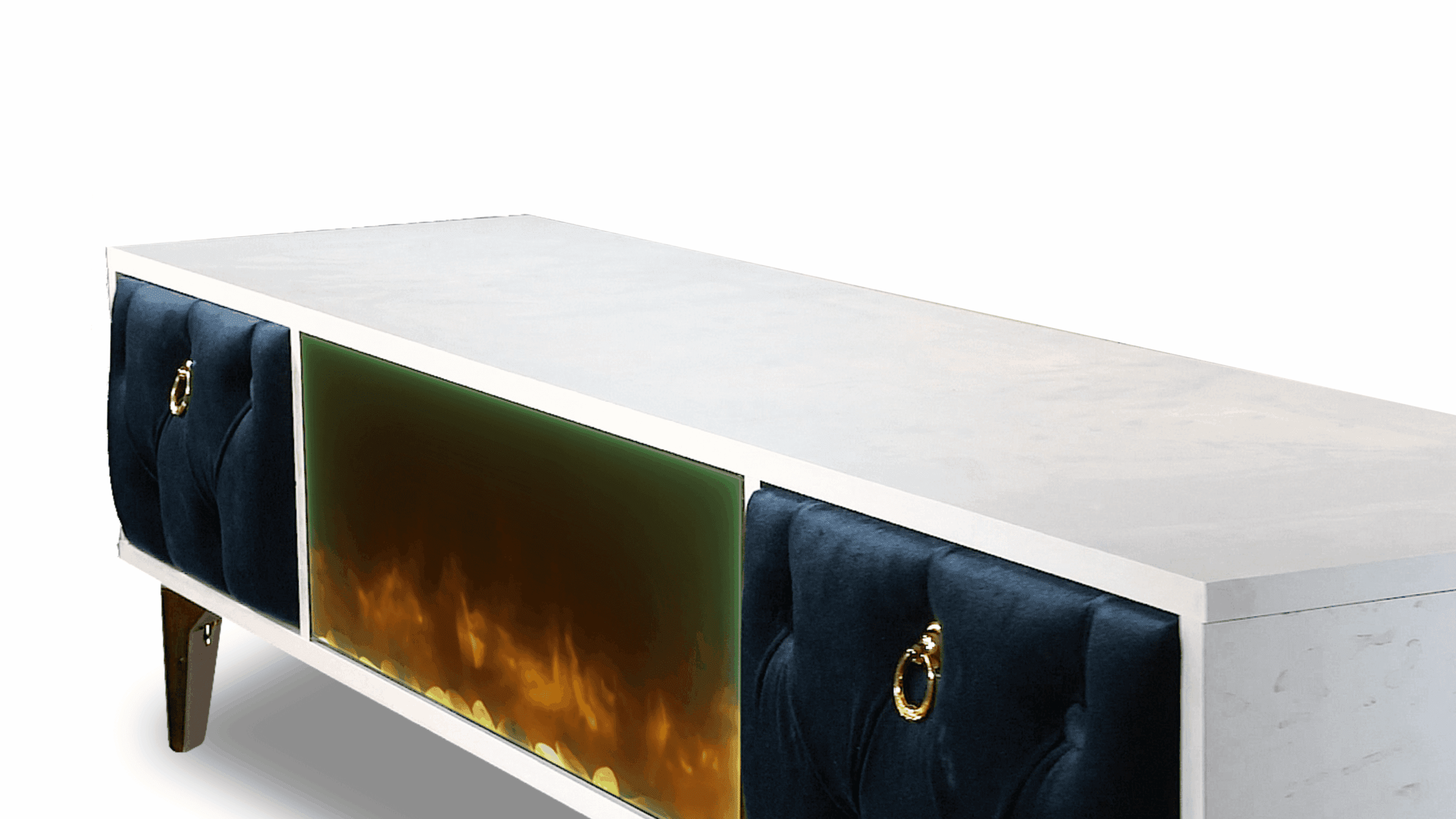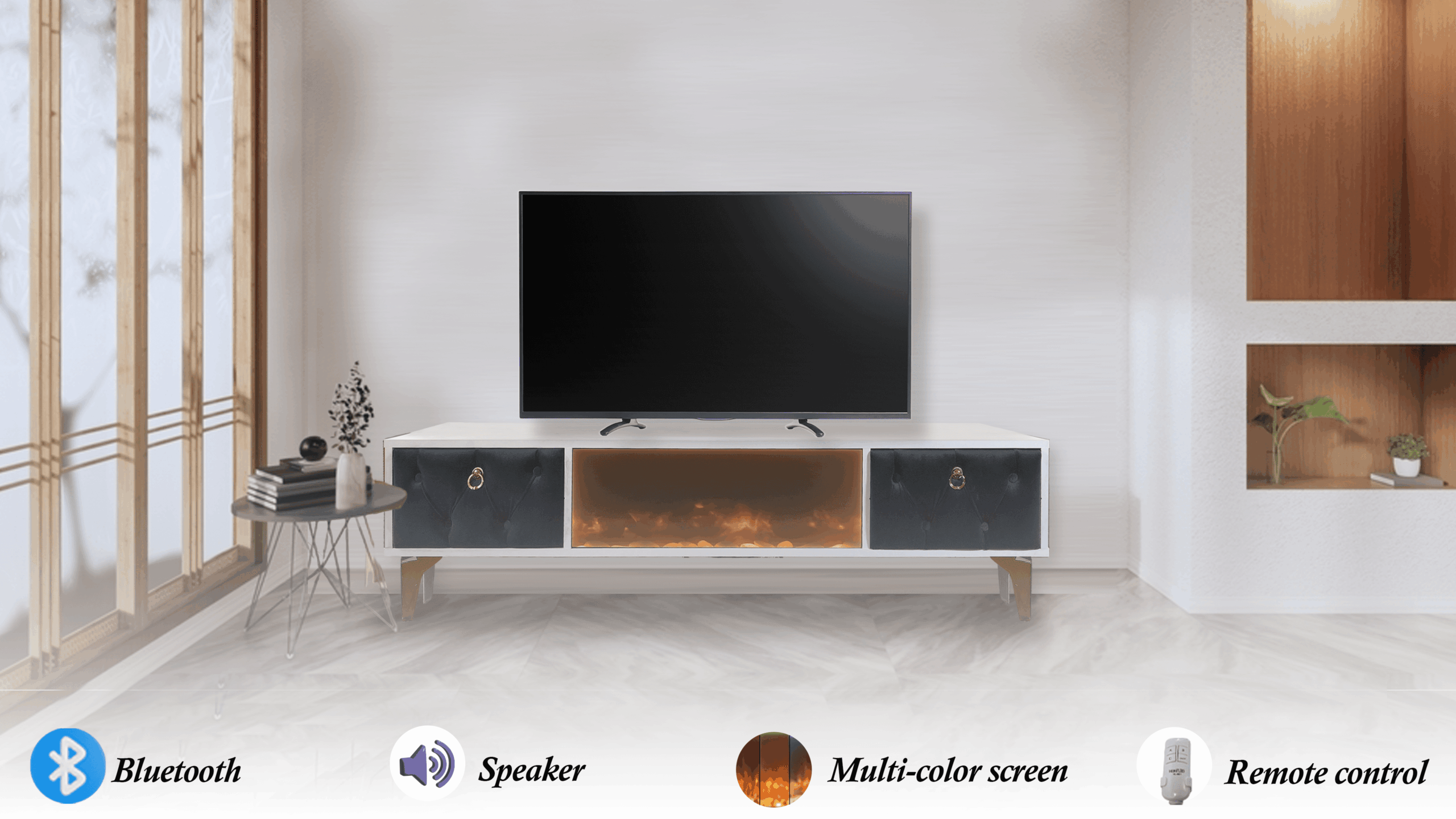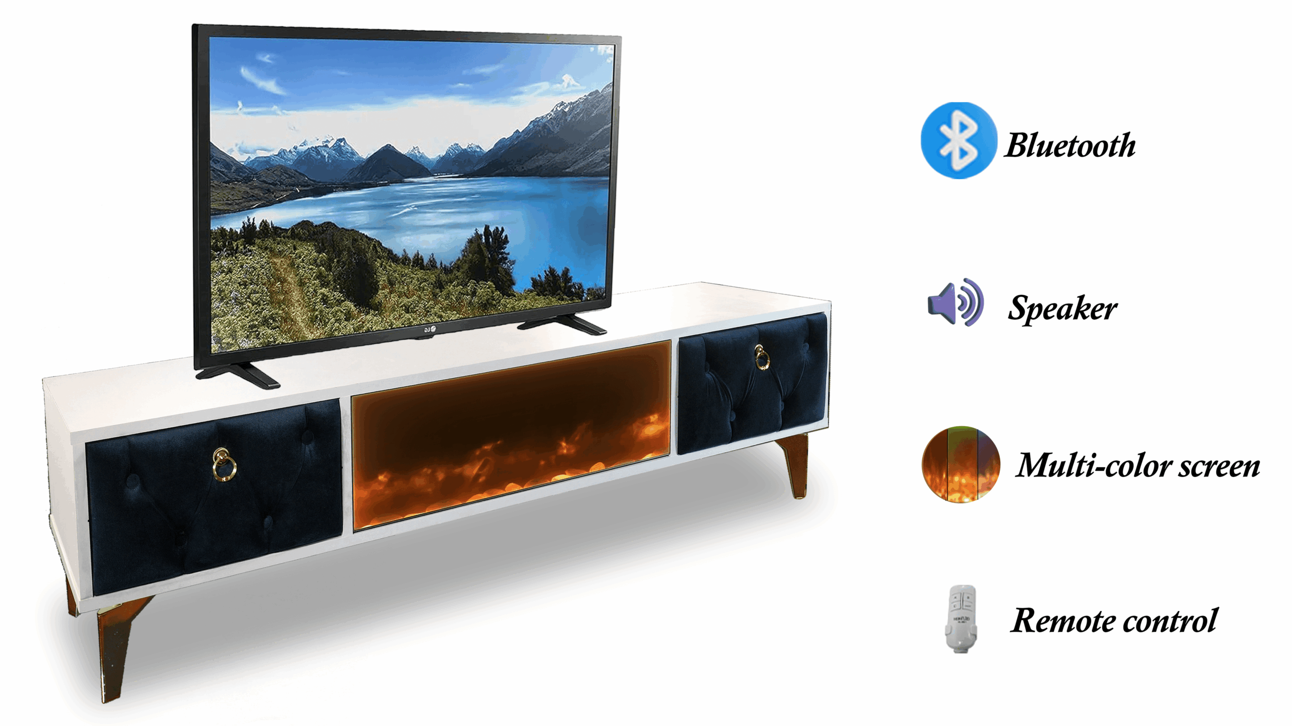 Denna tabell har många funktioner eftersom den har ett Bluetooth-system där du kan skapa en trådlös anslutning mellan bordet och mellan TV: n och även mellan mobilen eftersom bordet erbjuder en unik upplevelse när du ser eld, ved och glöd och burk Hör det brinnande ljudet och titta på det på ett trevligt sätt, så kan du alltid ändra belysningens färg genom styrenheten fäst vid bordet