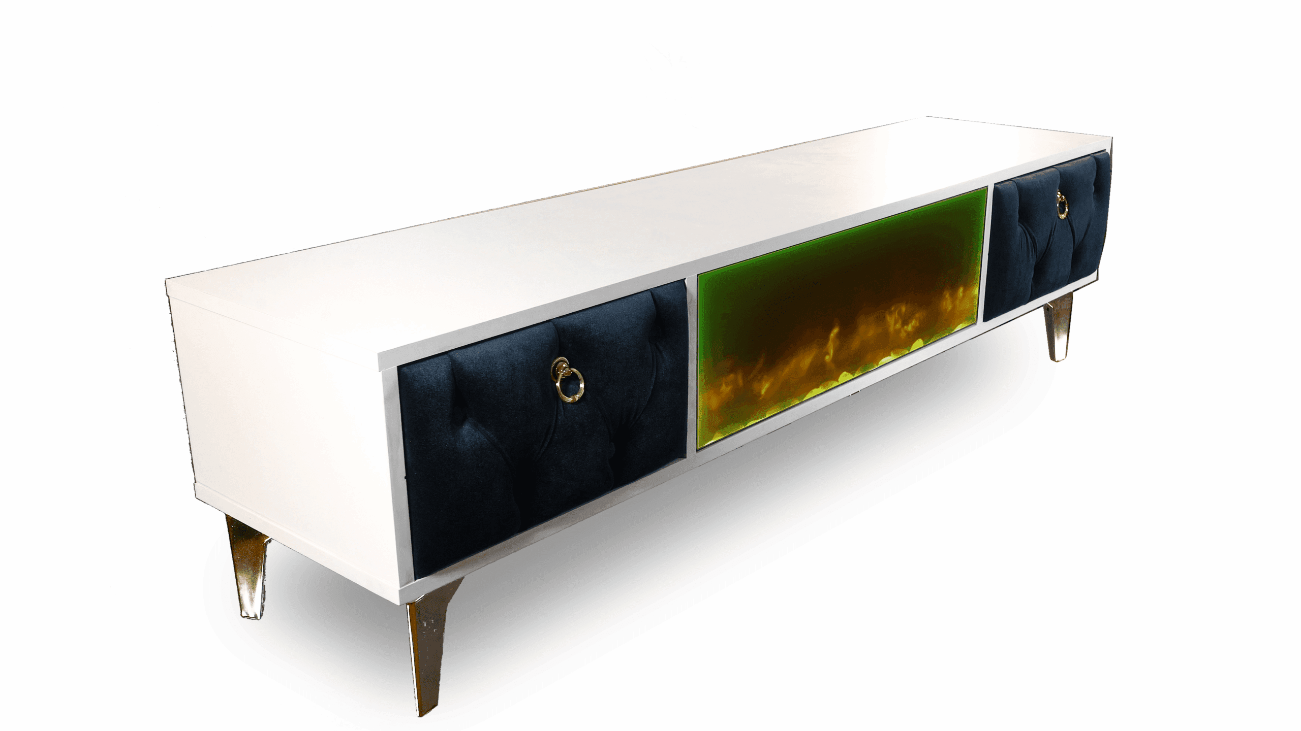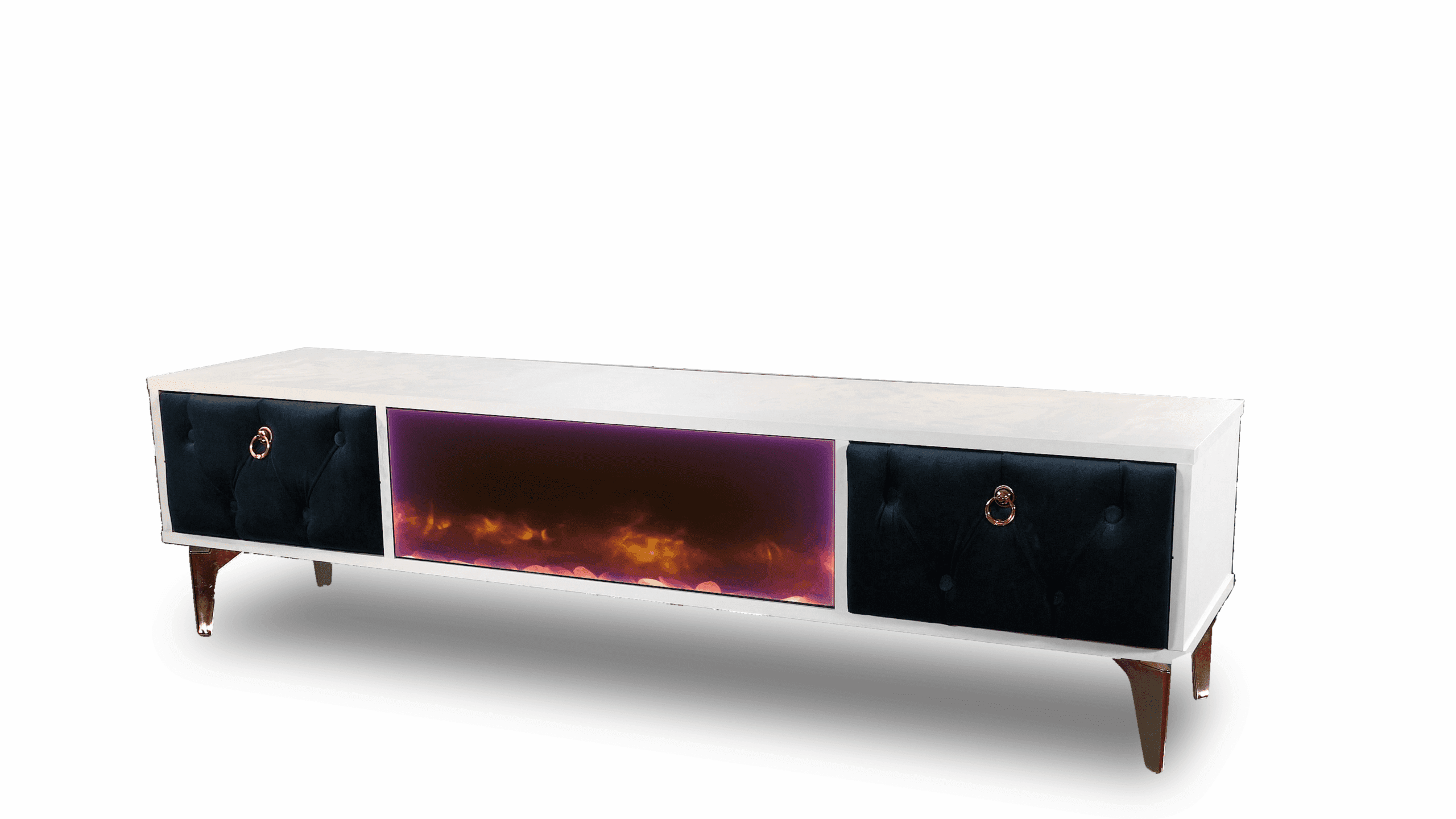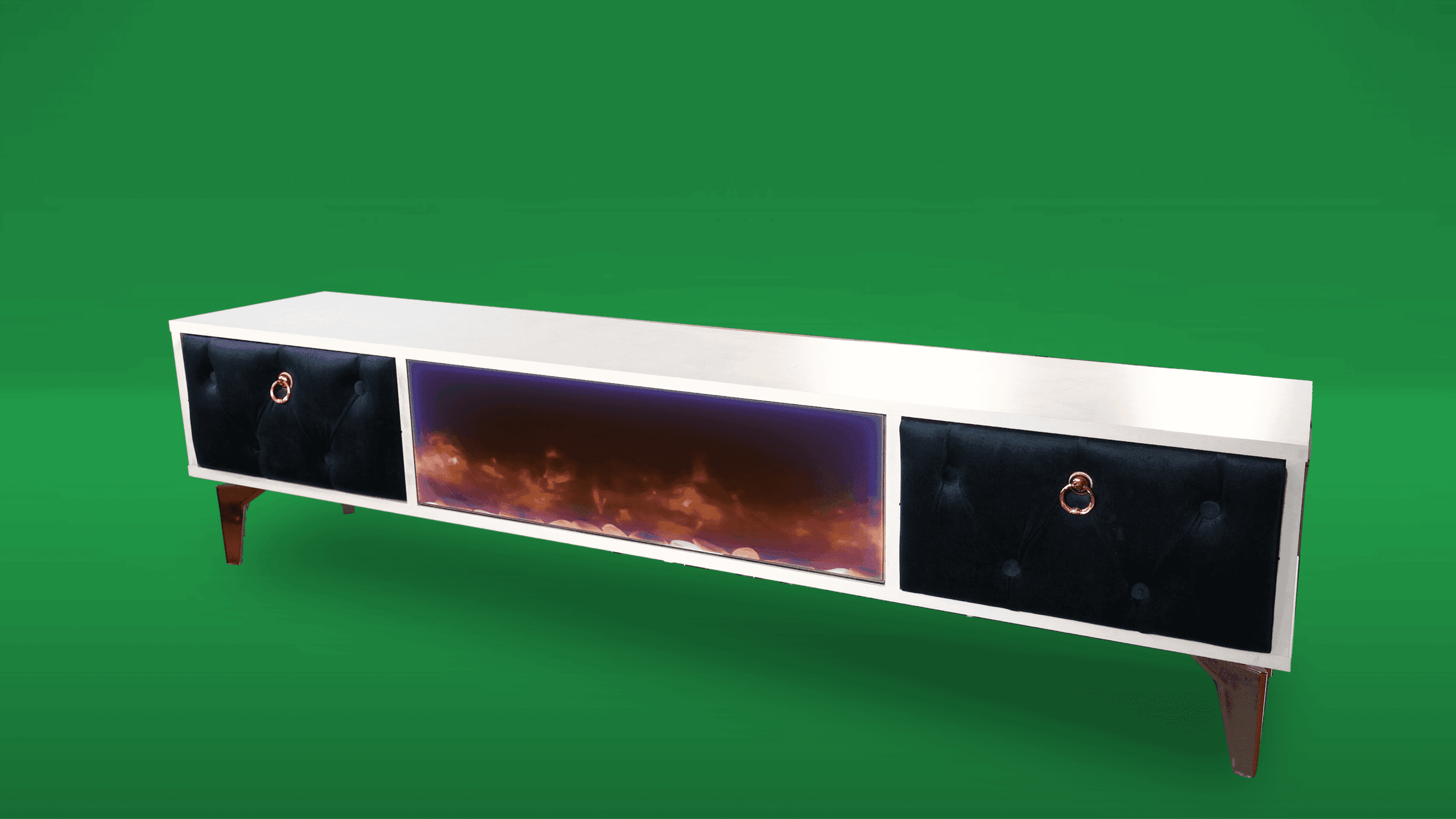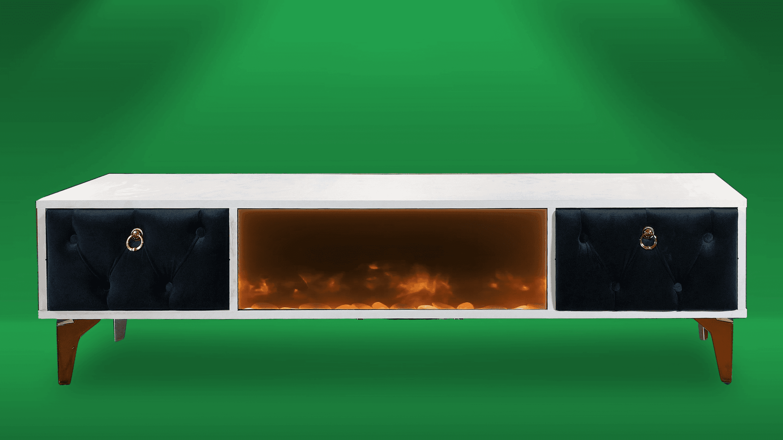Denna tabell har många funktioner eftersom den har ett Bluetooth-system där du kan skapa en trådlös anslutning mellan bordet och mellan TV: n och även mellan mobilen eftersom bordet erbjuder en unik upplevelse när du ser eld, ved och glöd och burk Hör det brinnande ljudet och titta på det på ett trevligt sätt, så kan du alltid ändra belysningens färg genom styrenheten fäst vid bordet