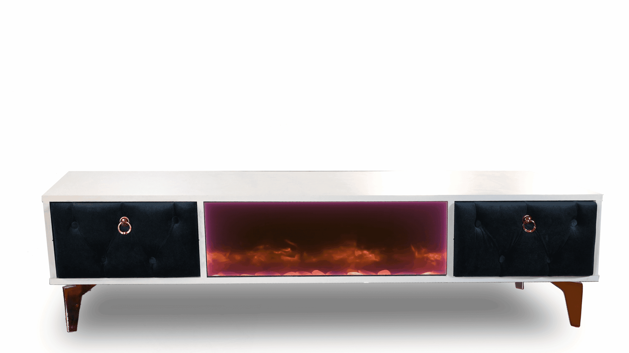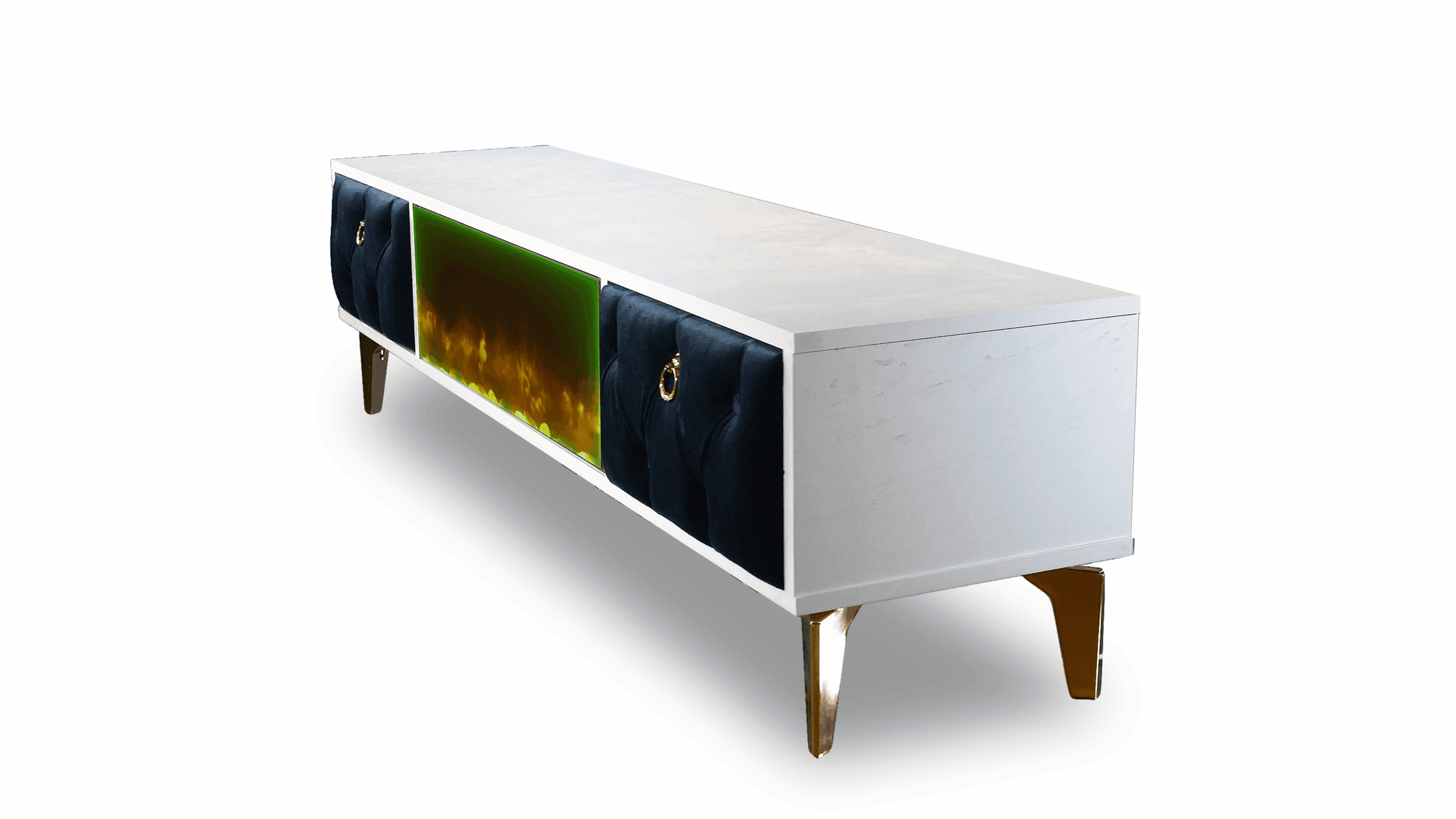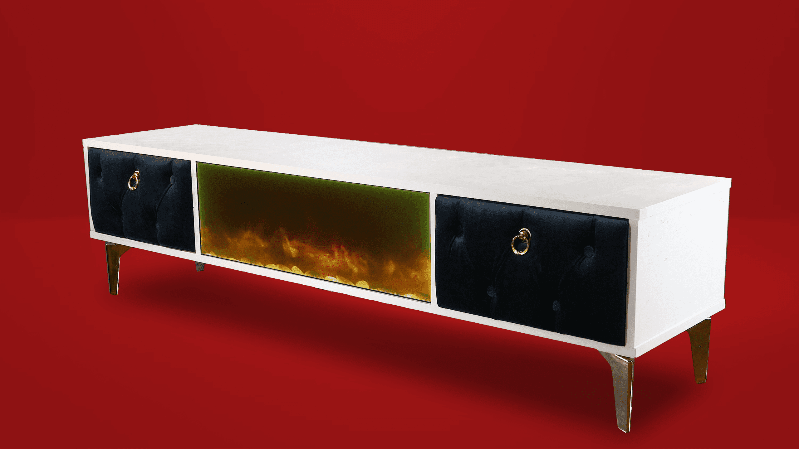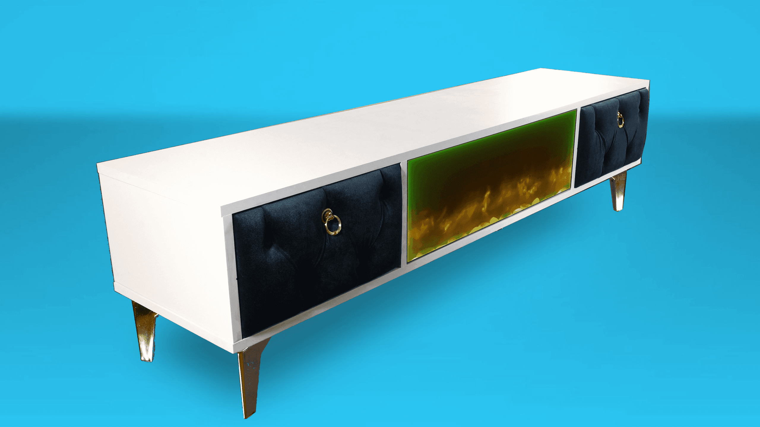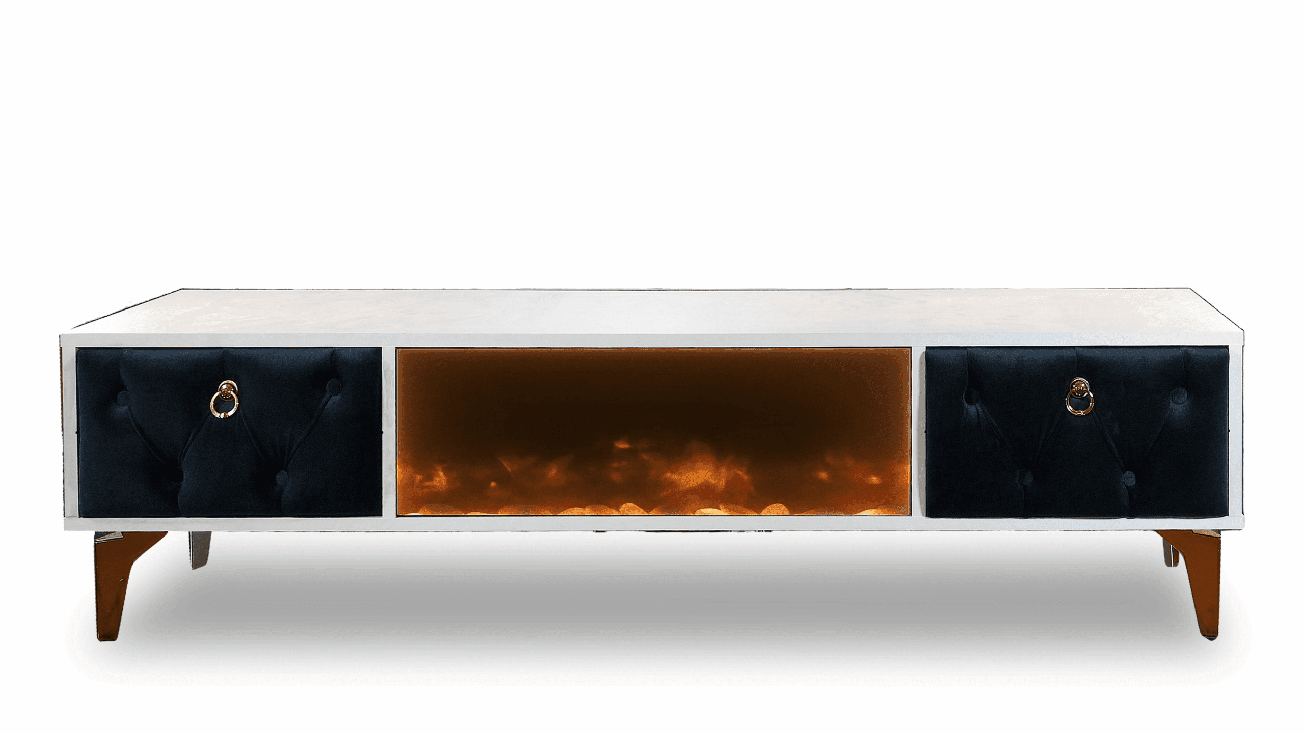 Denna tabell har många funktioner eftersom den har ett Bluetooth-system där du kan skapa en trådlös anslutning mellan bordet och mellan TV: n och även mellan mobilen eftersom bordet erbjuder en unik upplevelse när du ser eld, ved och glöd och burk Hör det brinnande ljudet och titta på det på ett trevligt sätt, så kan du alltid ändra belysningens färg genom styrenheten fäst vid bordet