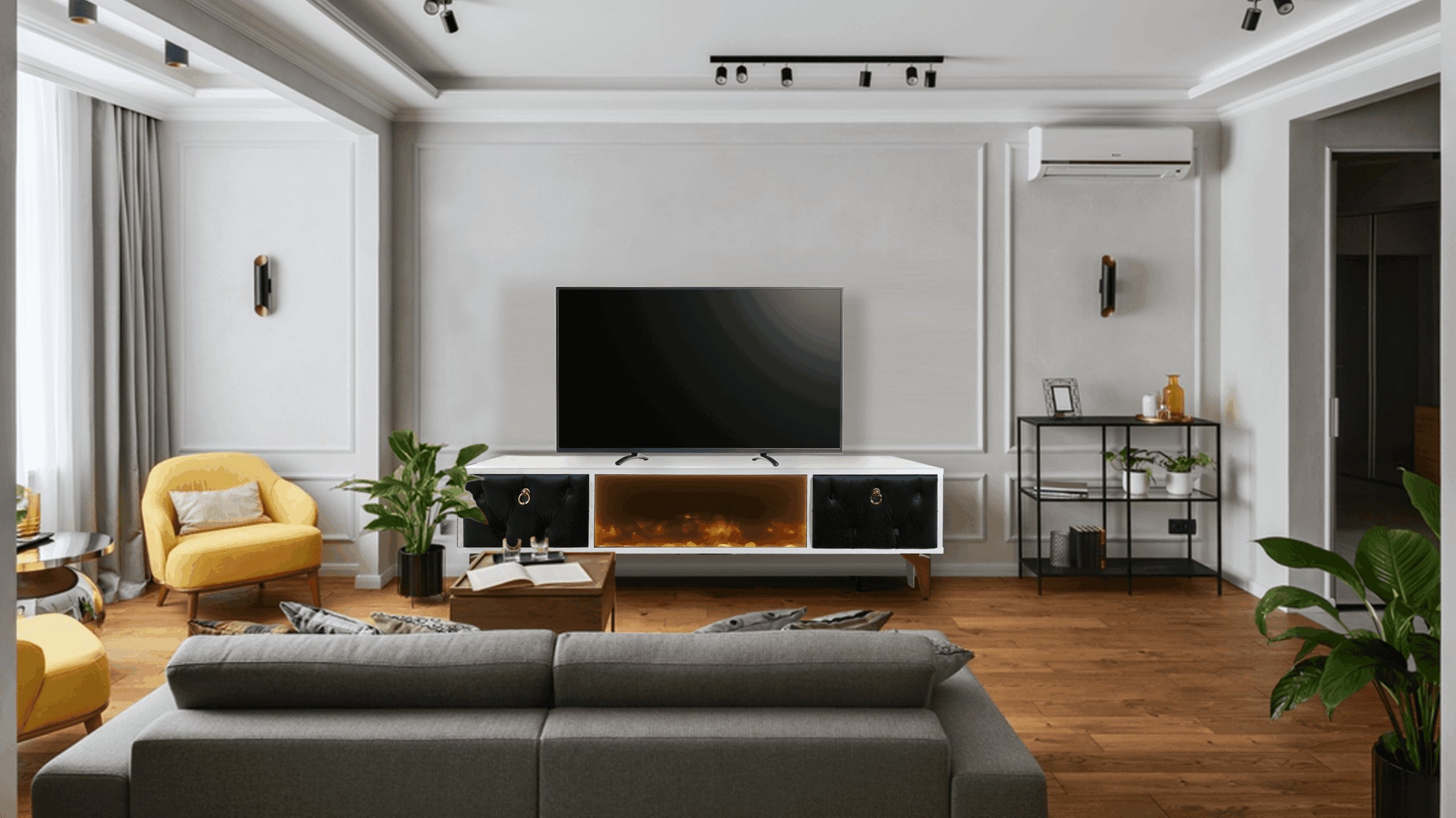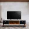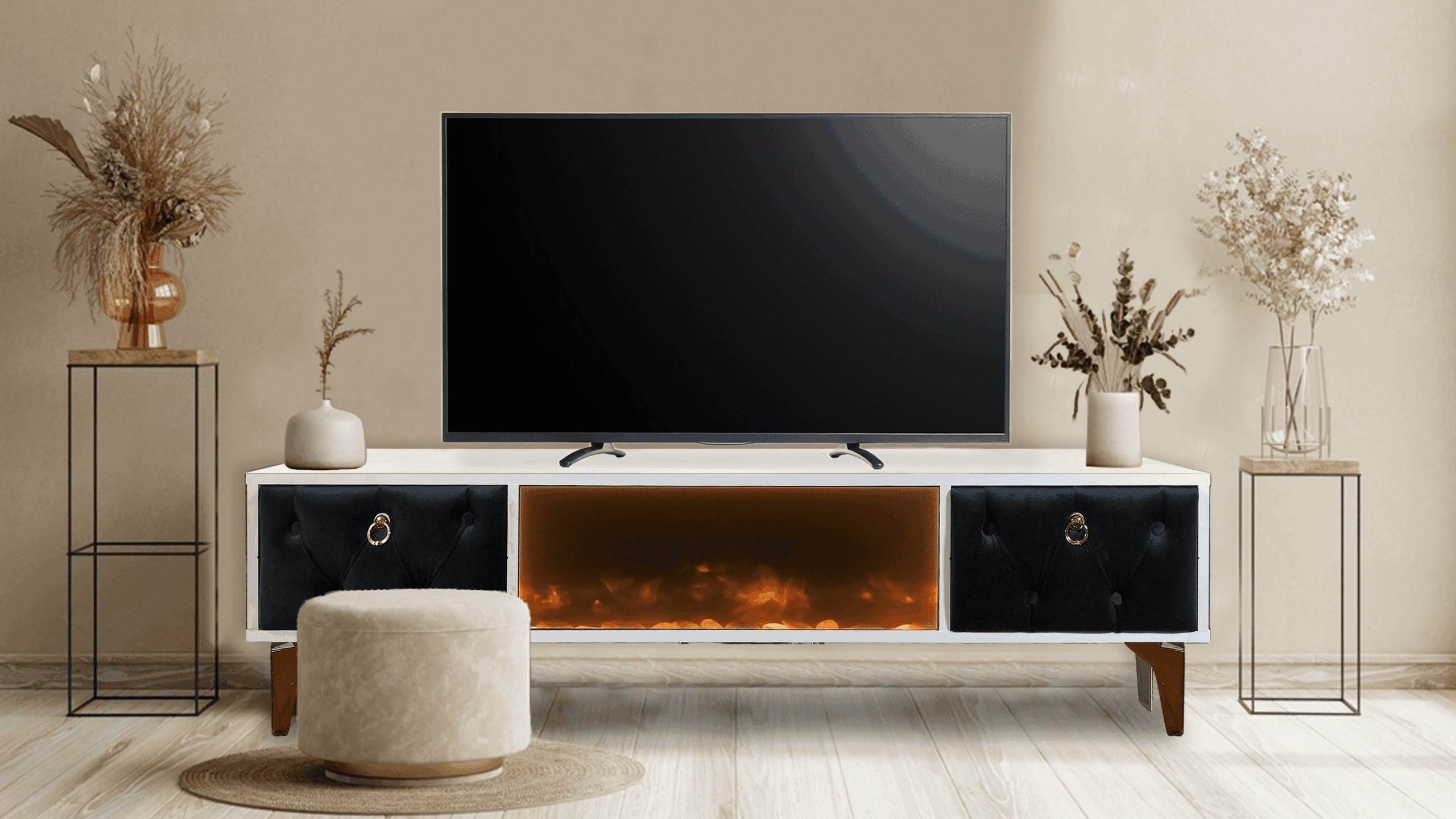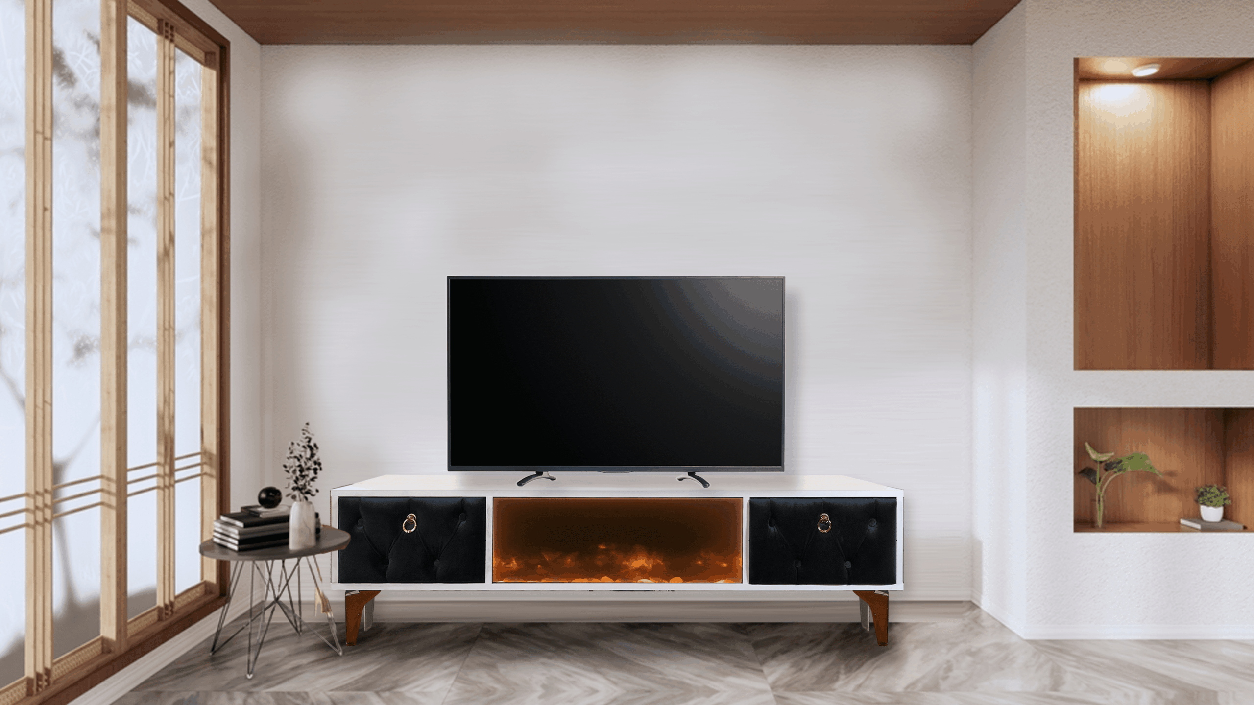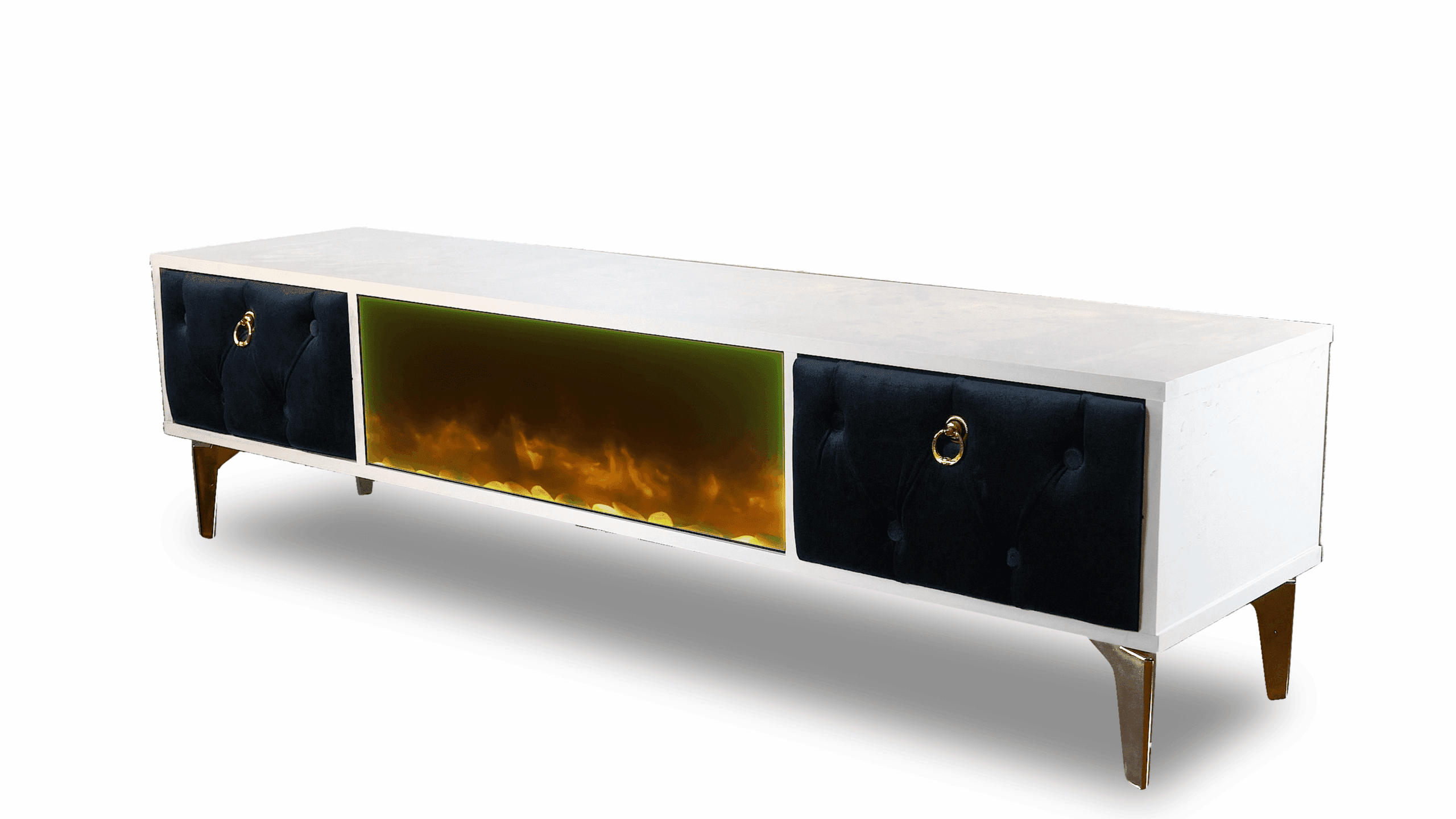 Denna tabell har många funktioner eftersom den har ett Bluetooth-system där du kan skapa en trådlös anslutning mellan bordet och mellan TV: n och även mellan mobilen eftersom bordet erbjuder en unik upplevelse när du ser eld, ved och glöd och burk Hör det brinnande ljudet och titta på det på ett trevligt sätt, så kan du alltid ändra belysningens färg genom styrenheten fäst vid bordet