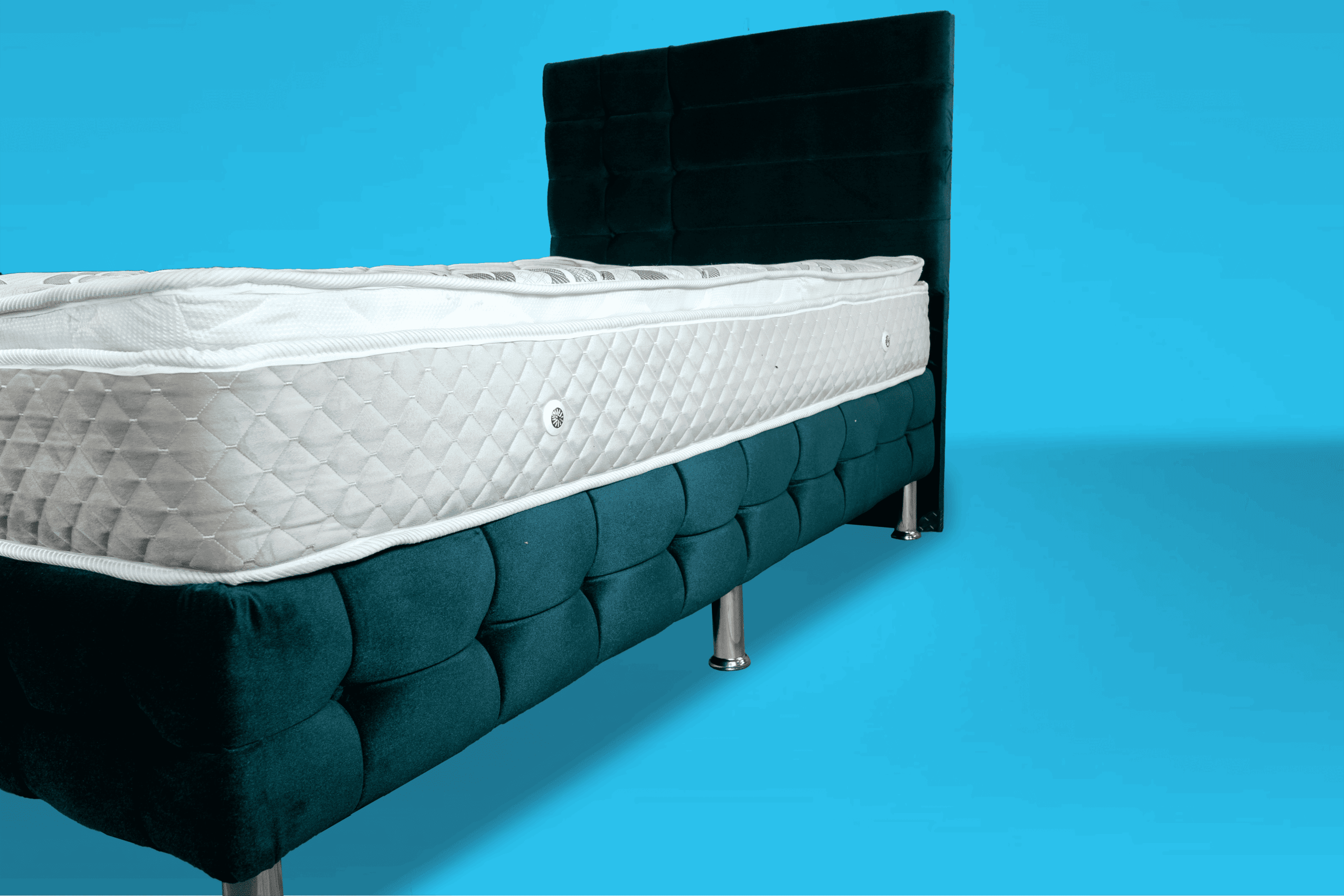 På toppen ligger en 9 cm tjock bäddmadrass i perforerat soft skum som har god andningsförmåga och följsamhet samt ger en härlig ytmjuk känsla! 12 cm ben i metall och pikerad sänggavel ingår. Sov på saken! När du köper en säng ingår vår nöjd kundgaranti där du har möjlighet att byta fasthet på sängen om du inte är nöjd. Alla sängar har dessutom 2 års garanti mot ram- och fjäderbrott.