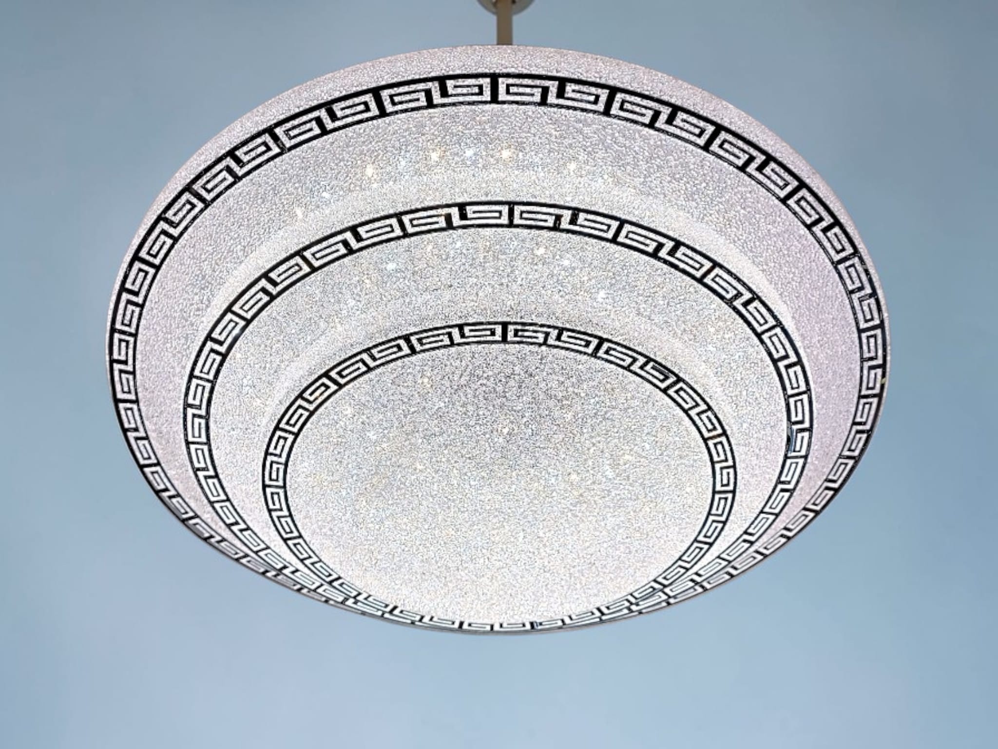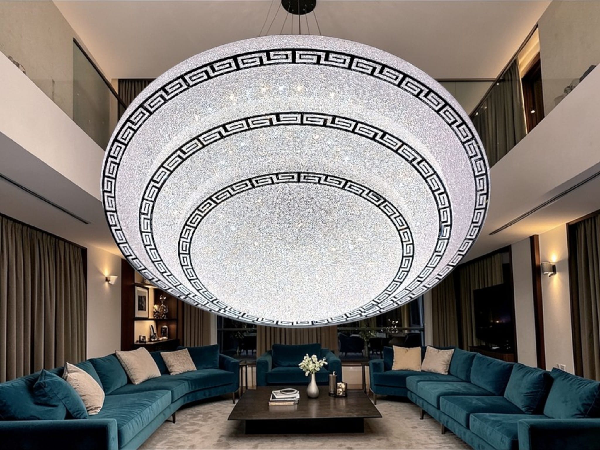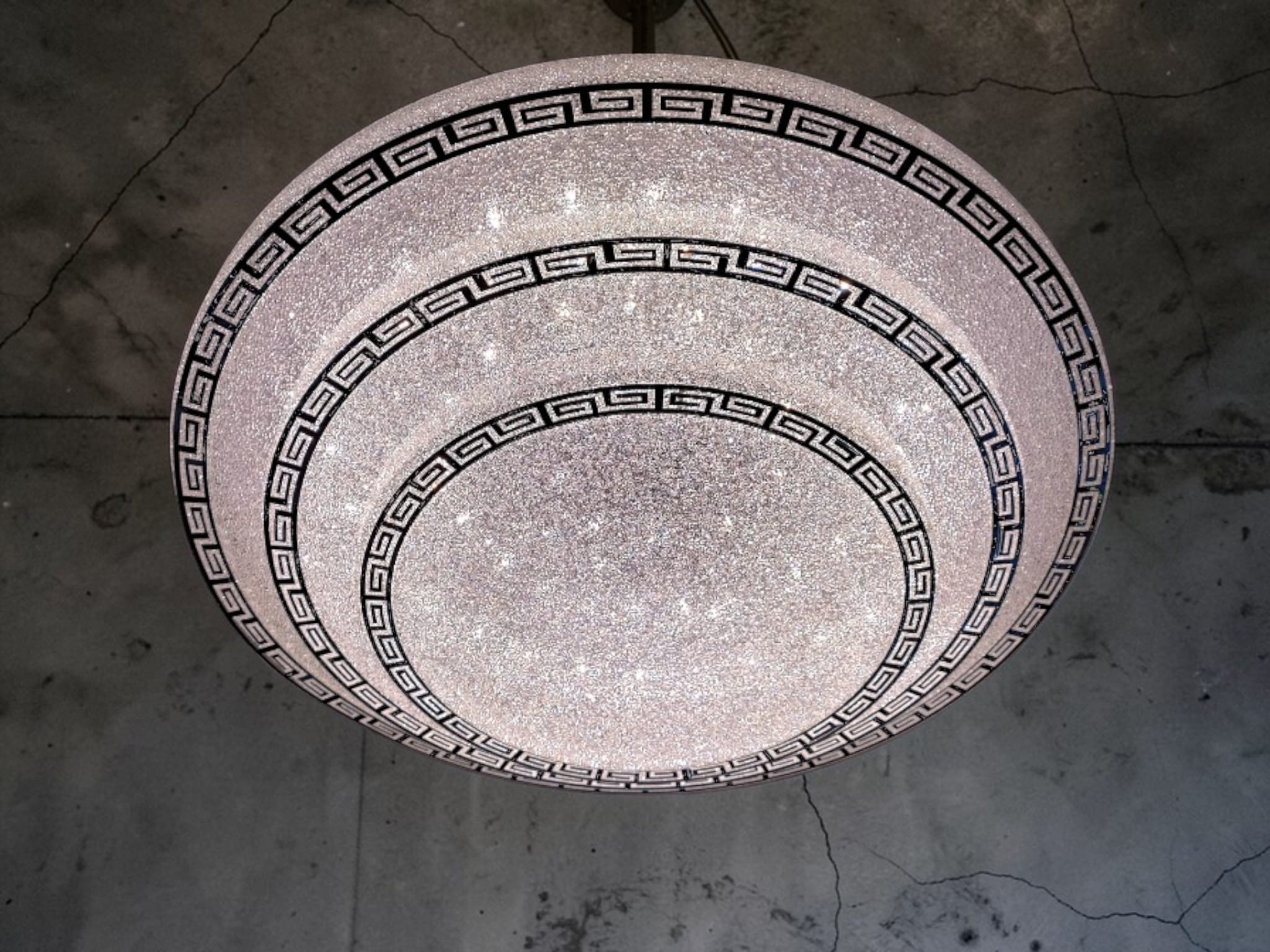 Olympia är plafonden för dig som söker en belysning med en tydlig identitet och lyxig känsla. Denna imponerande taklampa förenar det tidlösa grekiska Meander-mönstret med en modern, gnistrande ”Stardust”-yta. Med sin tredelade, tiered design skapar den ett magnifikt djup i taket och blir ett omedelbart samtalsämne i hemmet.