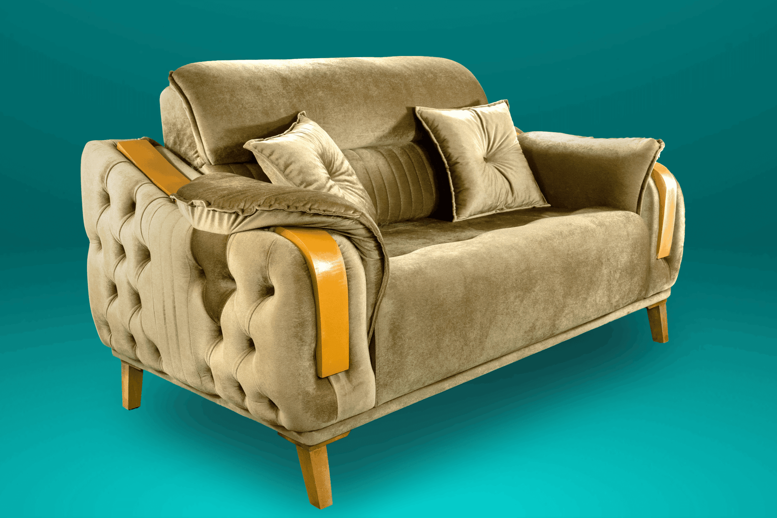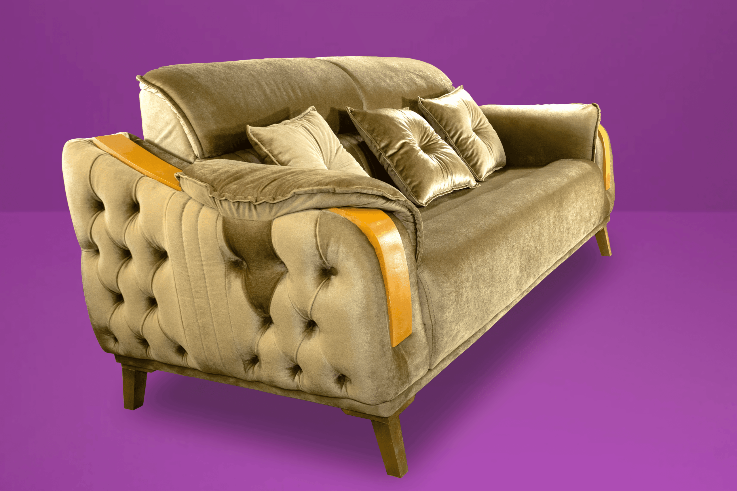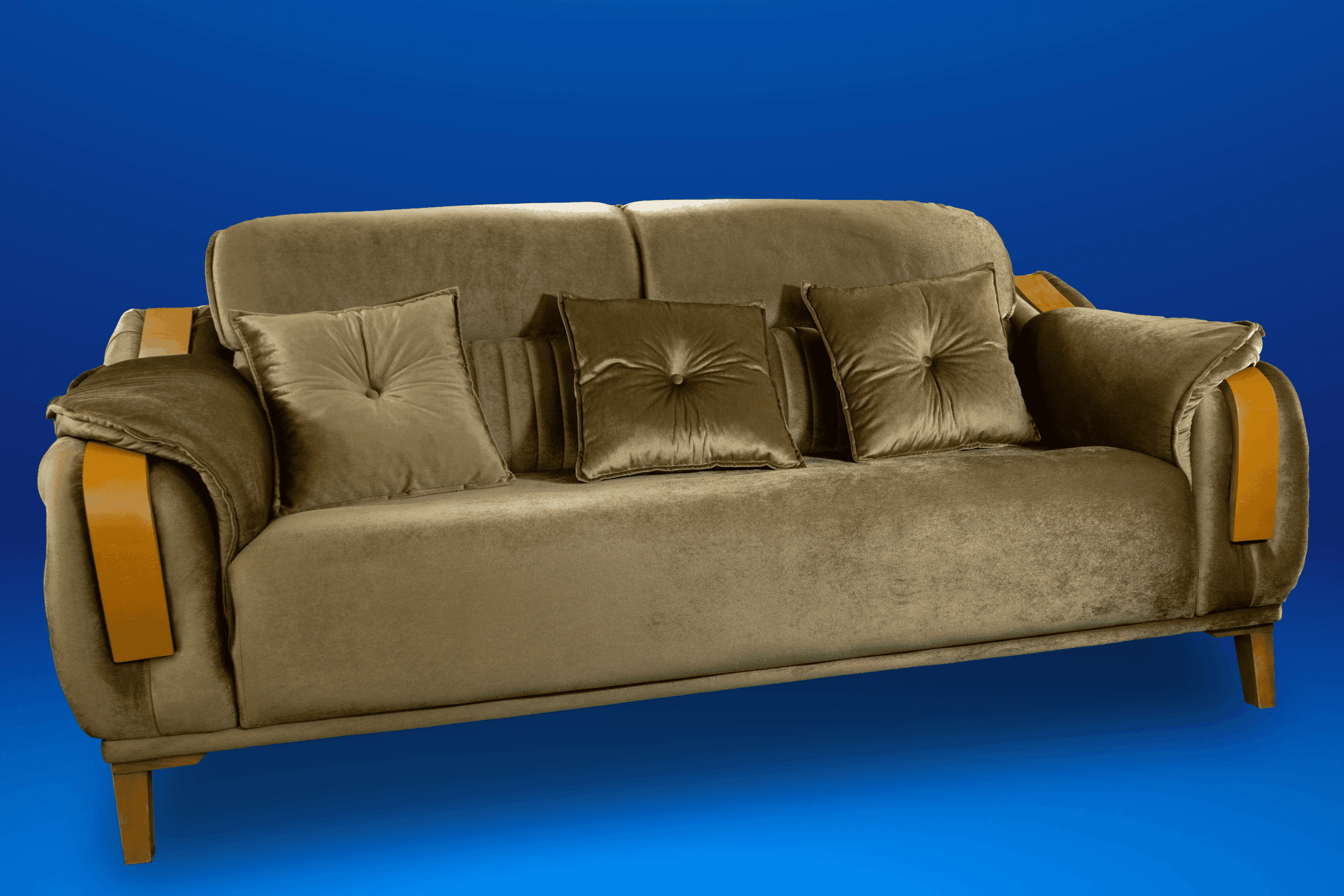 Dessutom ger handsniderat trä en underbar touch till sofforna.