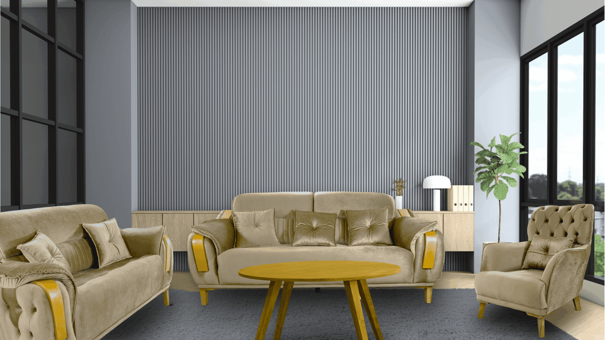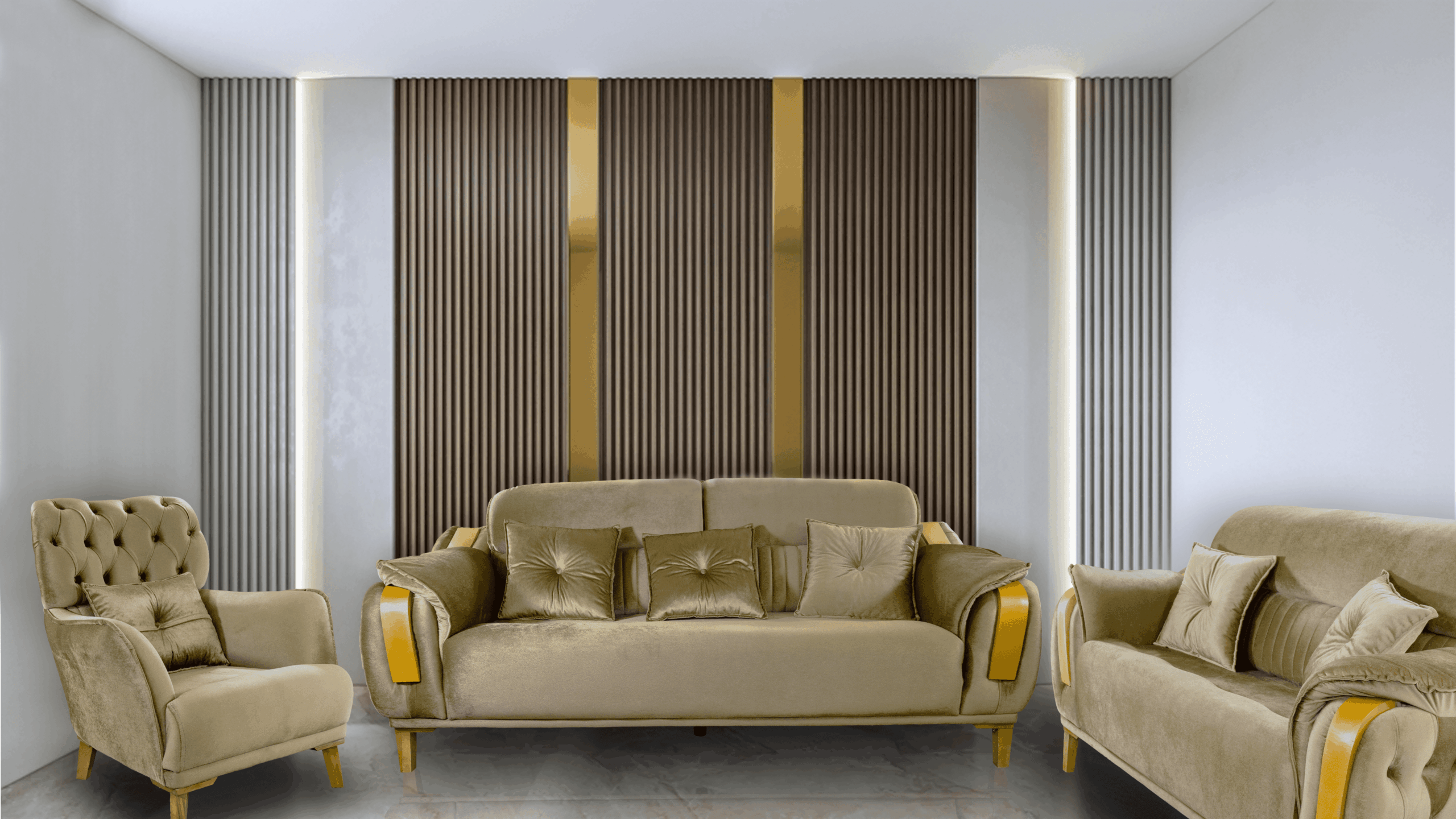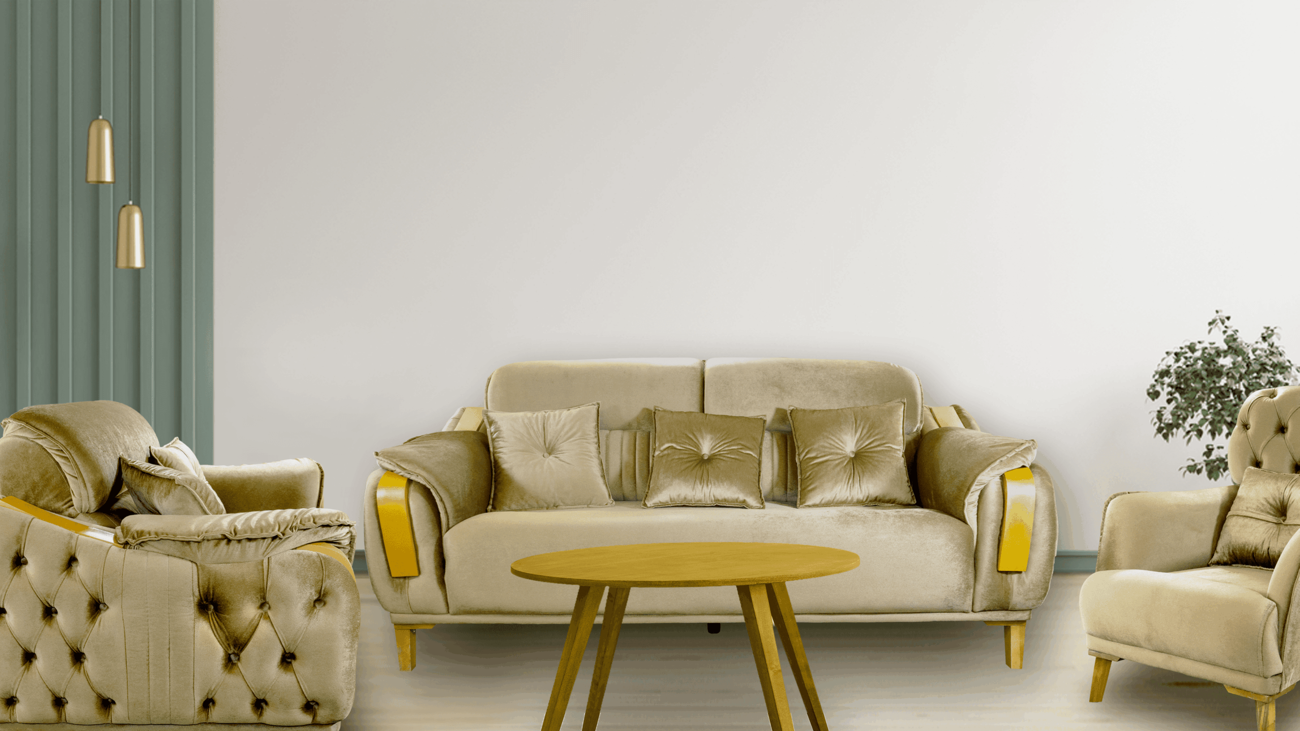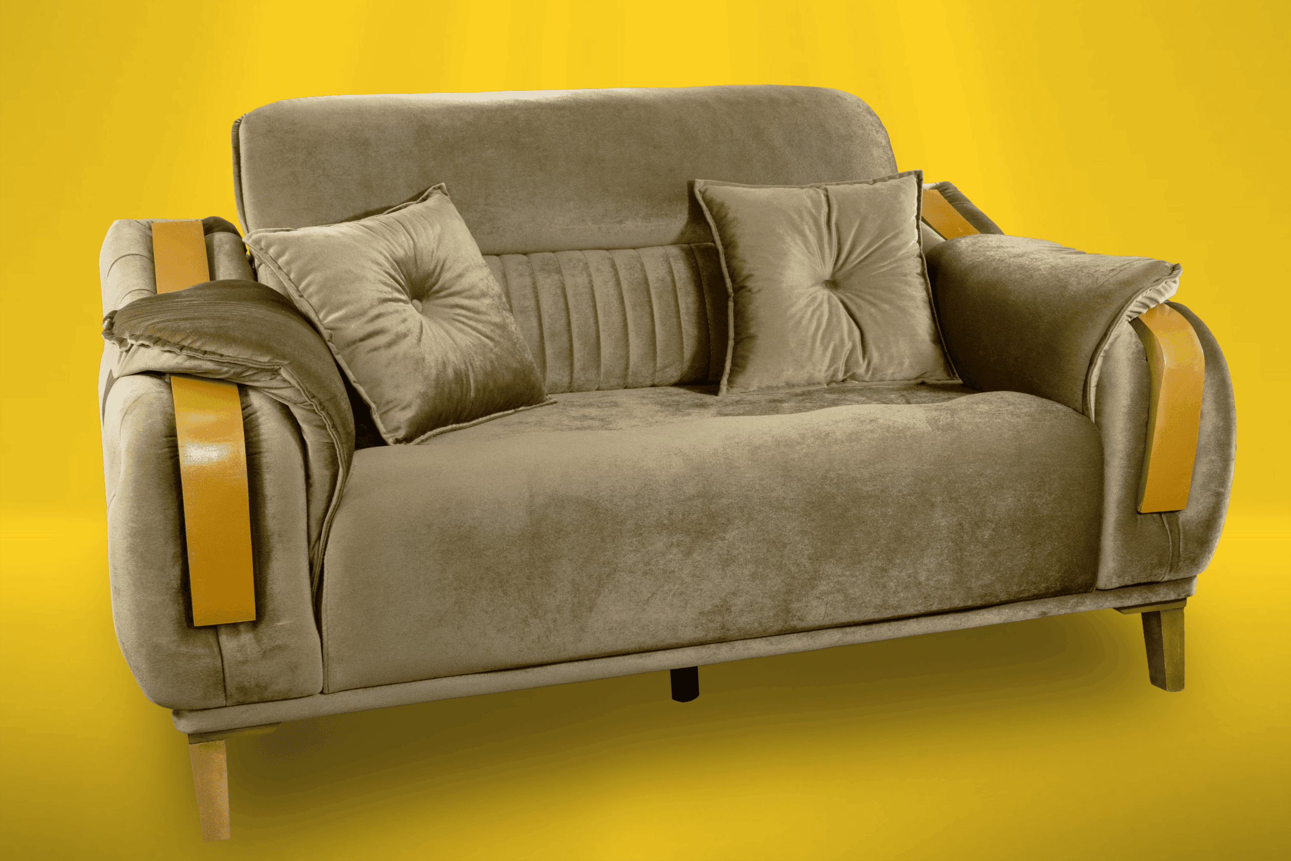 Dessutom ger handsniderat trä en underbar touch till sofforna.