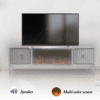 Denna tabell har många funktioner eftersom den har ett Bluetooth-system där du kan skapa en trådlös anslutning mellan bordet och mellan TV: n och även mellan mobilen eftersom bordet erbjuder en unik upplevelse när du ser eld, ved och glöd och burk Hör det brinnande ljudet och titta på det på ett trevligt sätt, så kan du alltid ändra belysningens färg genom styrenheten fäst vid bordet