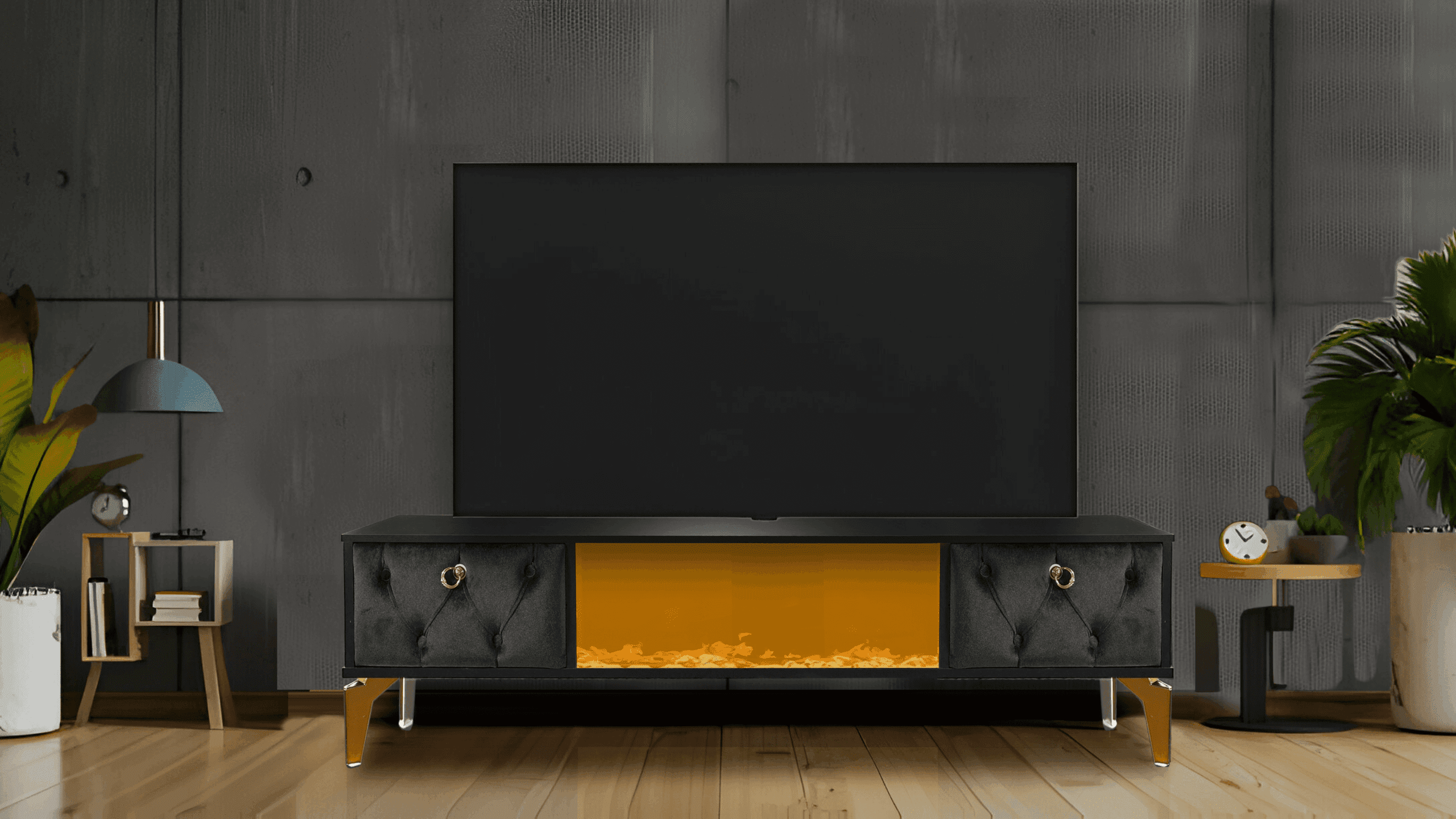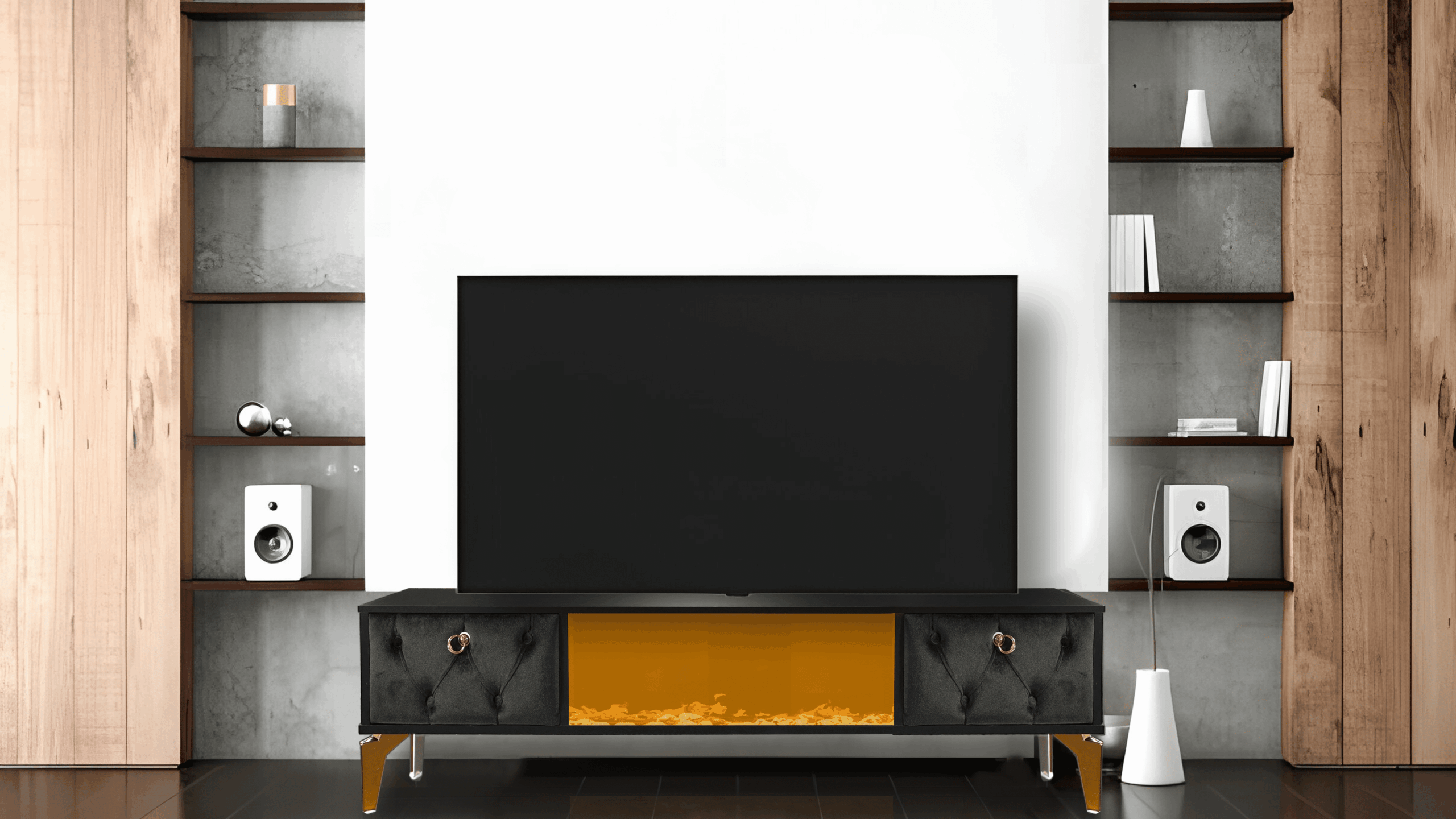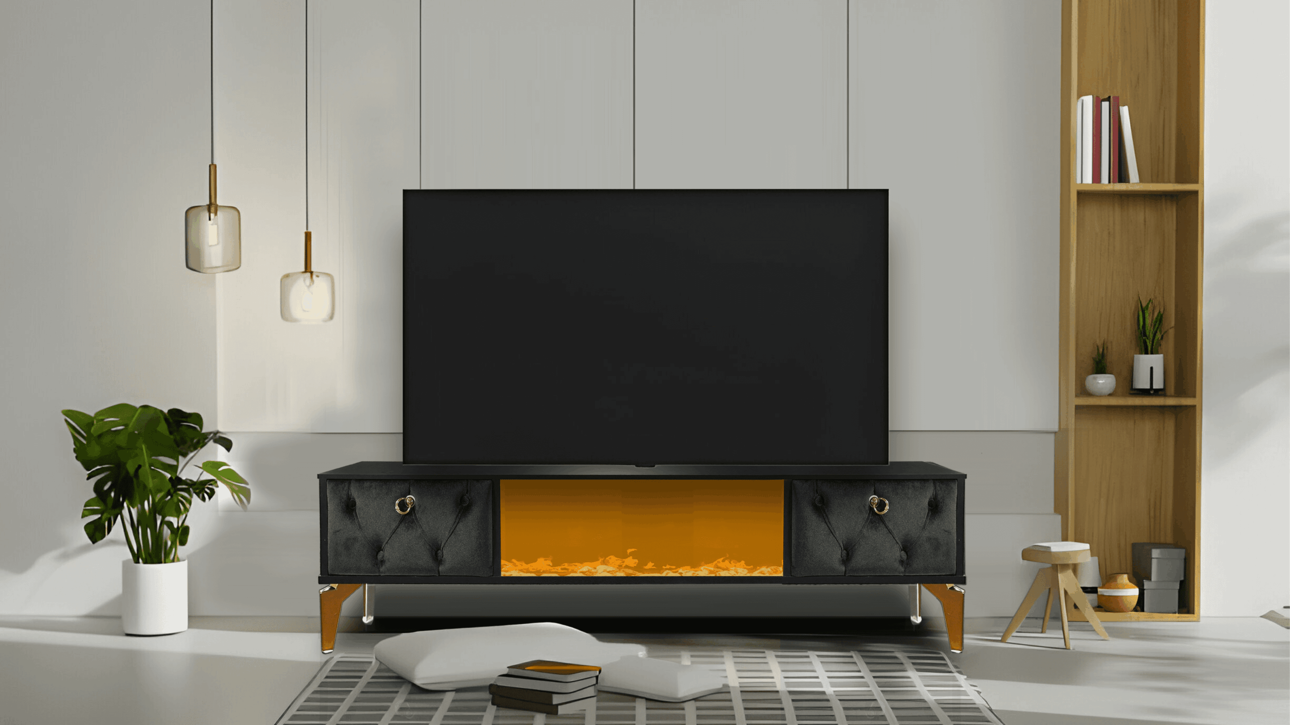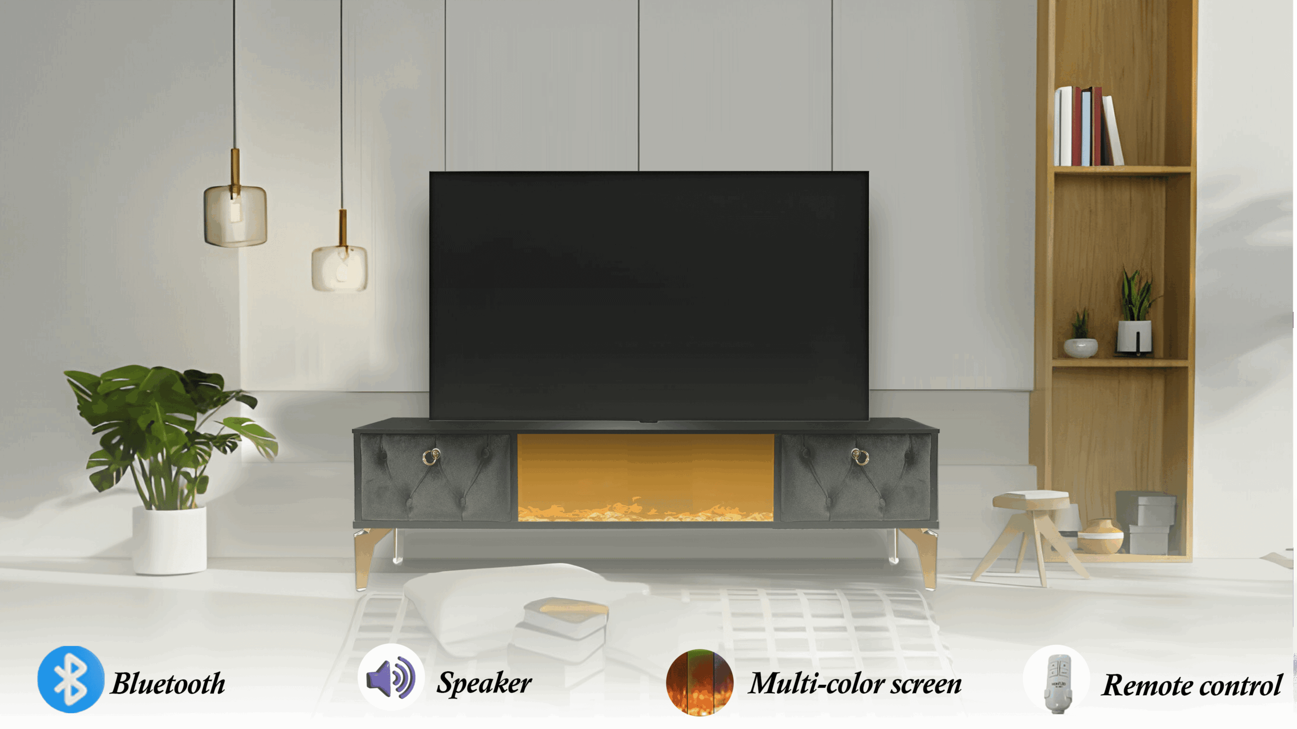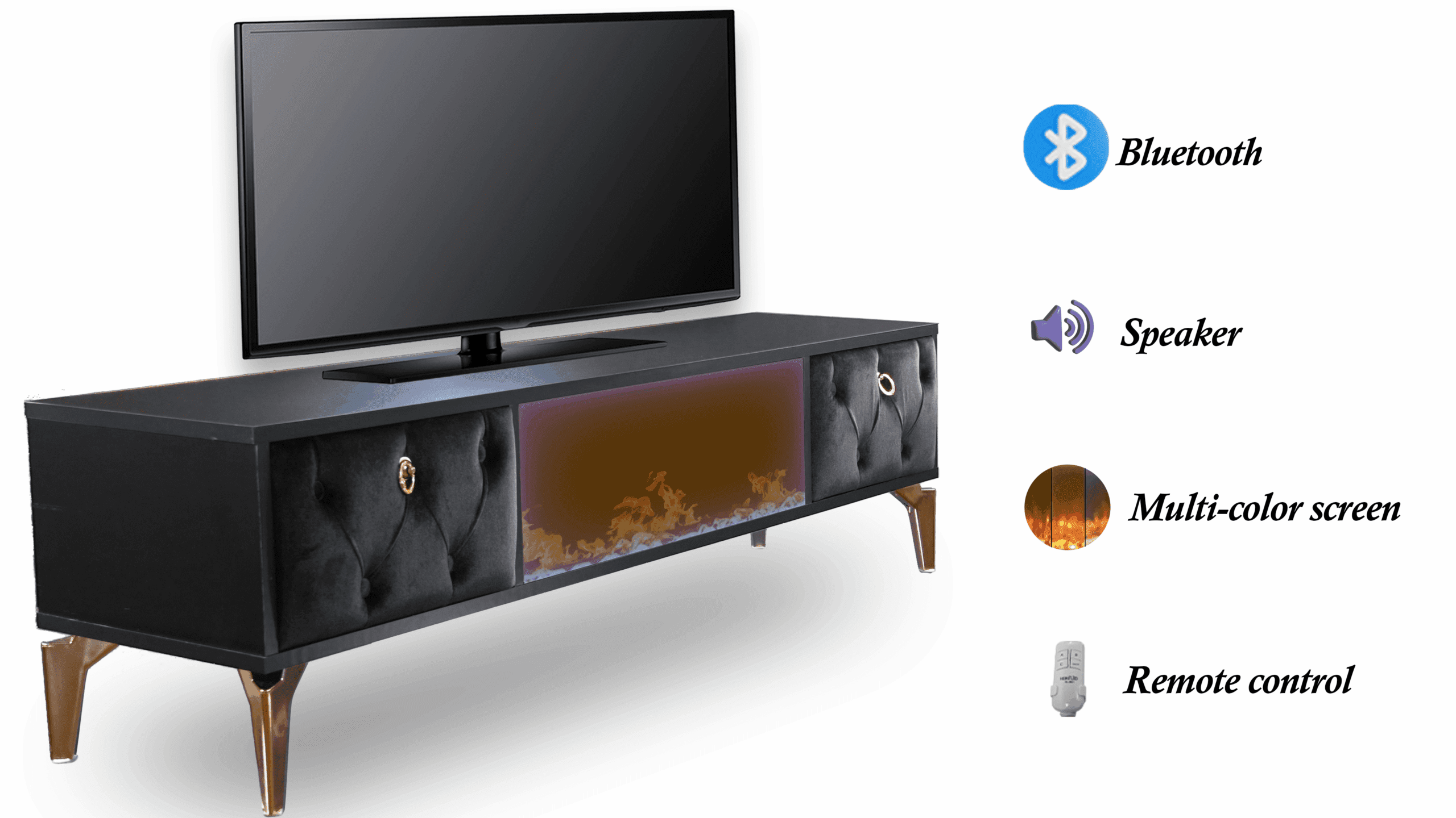 Denna tabell har många funktioner eftersom den har ett Bluetooth-system där du kan skapa en trådlös anslutning mellan bordet och mellan TV: n och även mellan mobilen eftersom bordet erbjuder en unik upplevelse när du ser eld, ved och glöd och burk Hör det brinnande ljudet och titta på det på ett trevligt sätt, så kan du alltid ändra belysningens färg genom styrenheten fäst vid bordet
