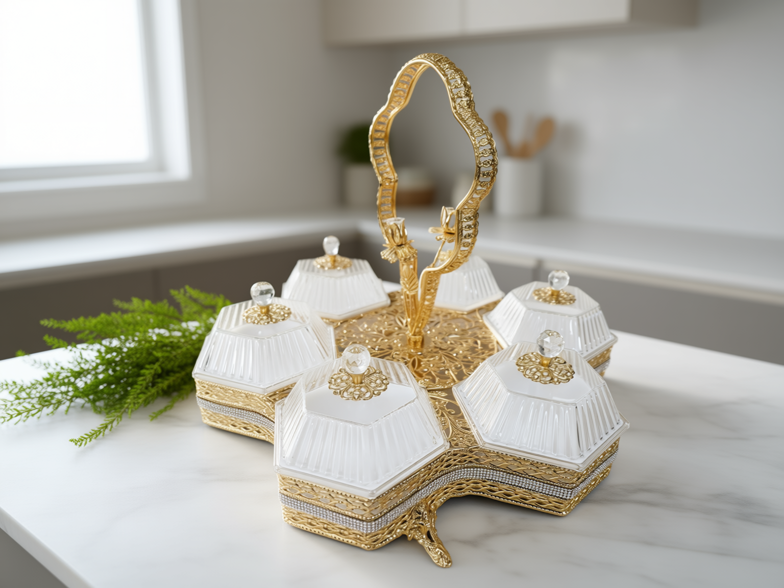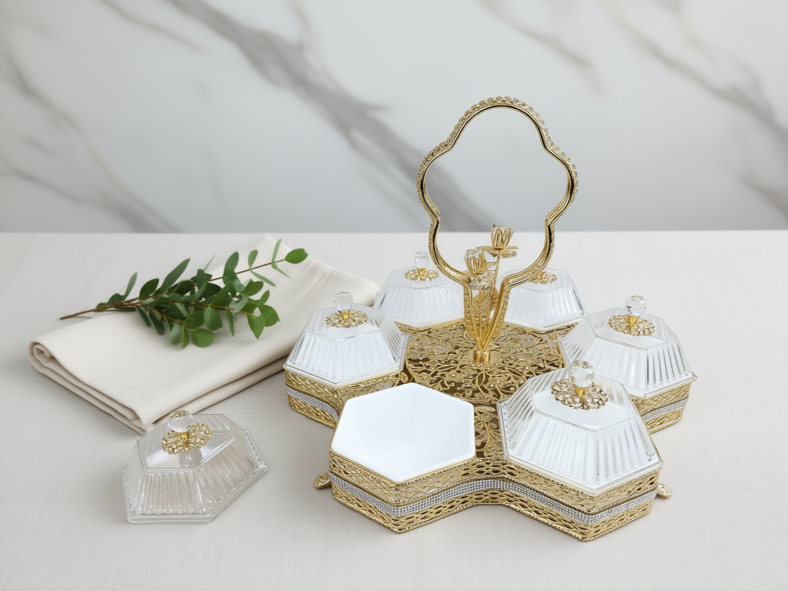 Ett glimmande blickfång som garanterat fångar allas uppmärksamhet och lyfter varje fika eller middag till en ny nivå av pampig elegans!