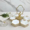 Funktion: Sex individuella asymmetriska skålar med lock för servering av snacks, praliner, desserter eller olika tillbehör vid middagsbjudningen, eller som ett lyxigt smyckesställ.
