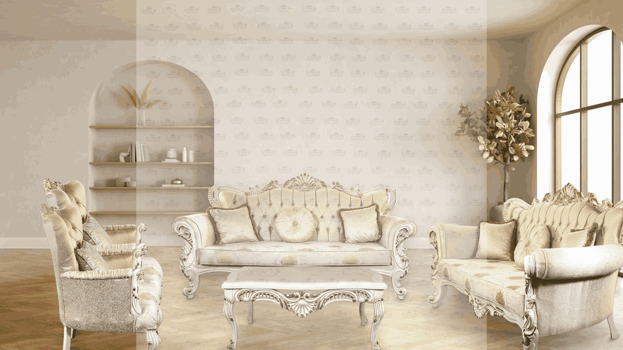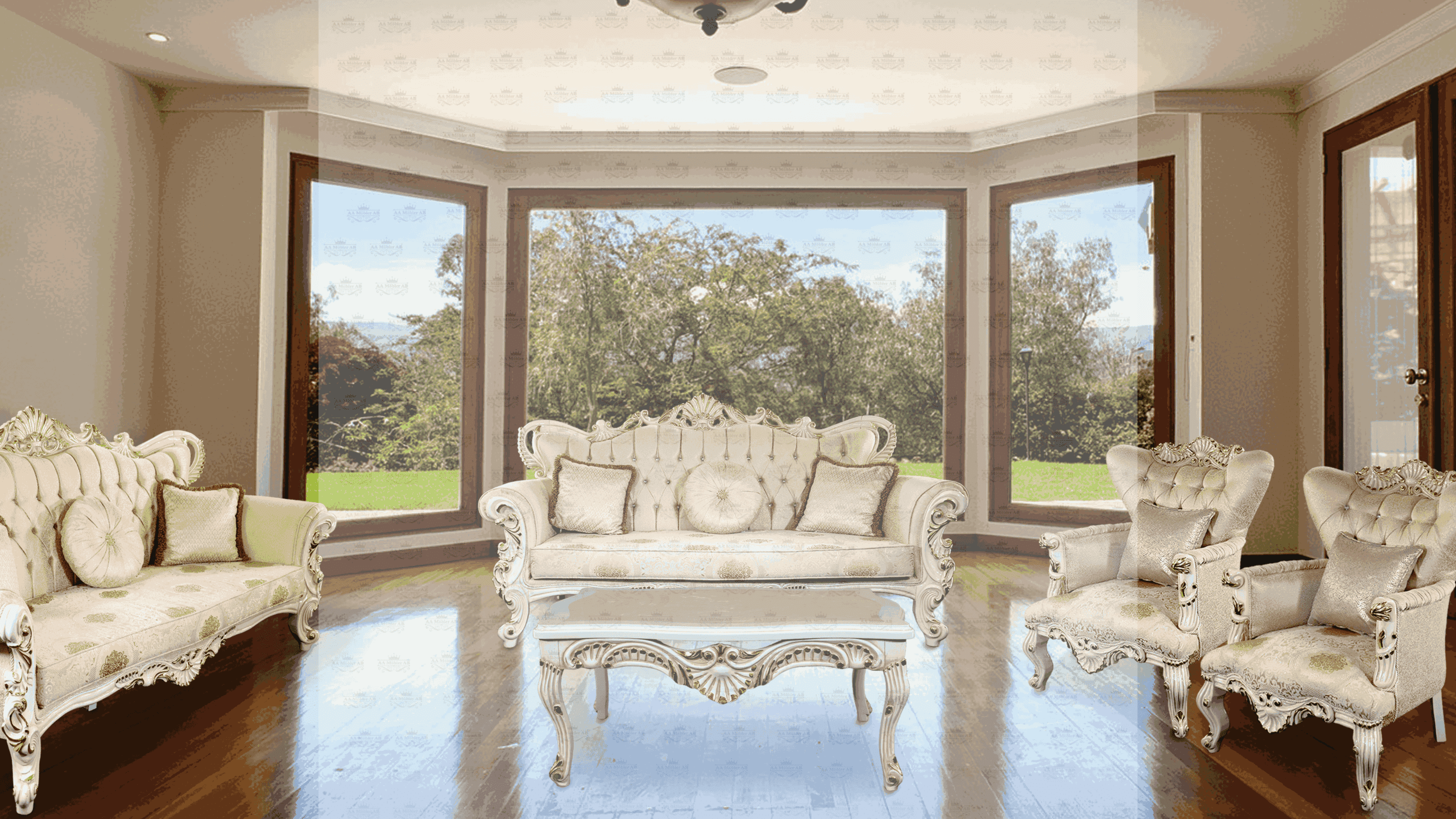 Dessutom ger handsniderat trä en underbar touch till sofforna.