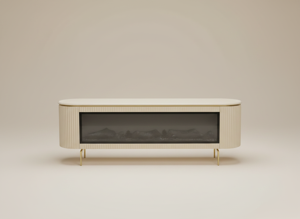 Stavanger TV-bänk i beige är det perfekta valet för dig som vill skapa en varm, mjuk och inbjudande atmosfär i vardagsrummet. Med sin eleganta ribbade front, rundade hörn och subtila gulddetaljer förenar den tidlös skandinavisk estetik med innovativ funktionalitet.