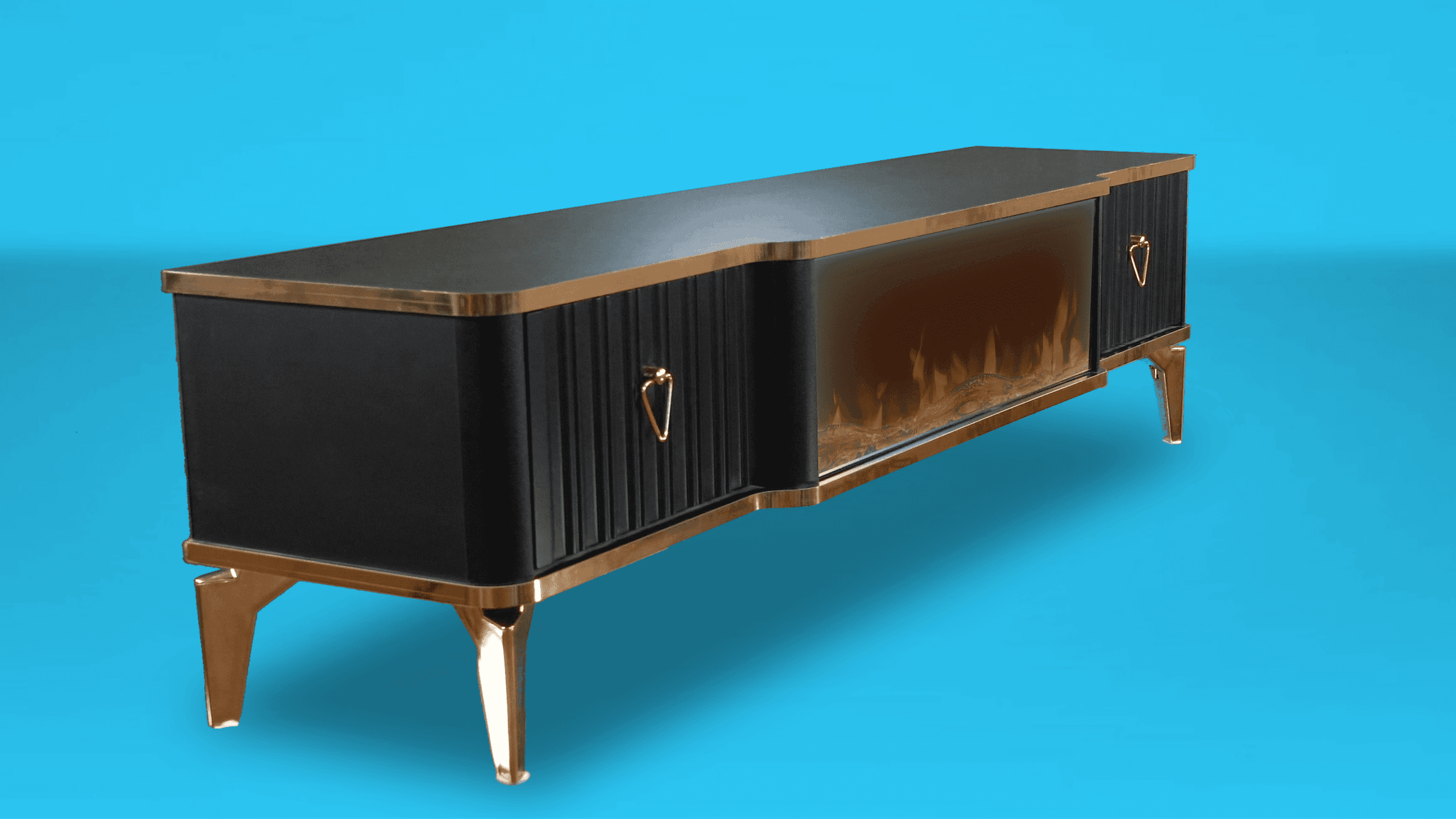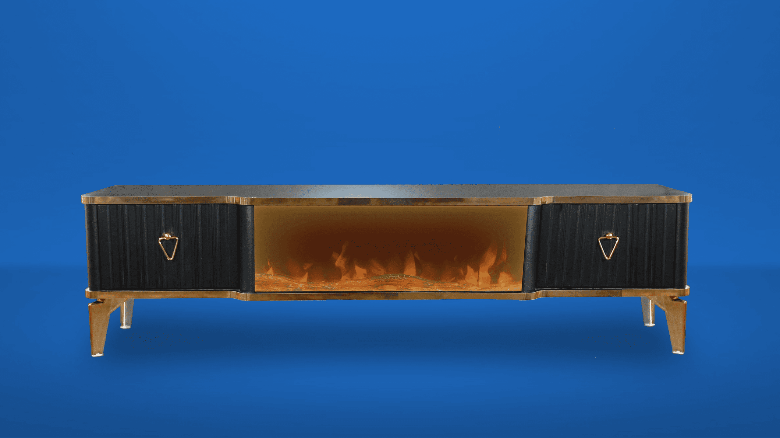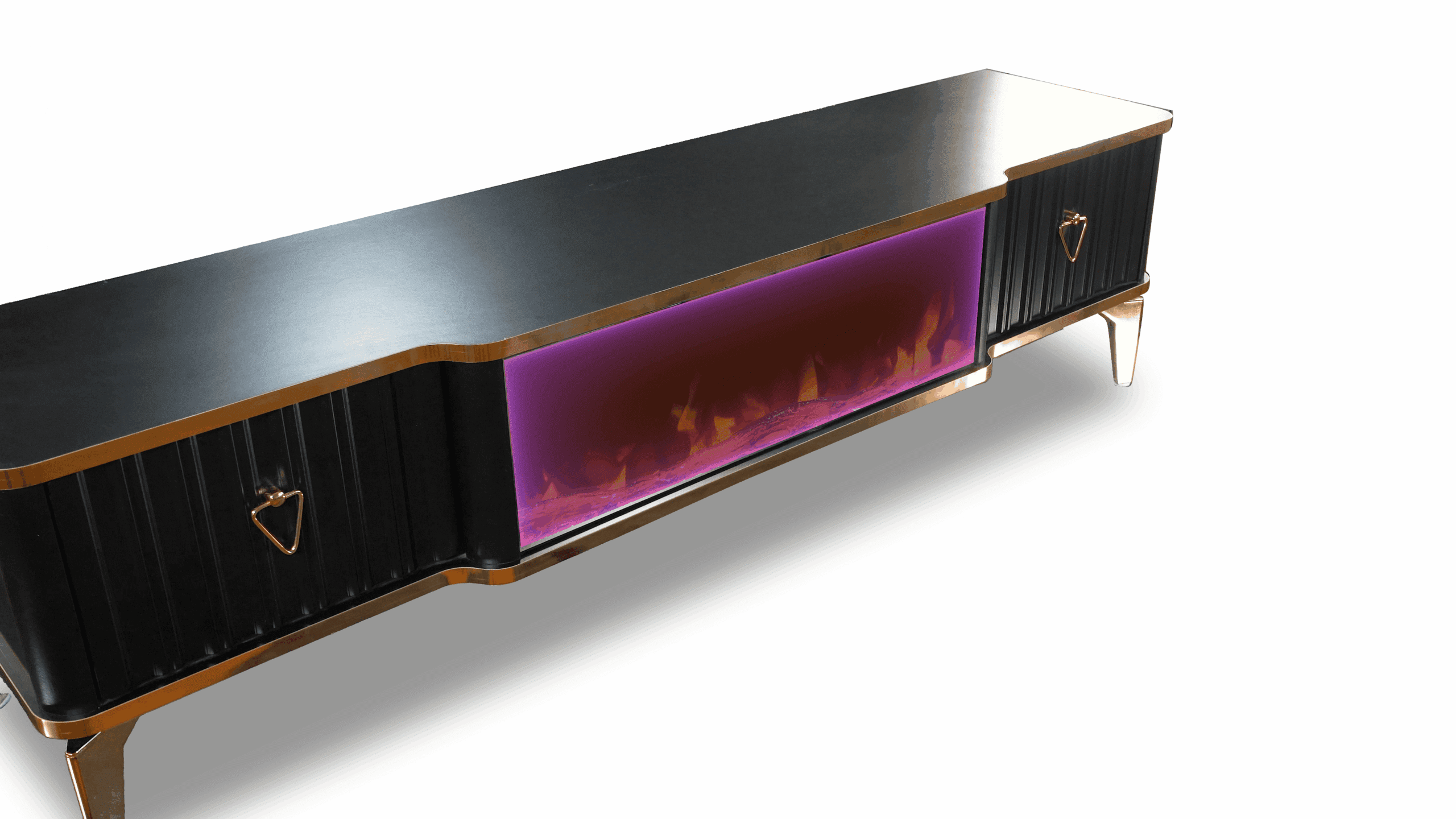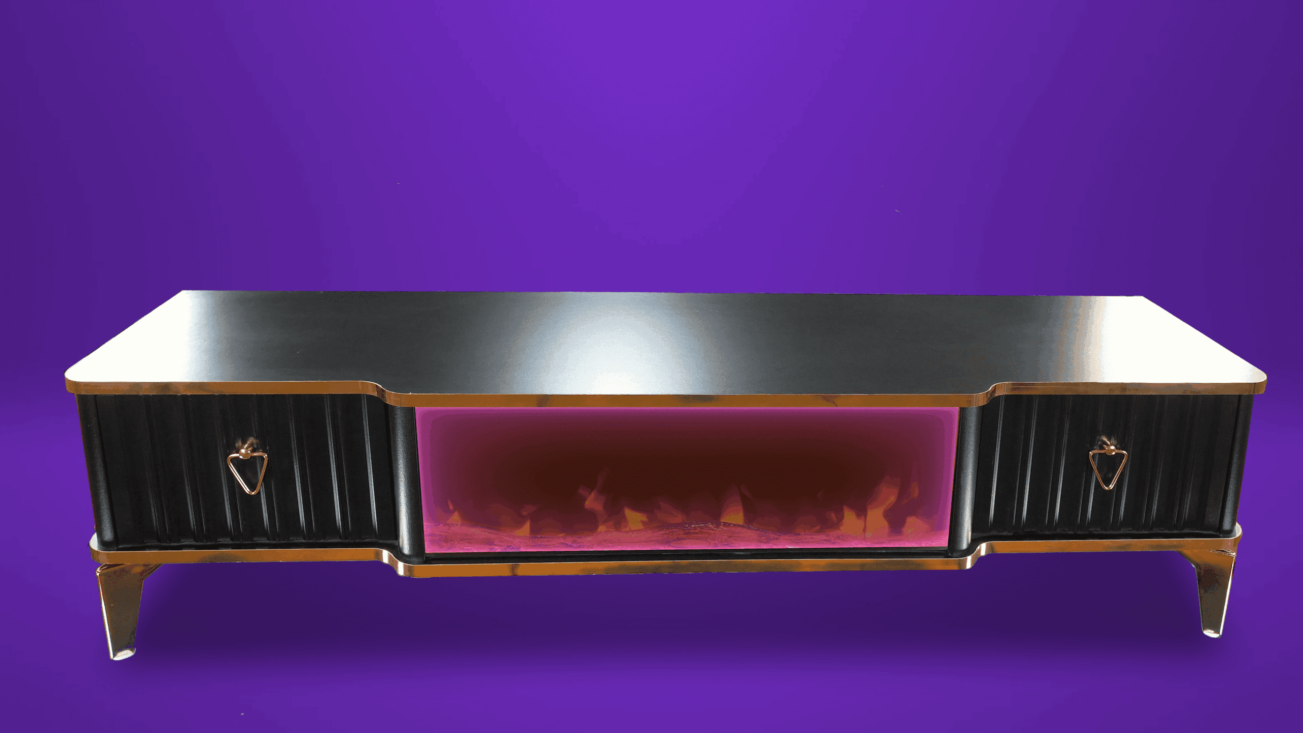 Denna tabell har många funktioner eftersom den har ett Bluetooth-system där du kan skapa en trådlös anslutning mellan bordet och mellan TV: n och även mellan mobilen eftersom bordet erbjuder en unik upplevelse när du ser eld, ved och glöd och burk Hör det brinnande ljudet och titta på det på ett trevligt sätt, så kan du alltid ändra belysningens färg genom styrenheten fäst vid bordet