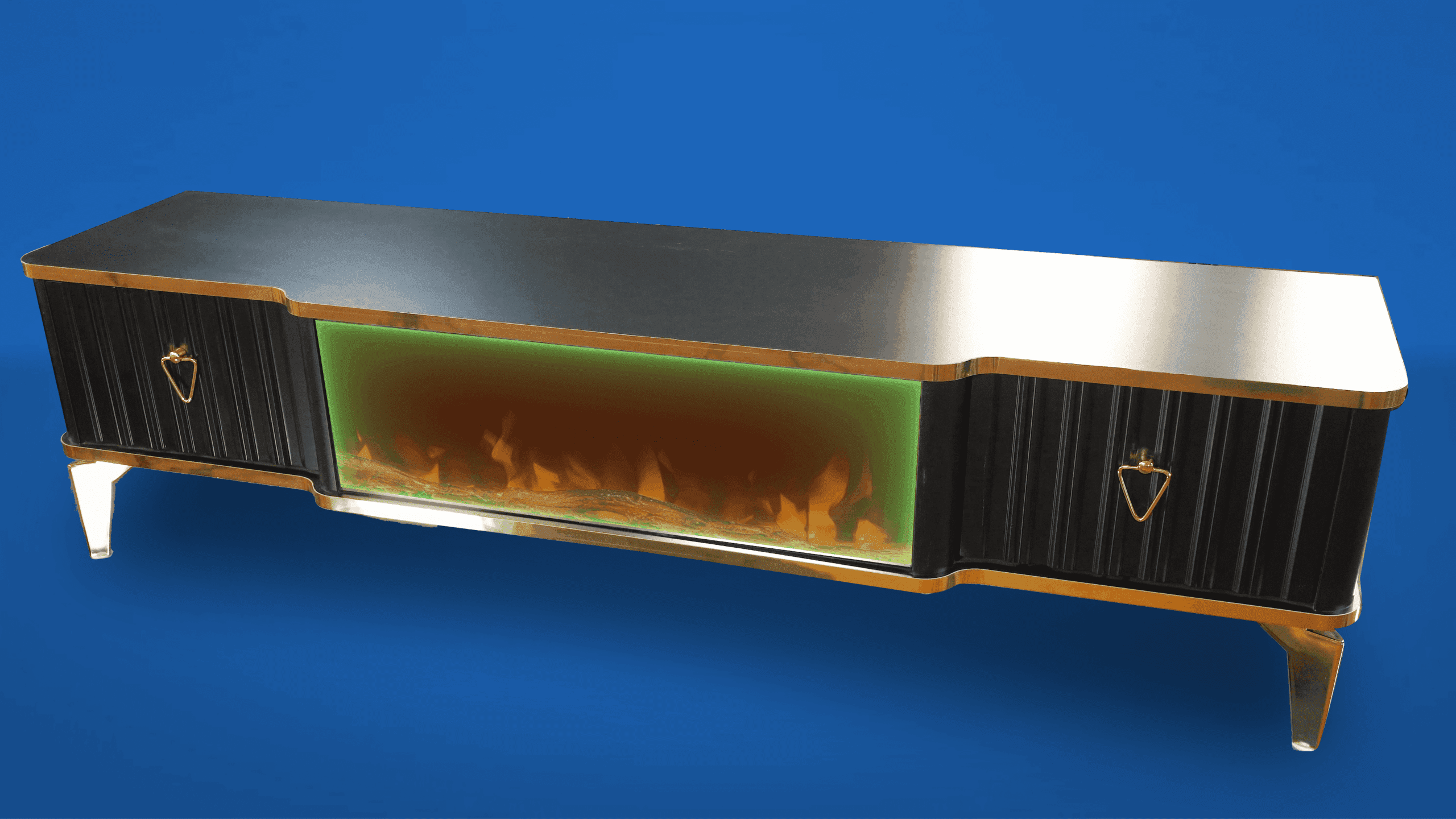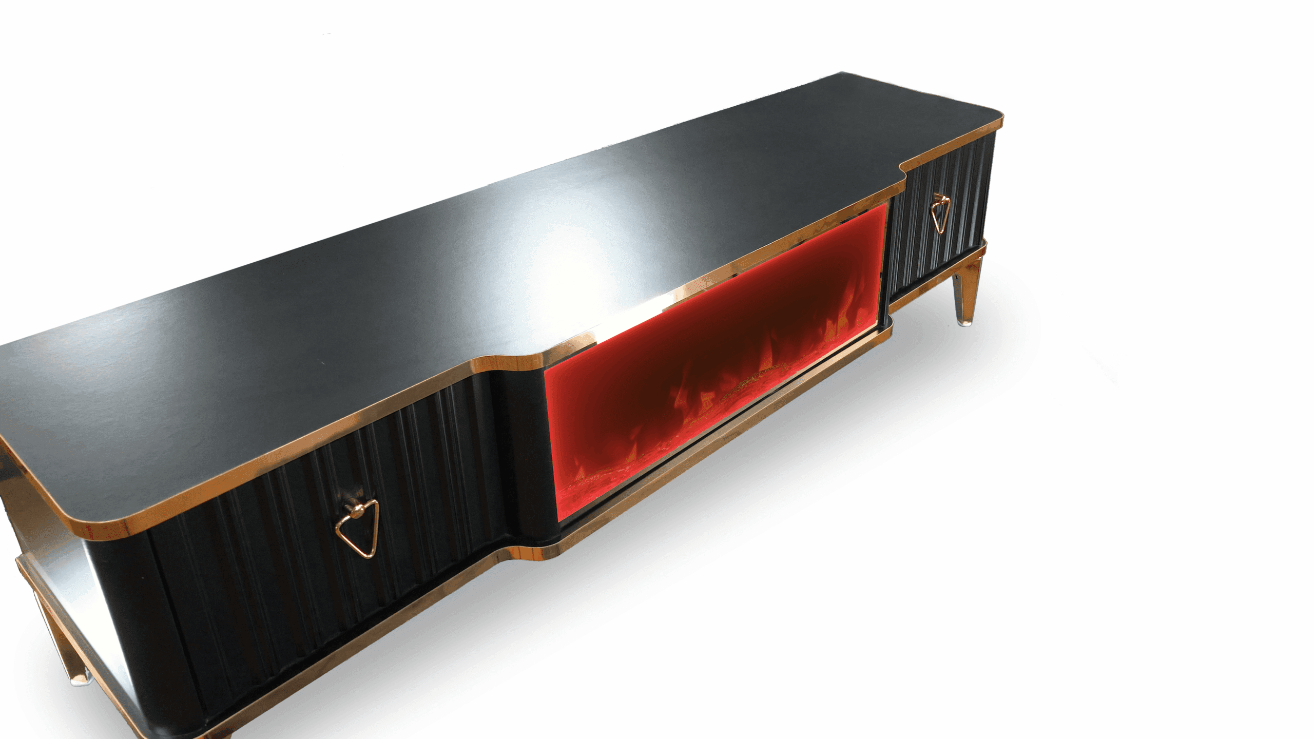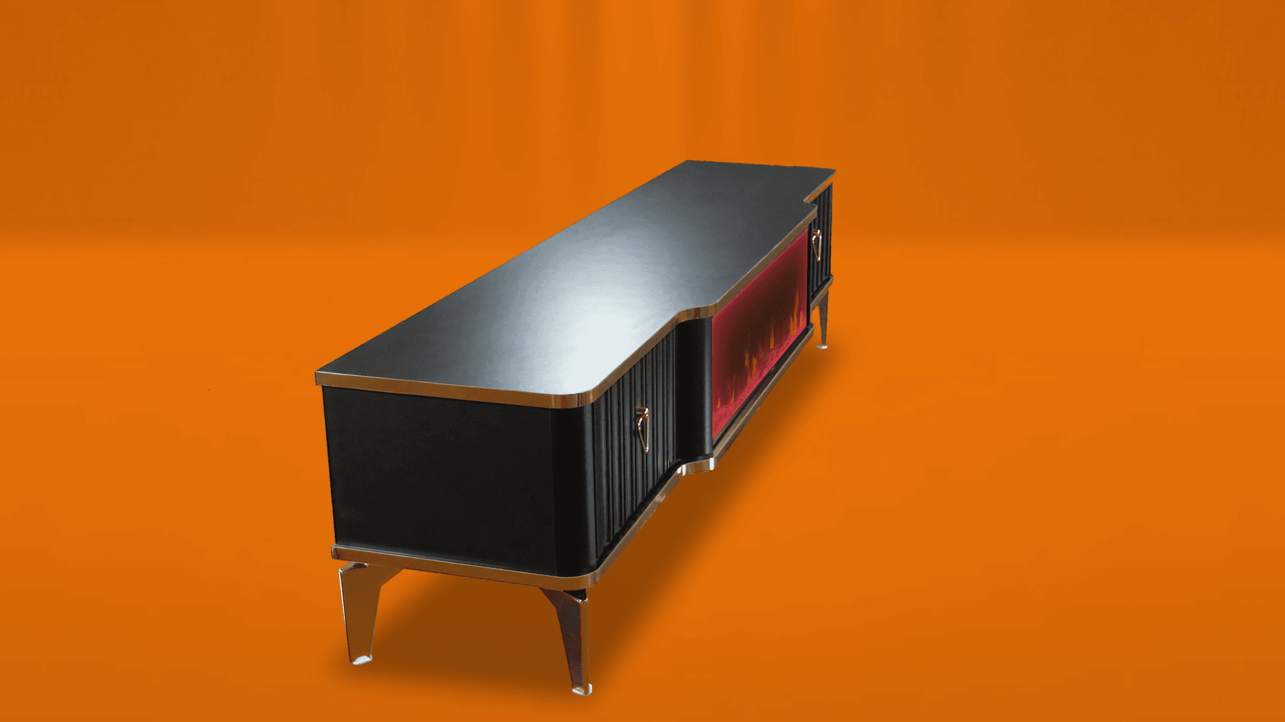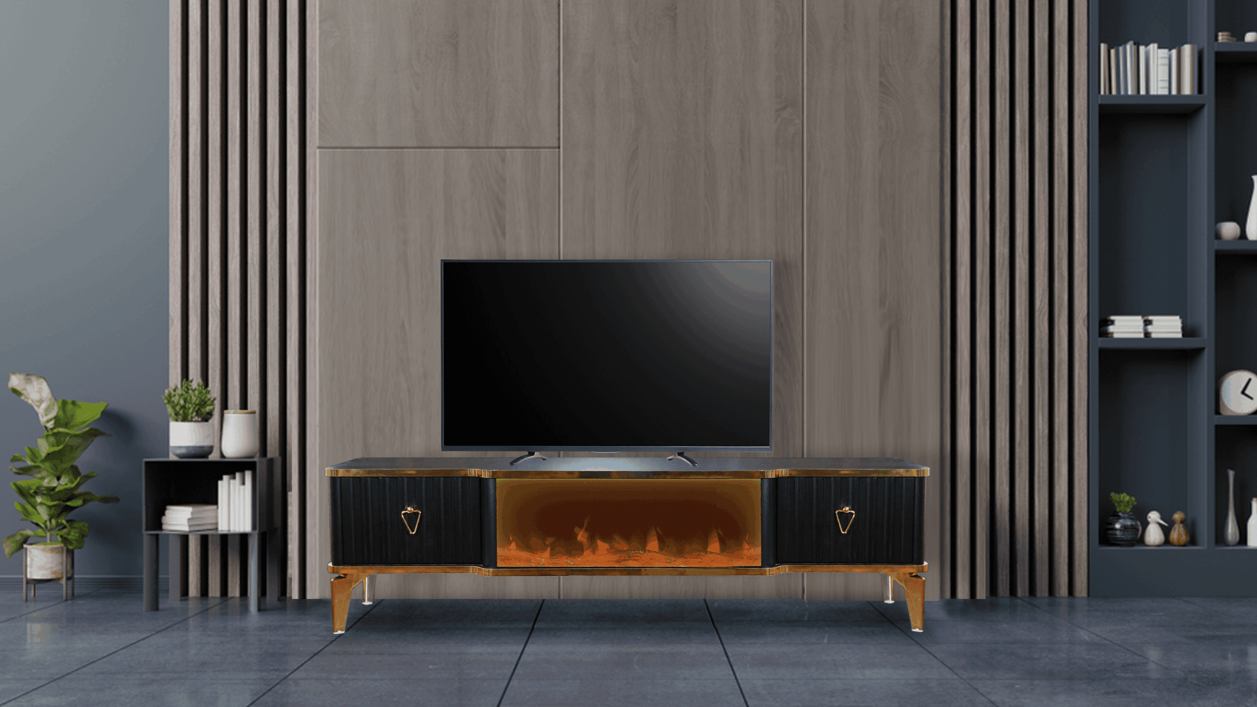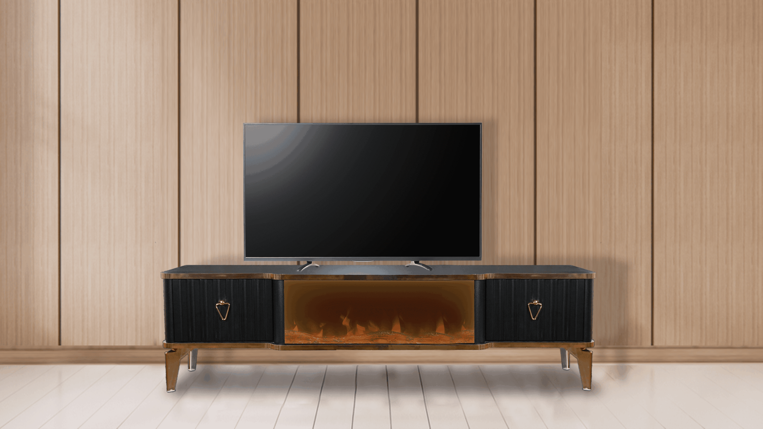 Denna tabell har många funktioner eftersom den har ett Bluetooth-system där du kan skapa en trådlös anslutning mellan bordet och mellan TV: n och även mellan mobilen eftersom bordet erbjuder en unik upplevelse när du ser eld, ved och glöd och burk Hör det brinnande ljudet och titta på det på ett trevligt sätt, så kan du alltid ändra belysningens färg genom styrenheten fäst vid bordet