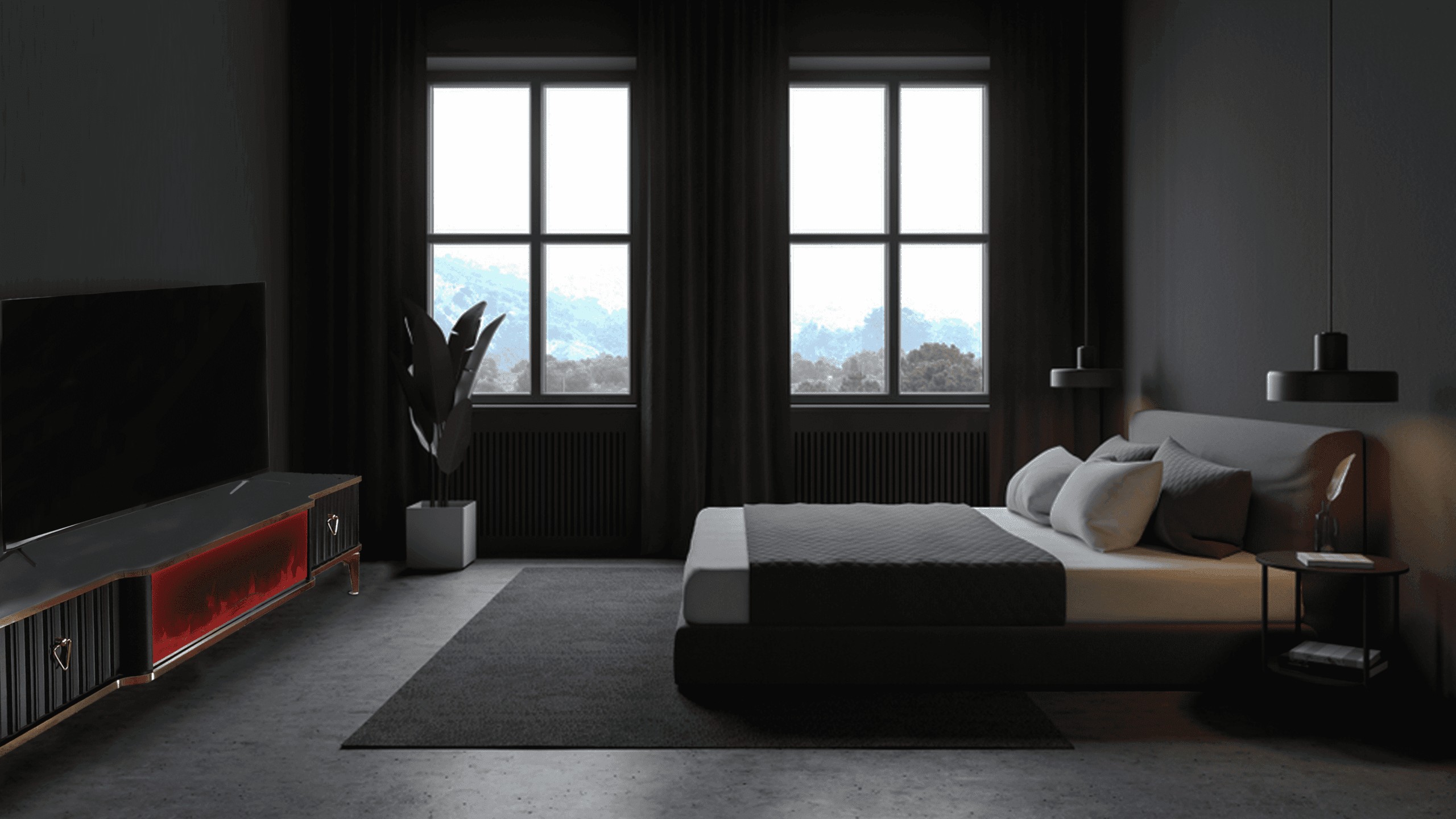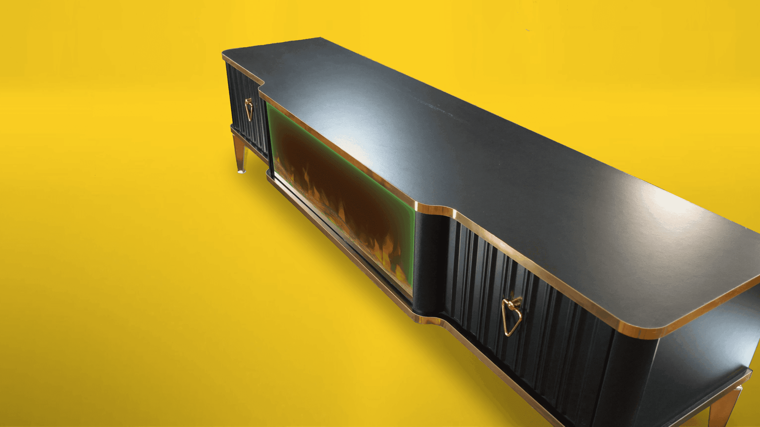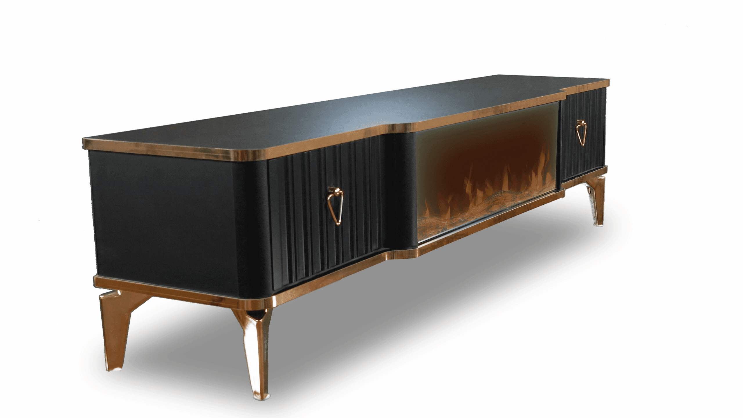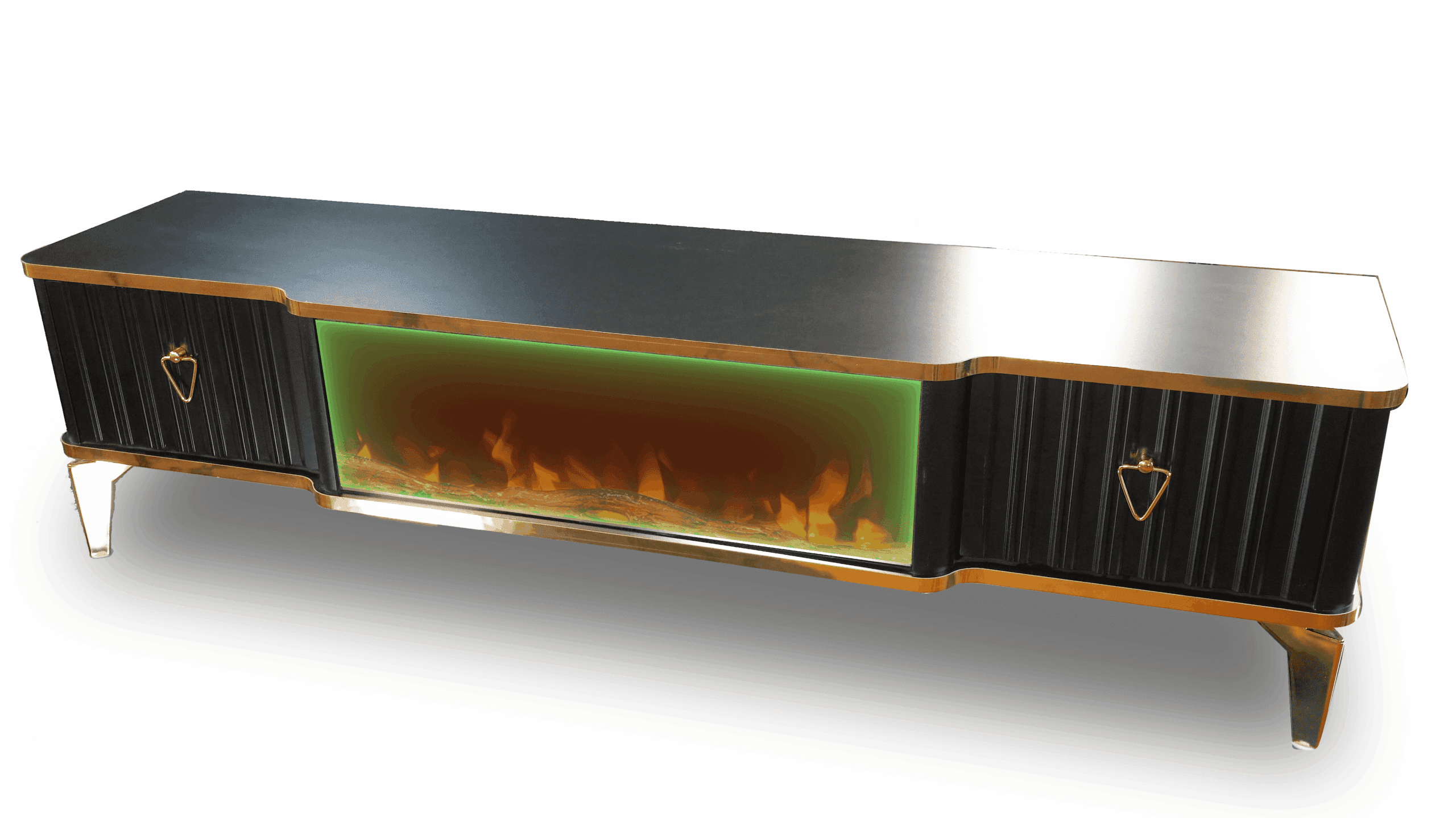 Denna tabell har många funktioner eftersom den har ett Bluetooth-system där du kan skapa en trådlös anslutning mellan bordet och mellan TV: n och även mellan mobilen eftersom bordet erbjuder en unik upplevelse när du ser eld, ved och glöd och burk Hör det brinnande ljudet och titta på det på ett trevligt sätt, så kan du alltid ändra belysningens färg genom styrenheten fäst vid bordet
