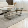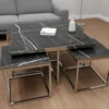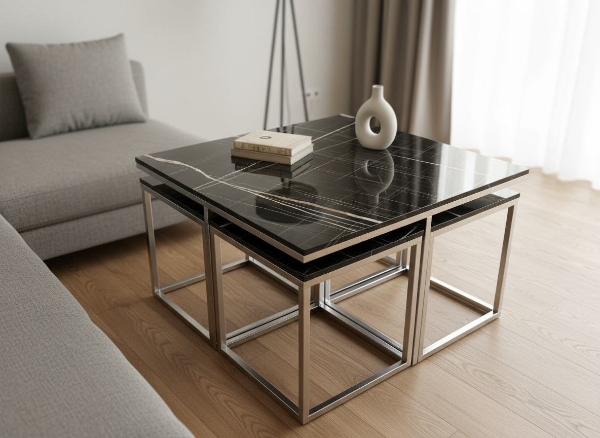 Maximera både stil och funktion i ditt vardagsrum med Valdivia, ett komplett set bestående av ett kvadratiskt soffbord och fyra matchande sidobord. Detta set är den ultimata lösningen för det sociala hemmet; sidoborden är designade med en smart nesting-funktion som gör att de smidigt kan skjutas in helt under huvudbordet när de inte används. Det sparar värdefull golvyta och skapar en snygg, kompakt enhet.