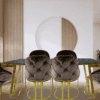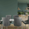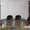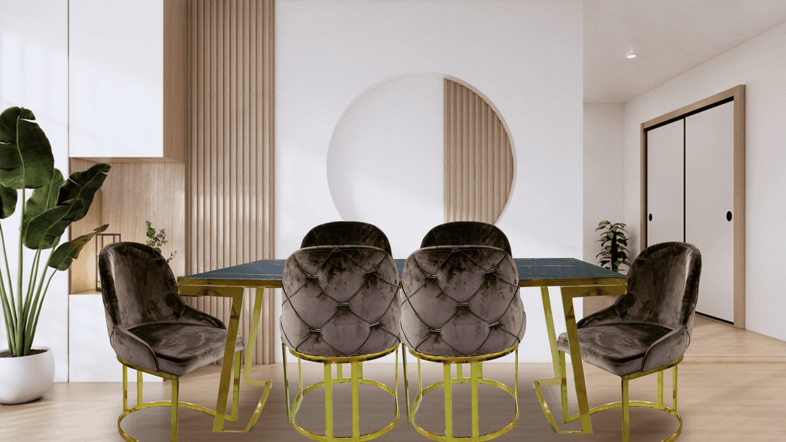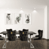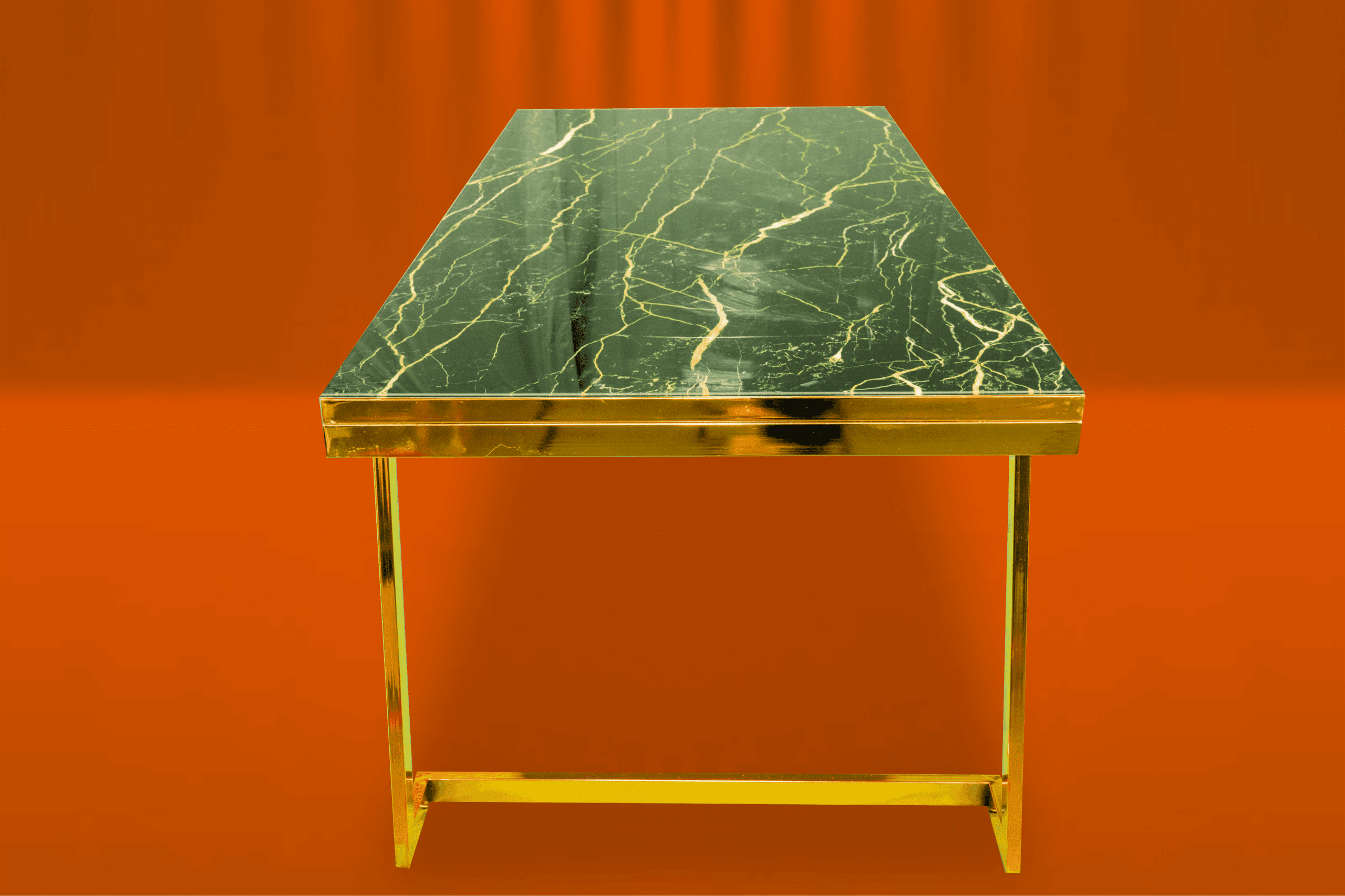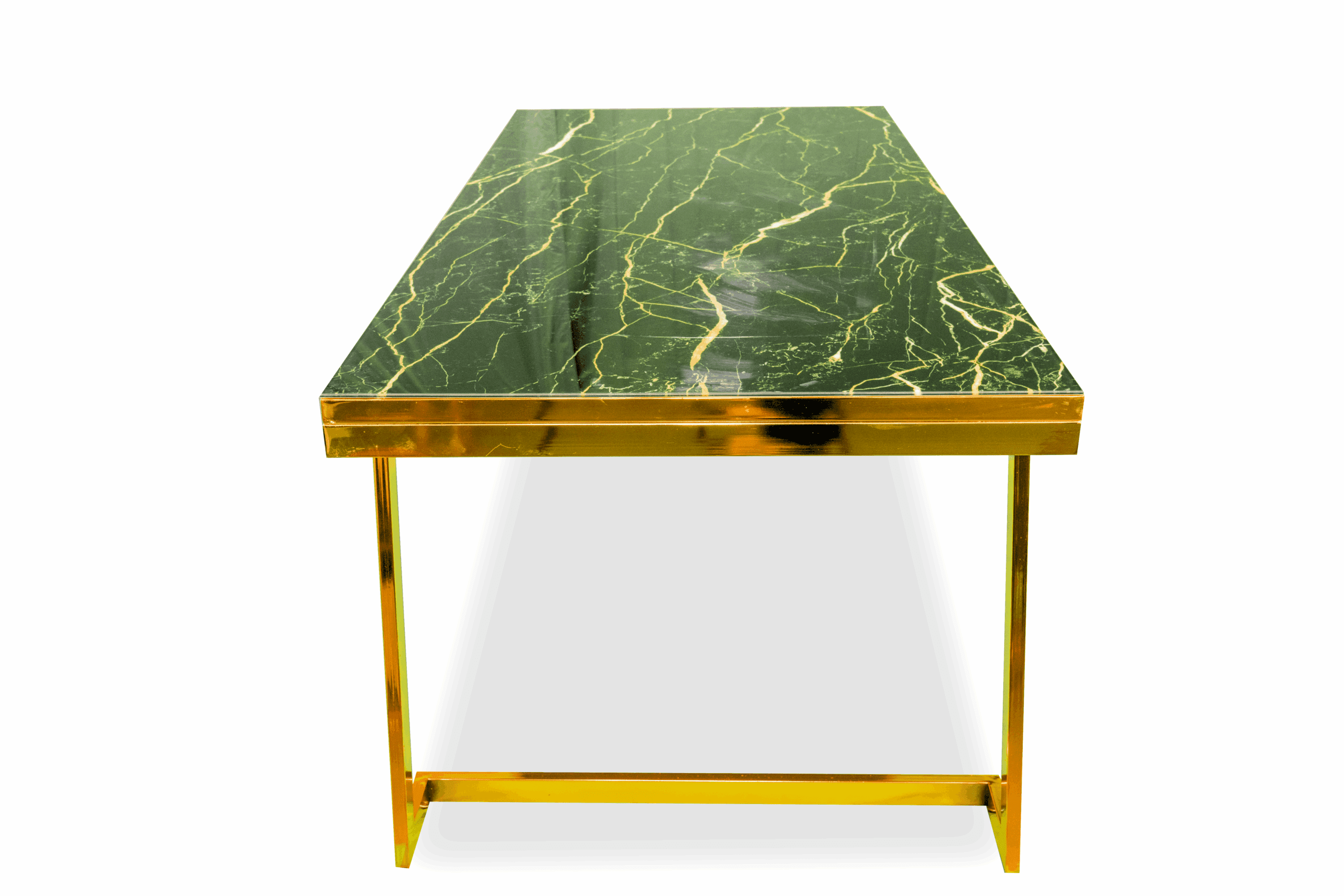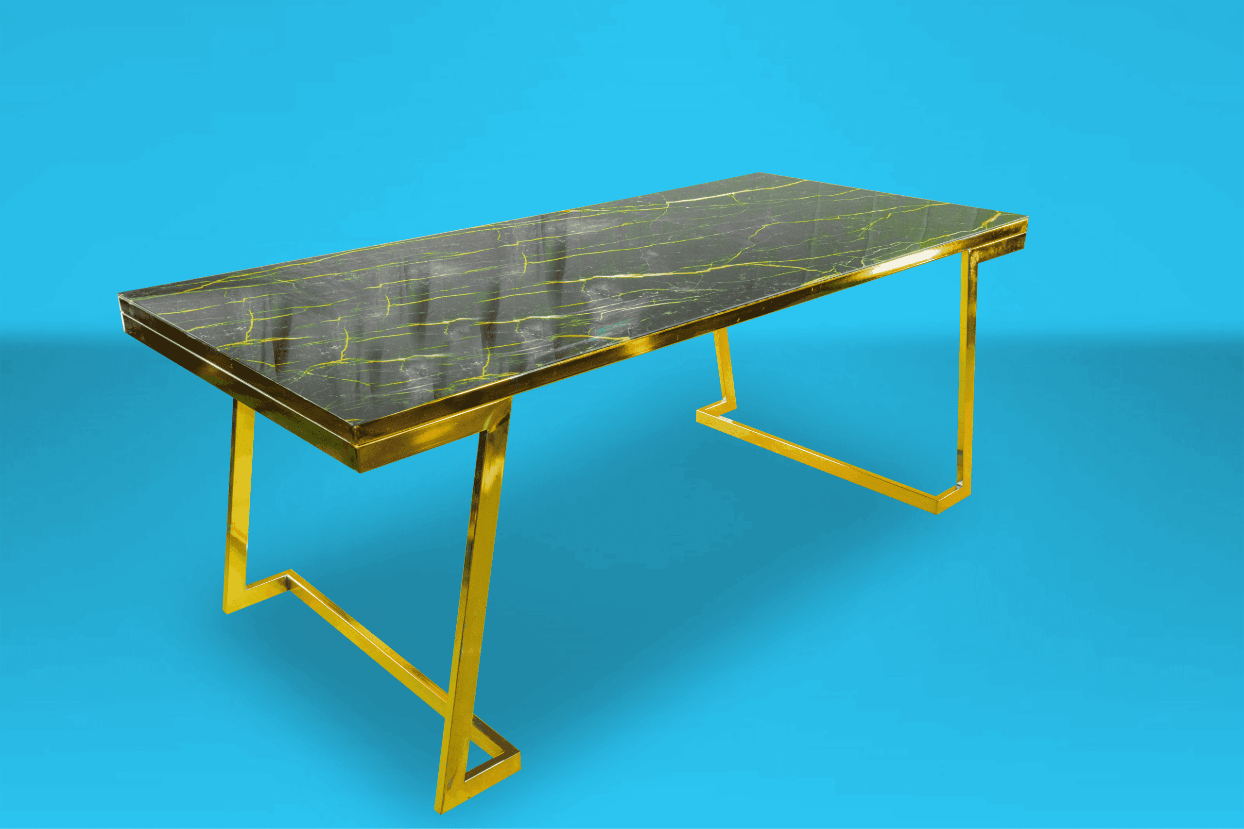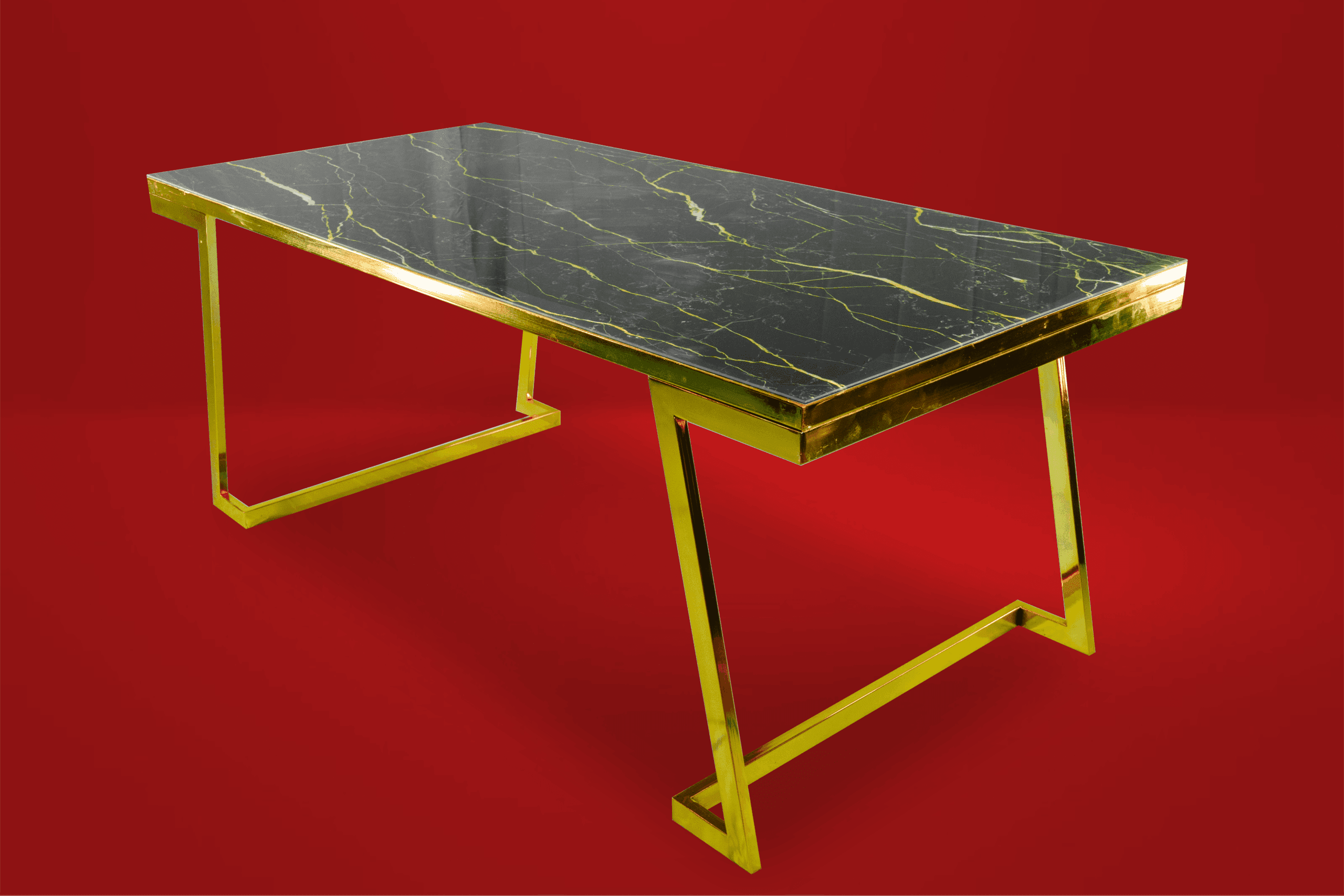 Den marmormönstrade glasskivan är minst lika vacker som äkta natursten, men är mer lättskött och beständig mot smuts och vätskor. Stolar är en klädd stol med vadderad sits och rygg. .och glaset är tillverkat av de finaste glastyperna som är splittringsbeständiga och även reptåliga.